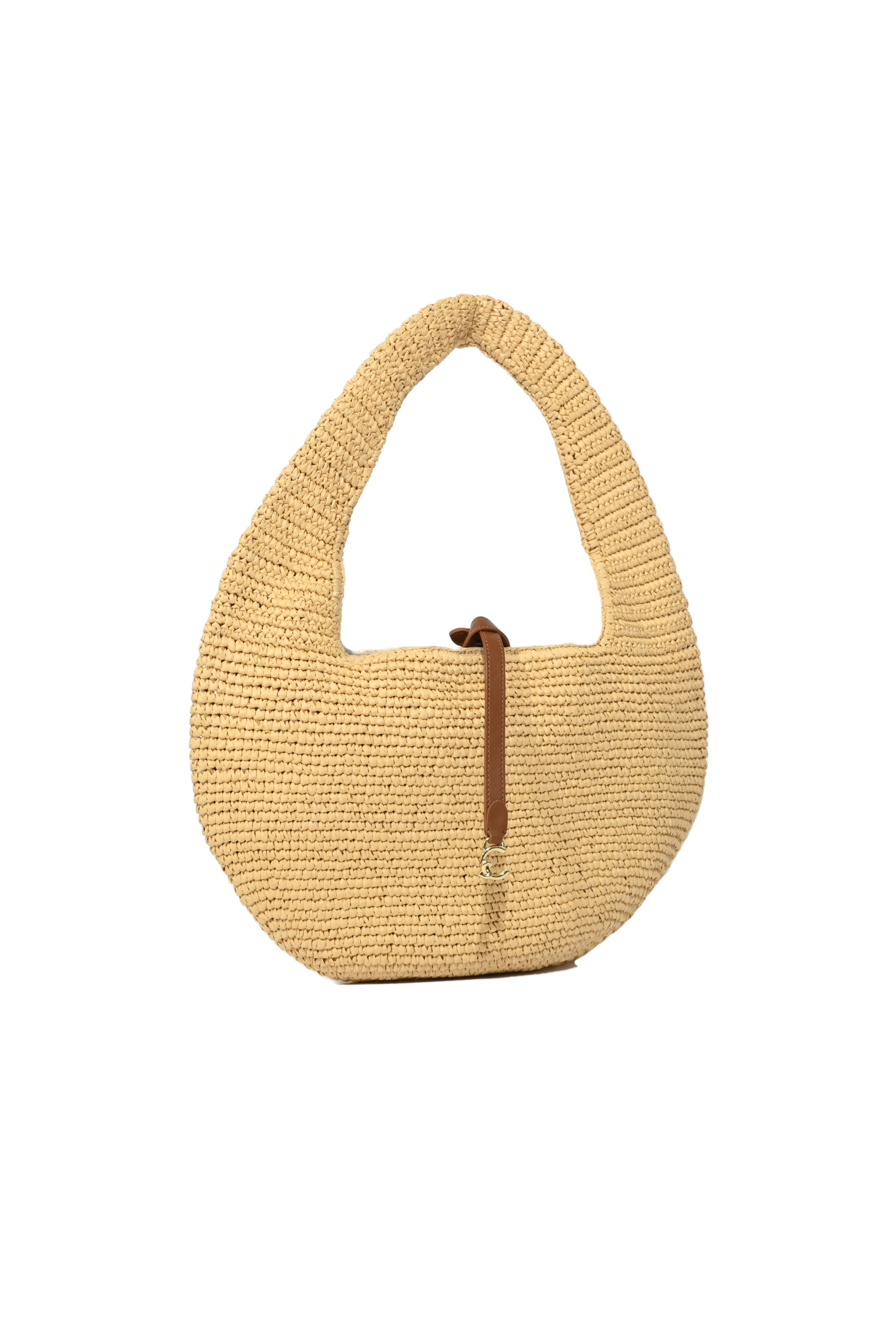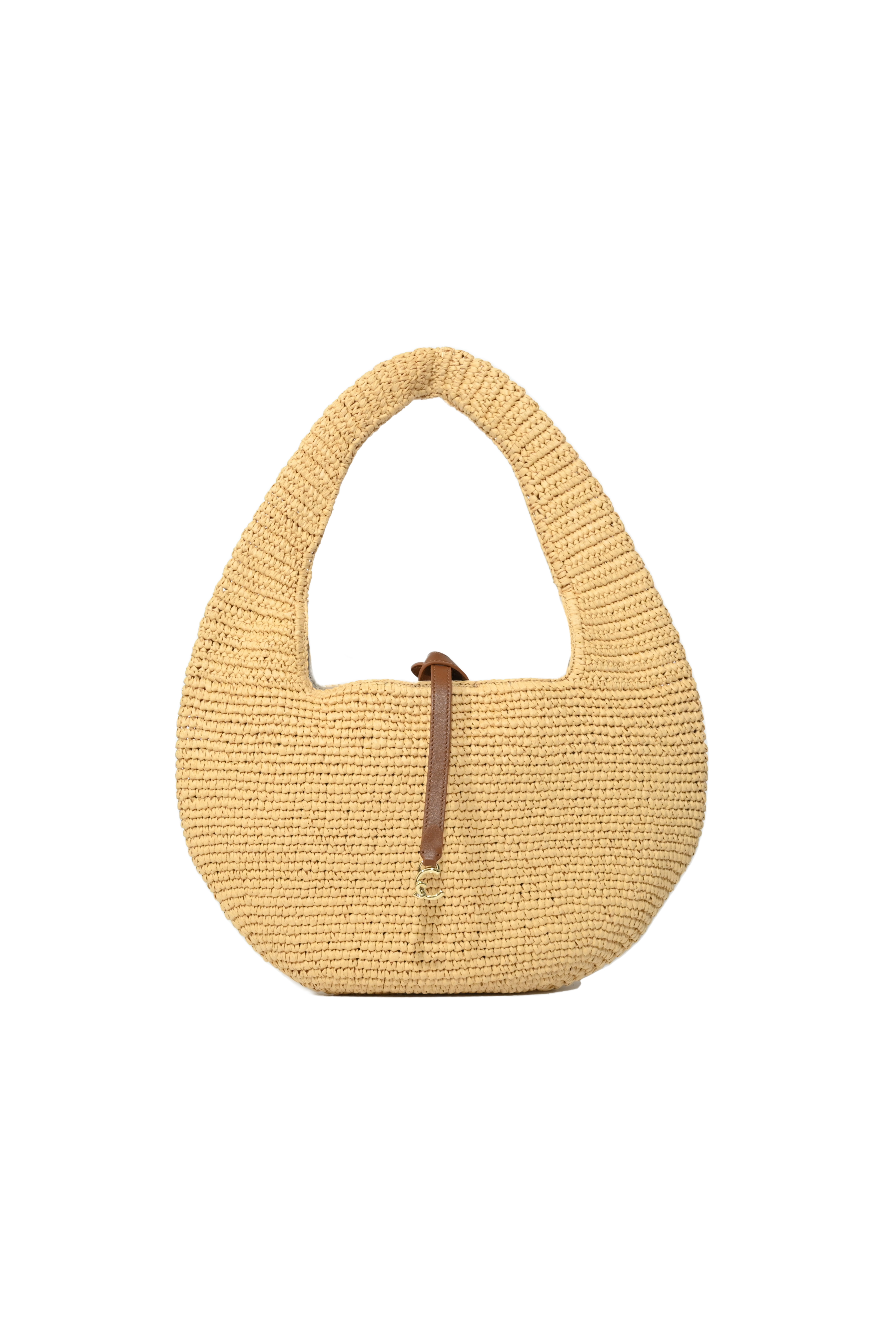 Borsa C-Me Medium in paglia e pelle Natural/Cognac