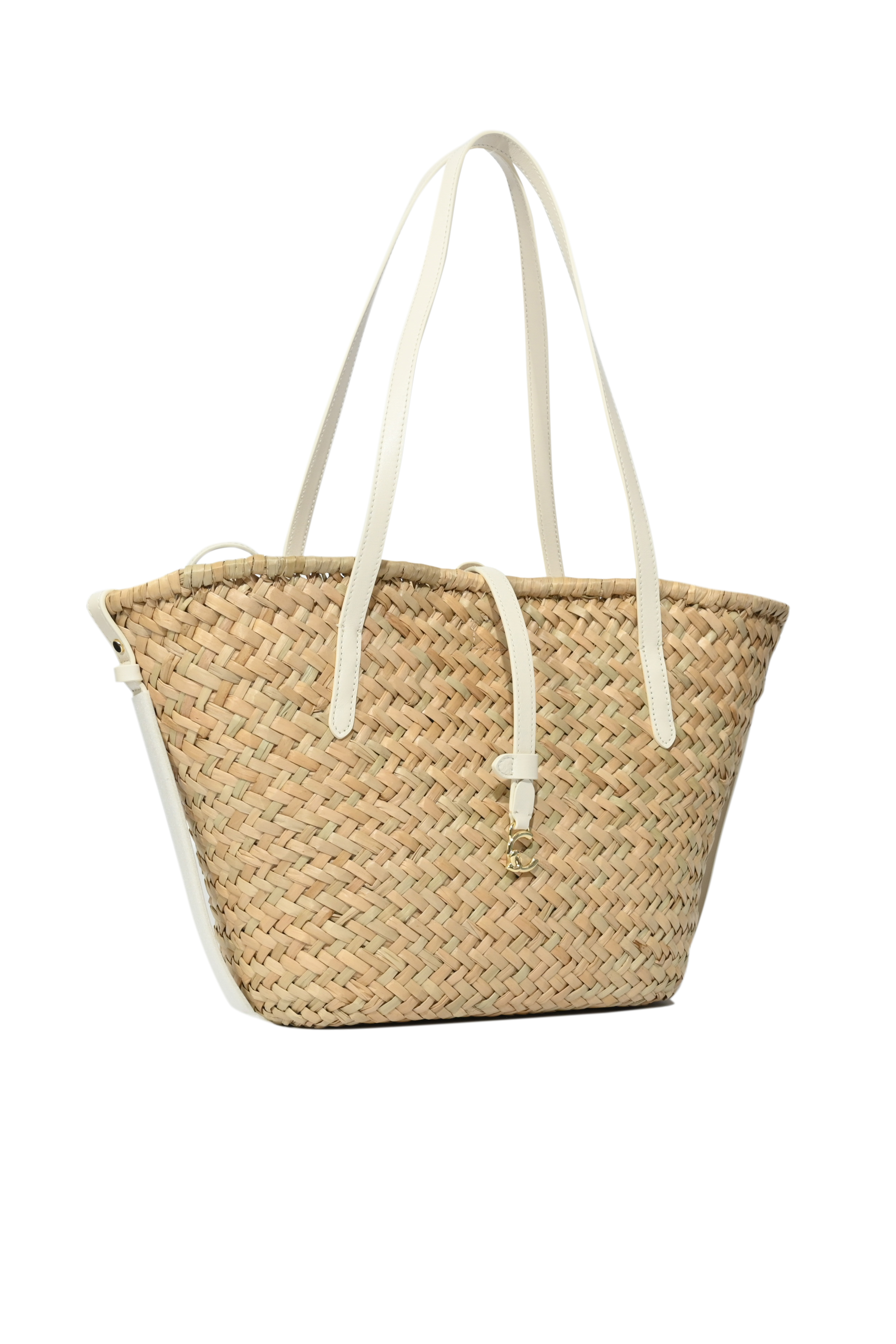 Borsa C-Me Summer Large in paglia e pelle Natural/Pearl