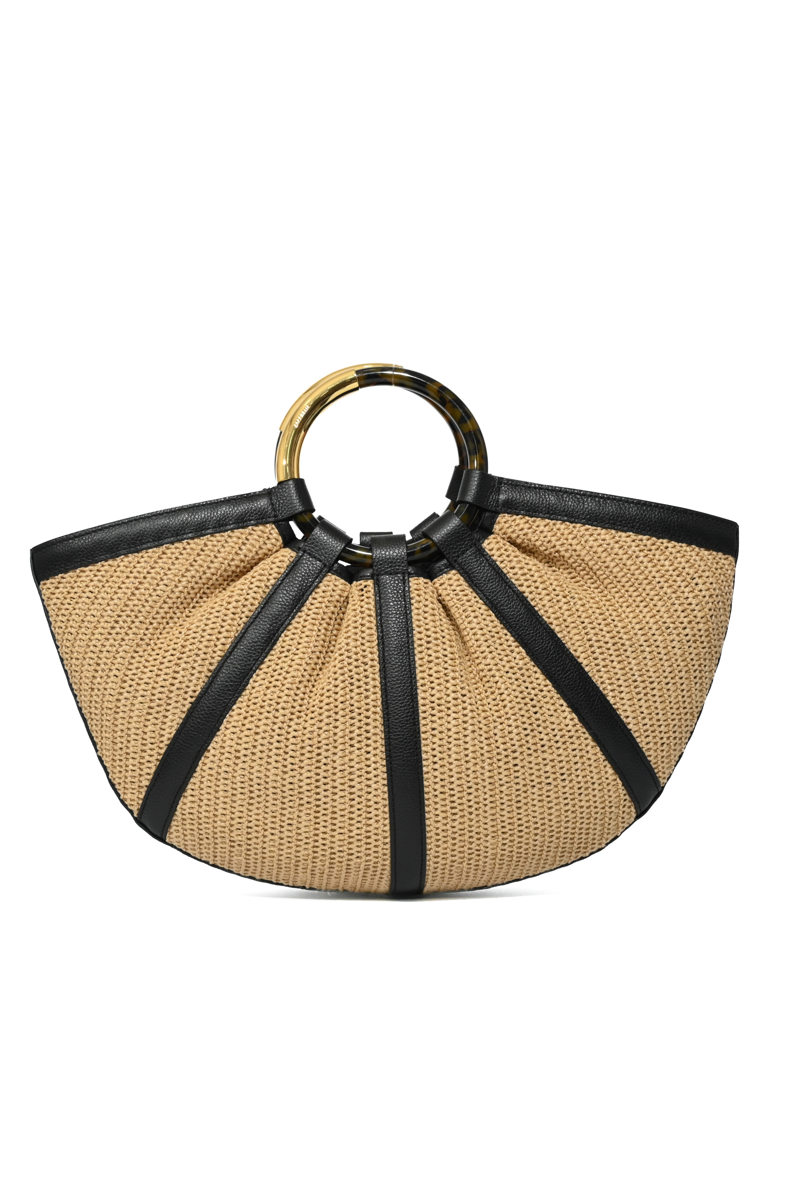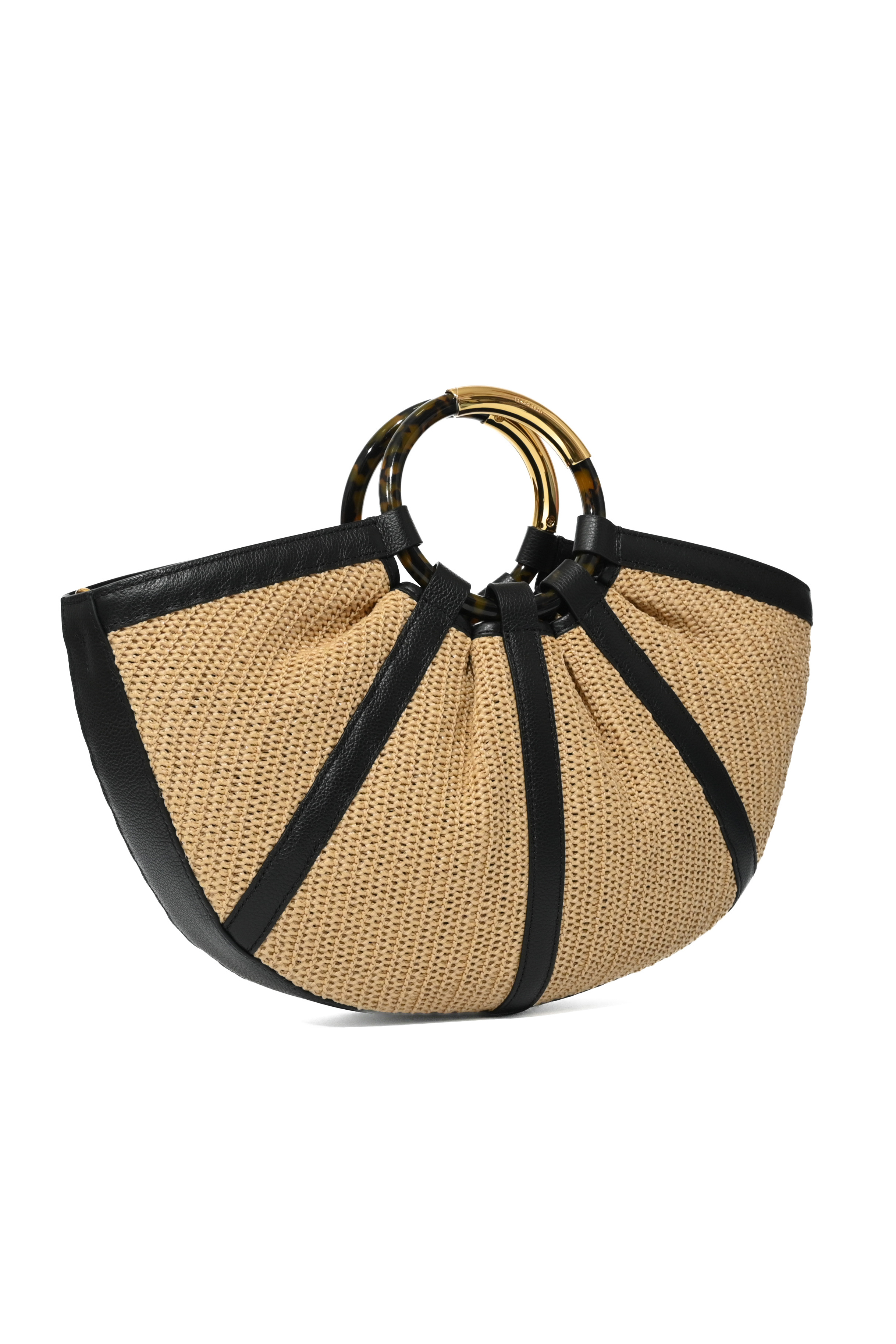 Borsa Shell Large in paglia e pelle Natural/Noir