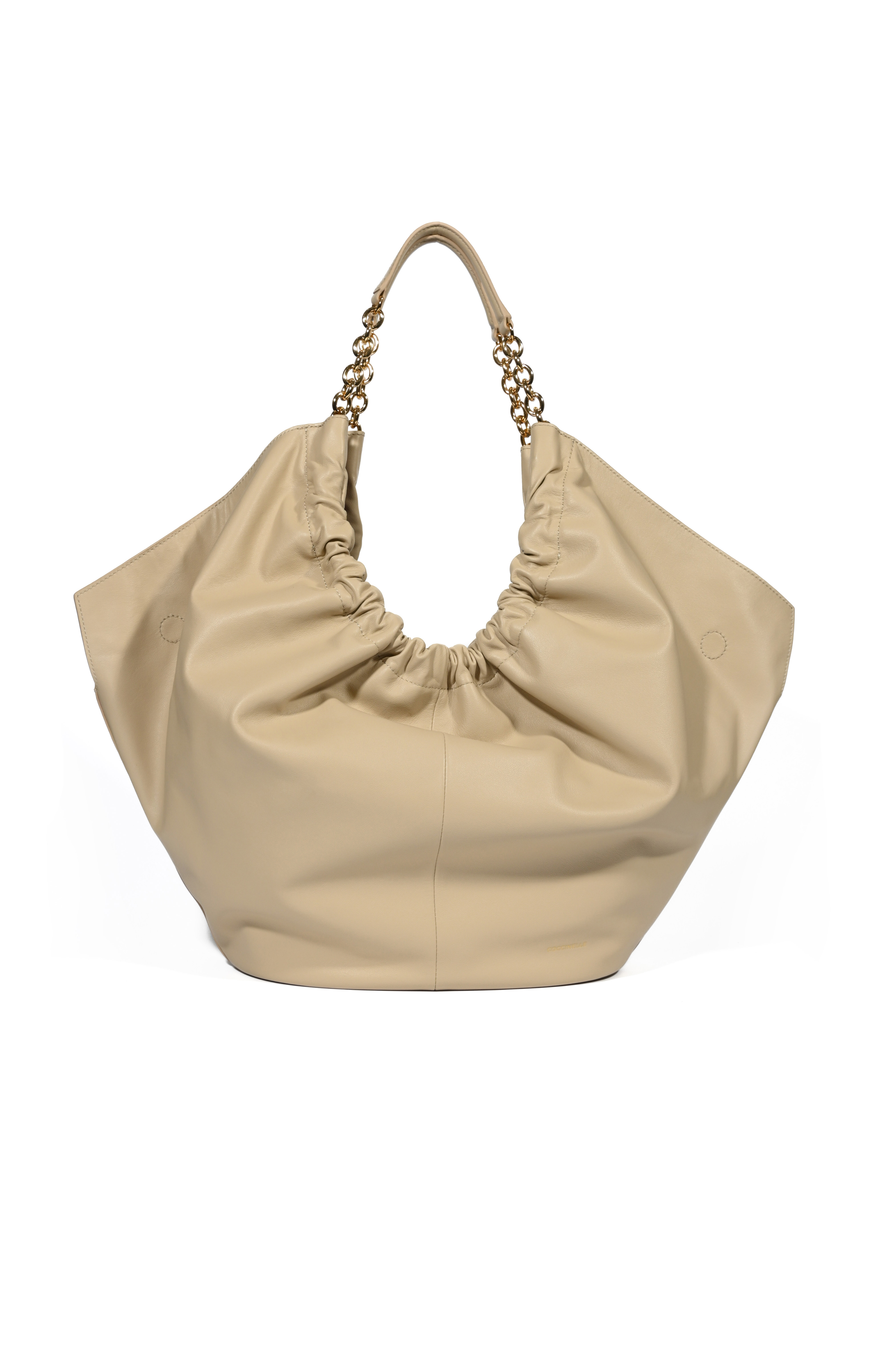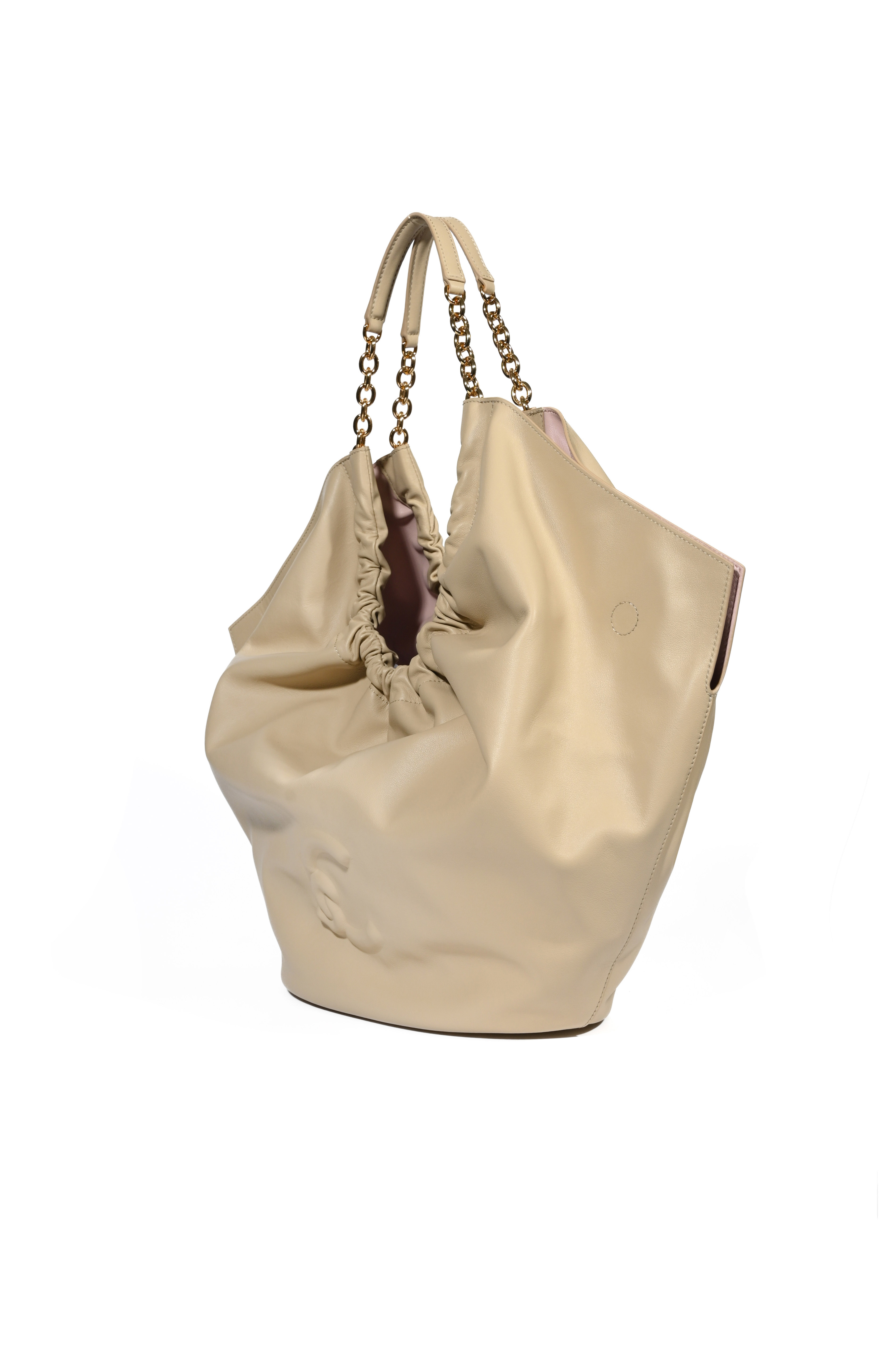 - Manici/Tracolla: Manici doppi con catena in metallo e rinforzo in pelle
