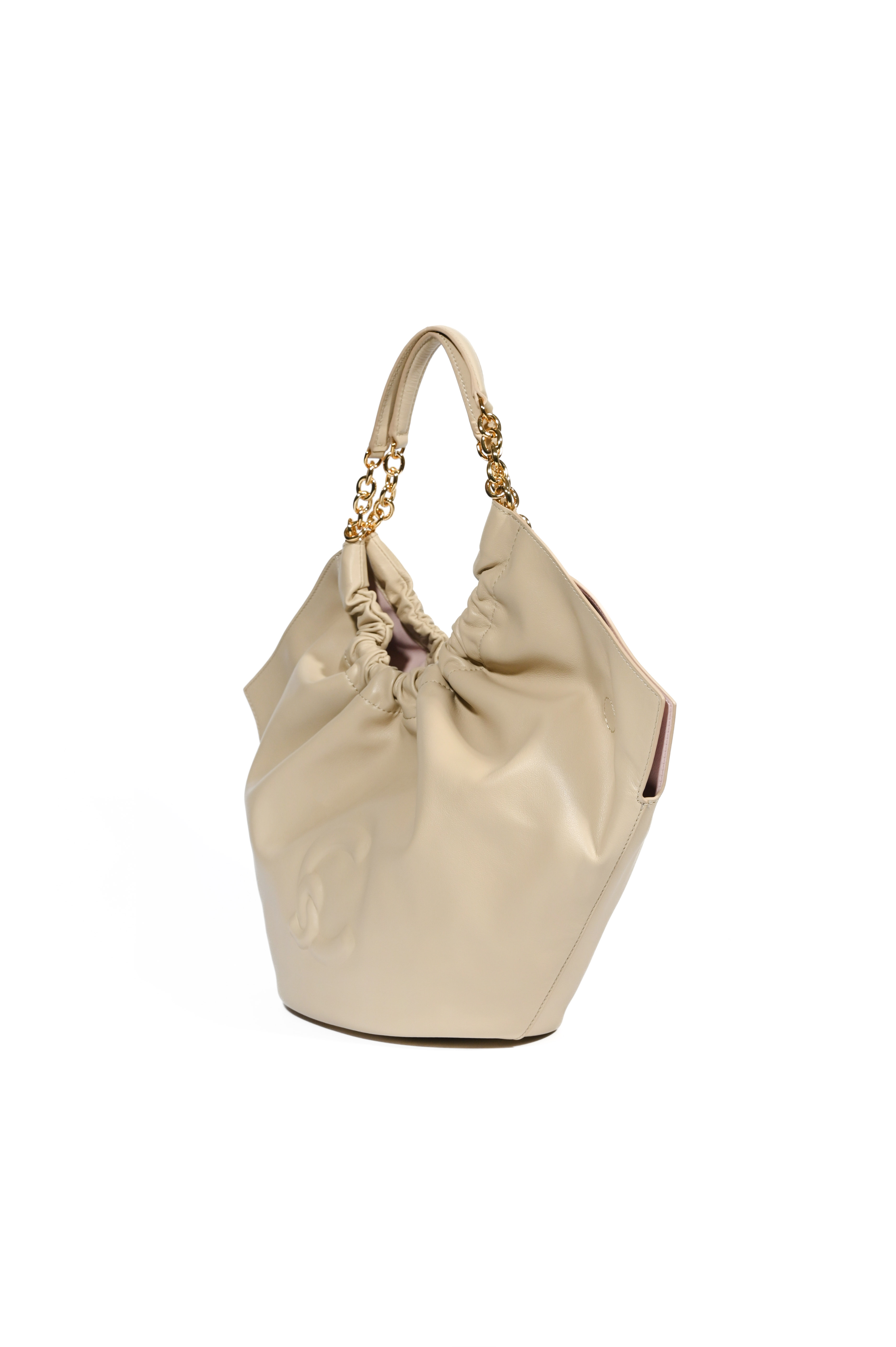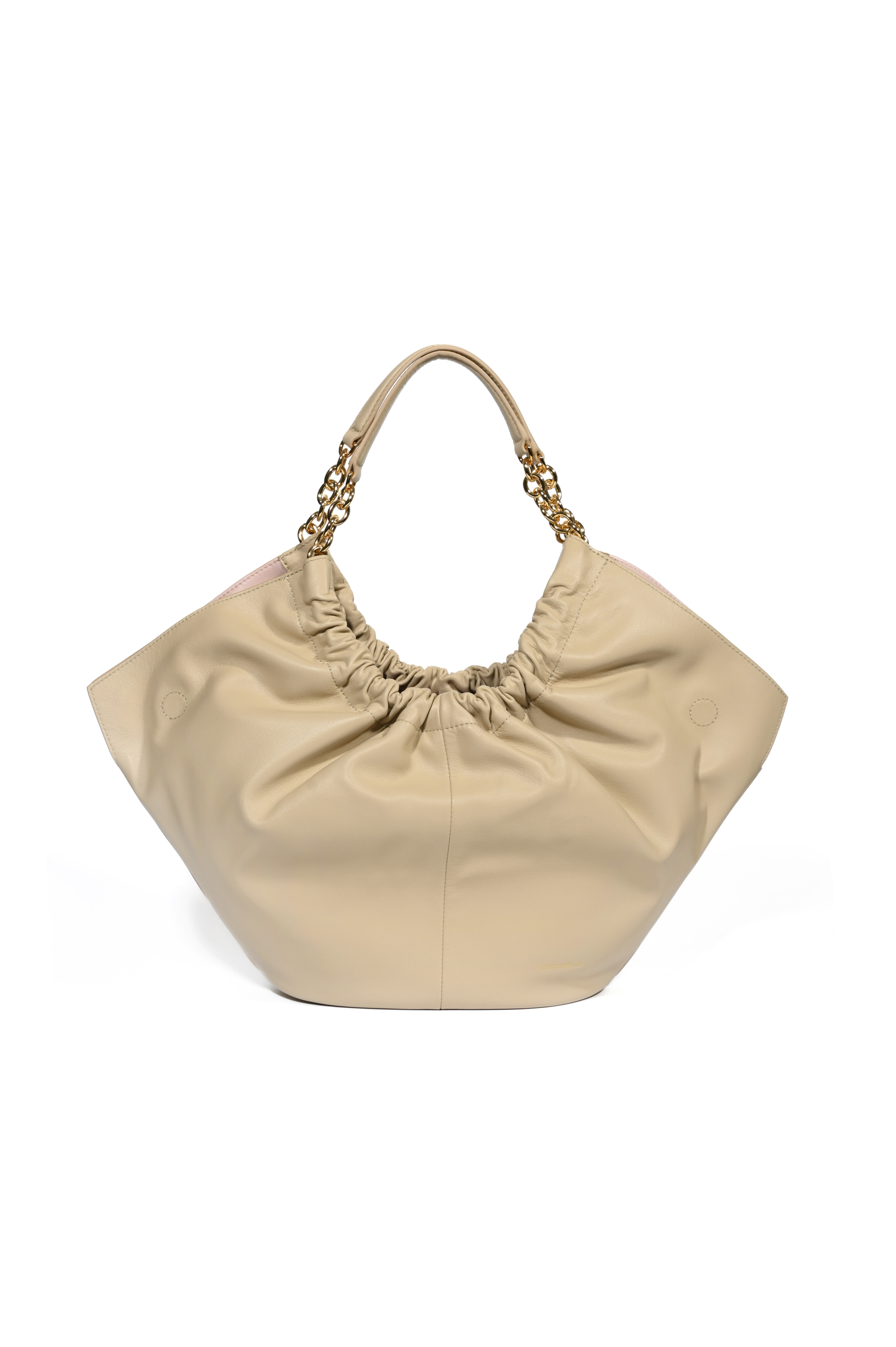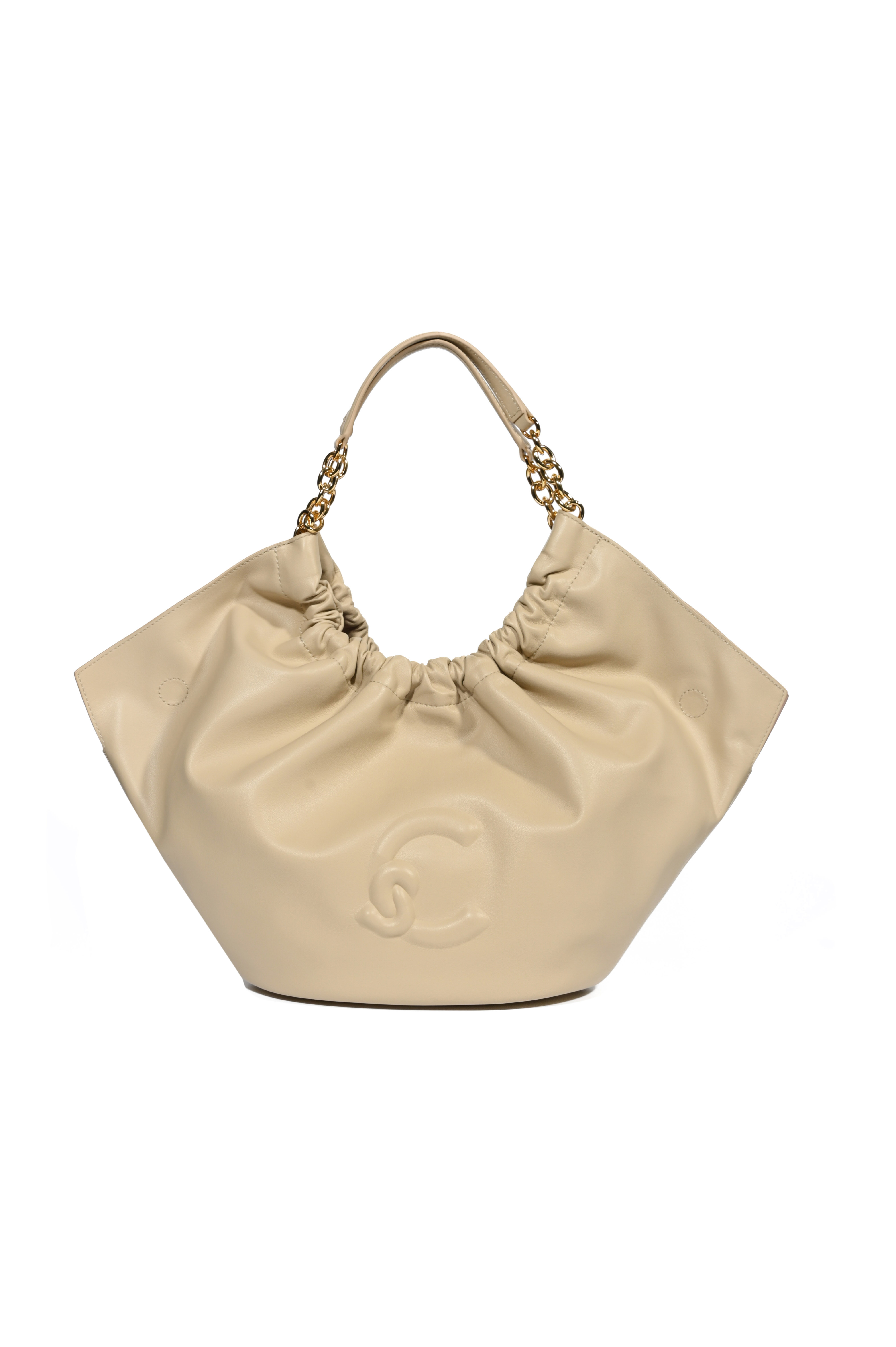 - Dettagli: Logo C in rilievo sul fronte, accessori metallici gold, arricciatura superiore