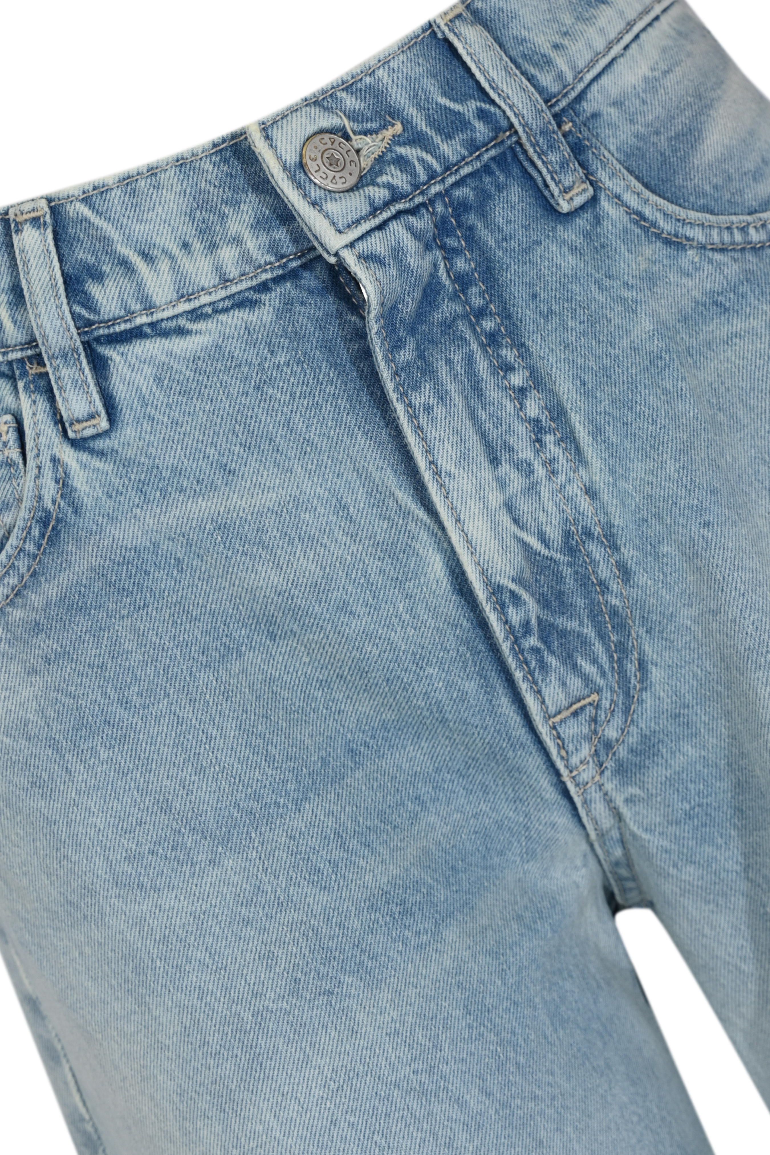 - Dettagli: lavaggio chiaro, cuciture a contrasto, design flare