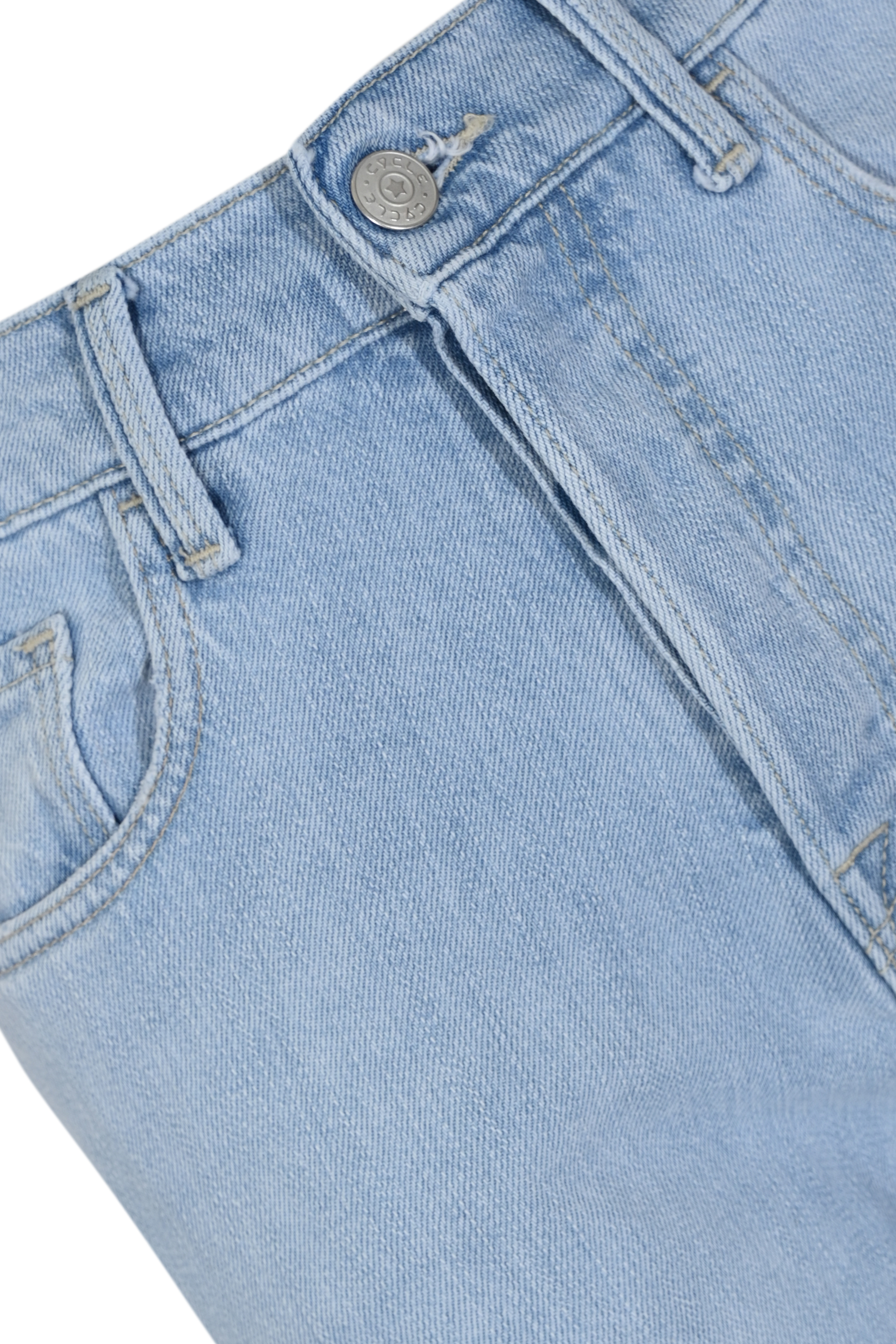 - Dettagli: cuciture a contrasto, lavaggio chiaro, design flare