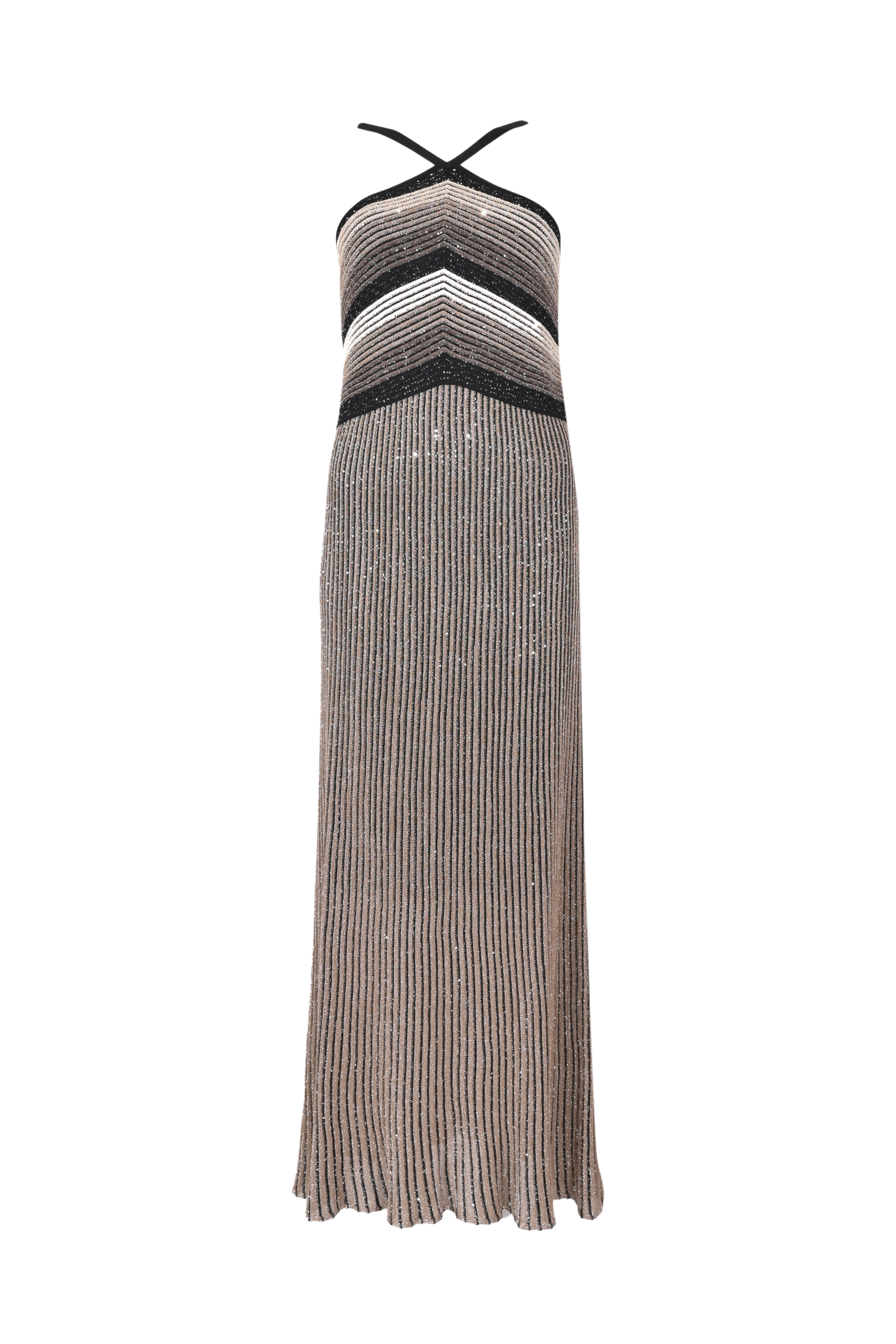 Abito lungo in maglia di viscosa e lurex con paillettes
