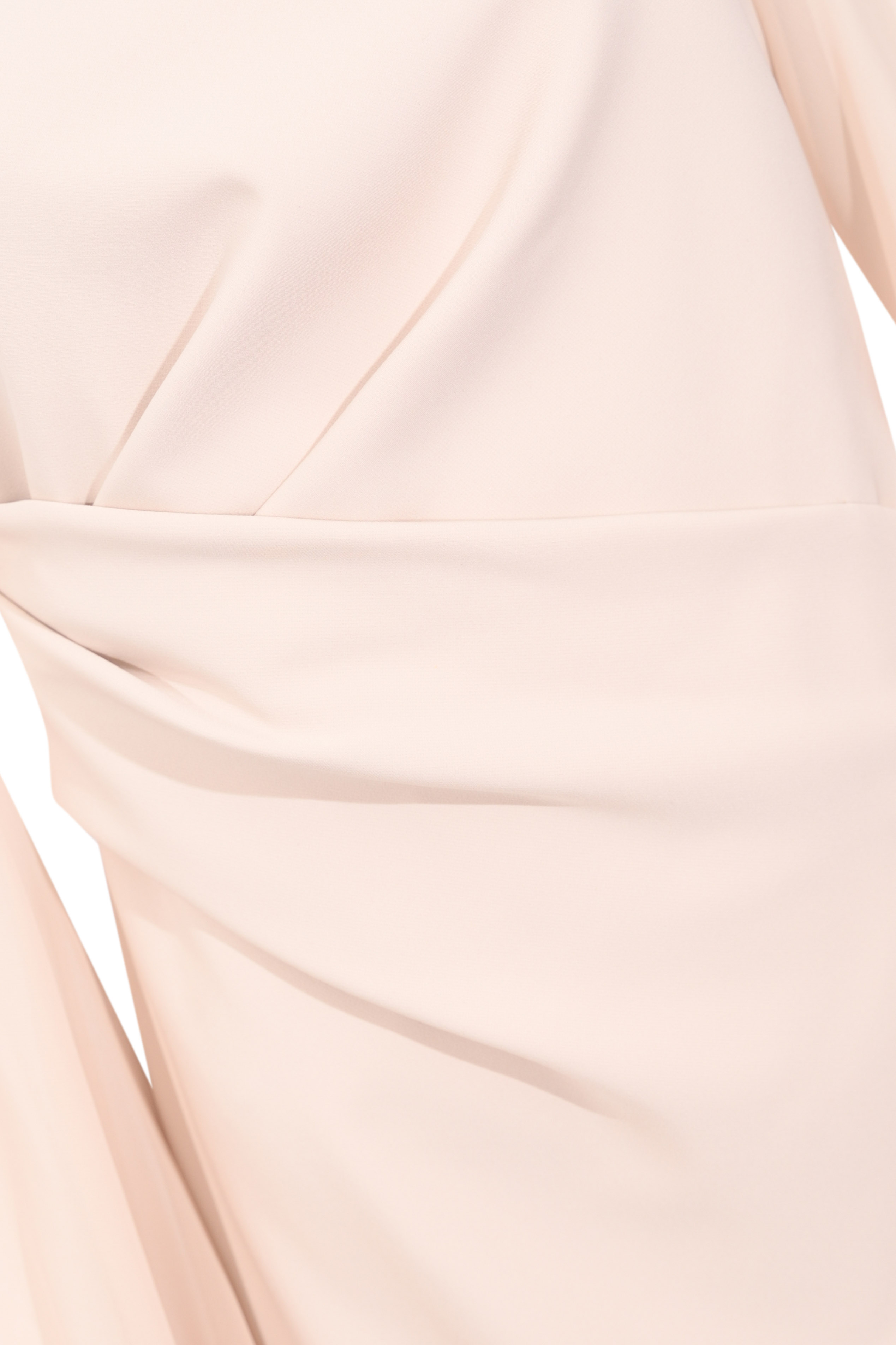 - Dettagli: drappeggio frontale, taglio in vita, spacco posteriore