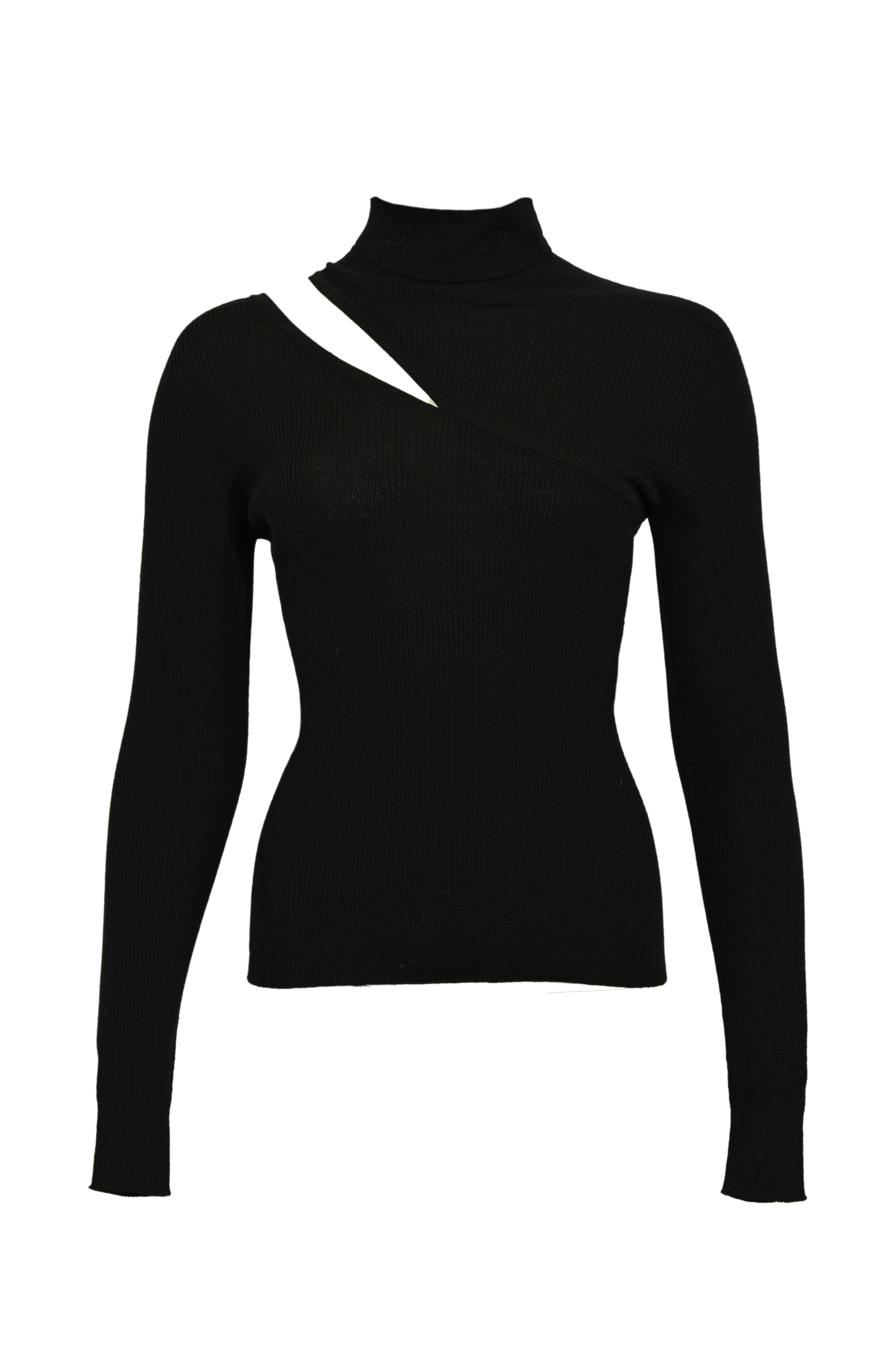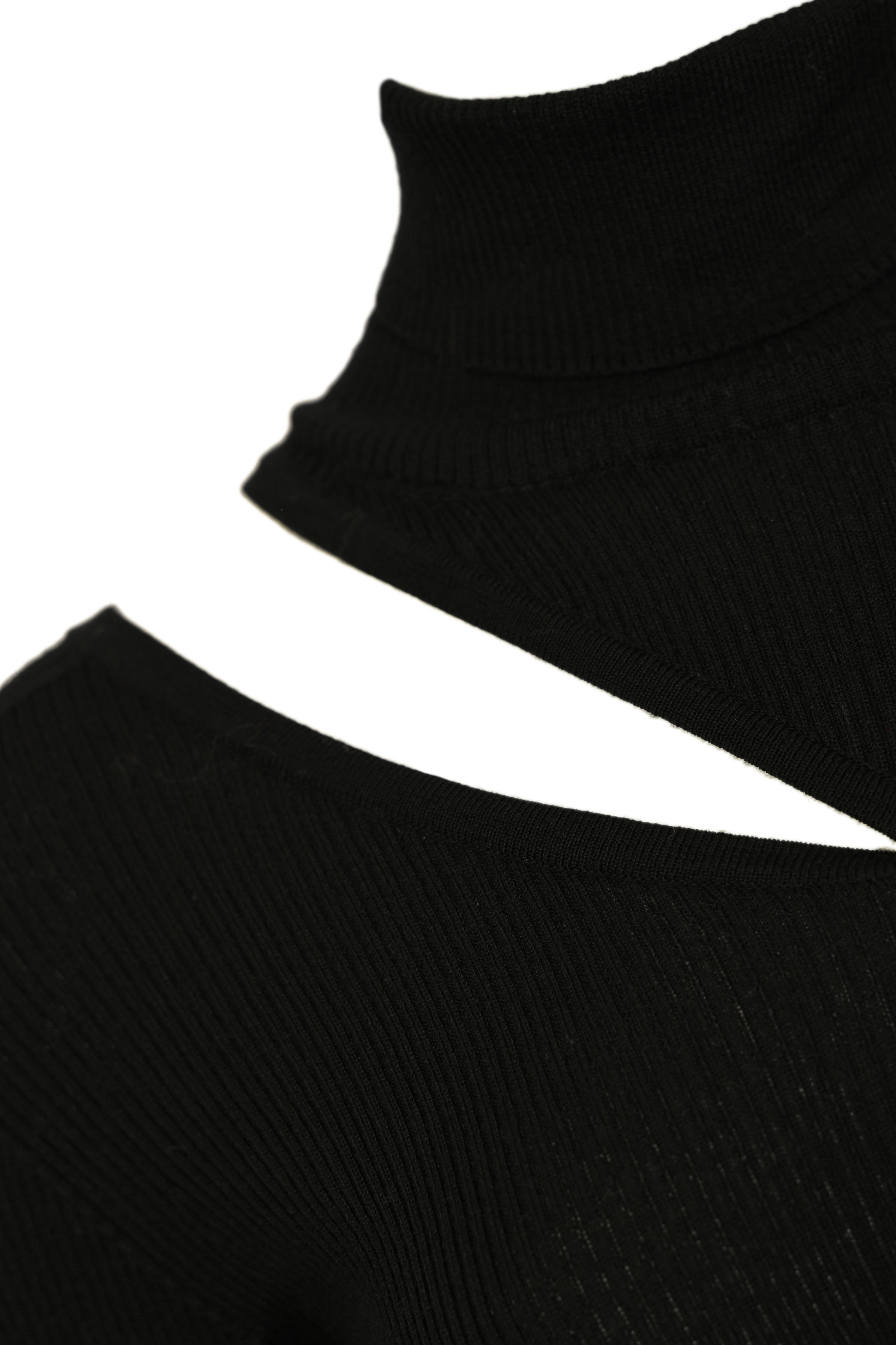 - Collo: Dolcevita con apertura cut-out asimmetrica