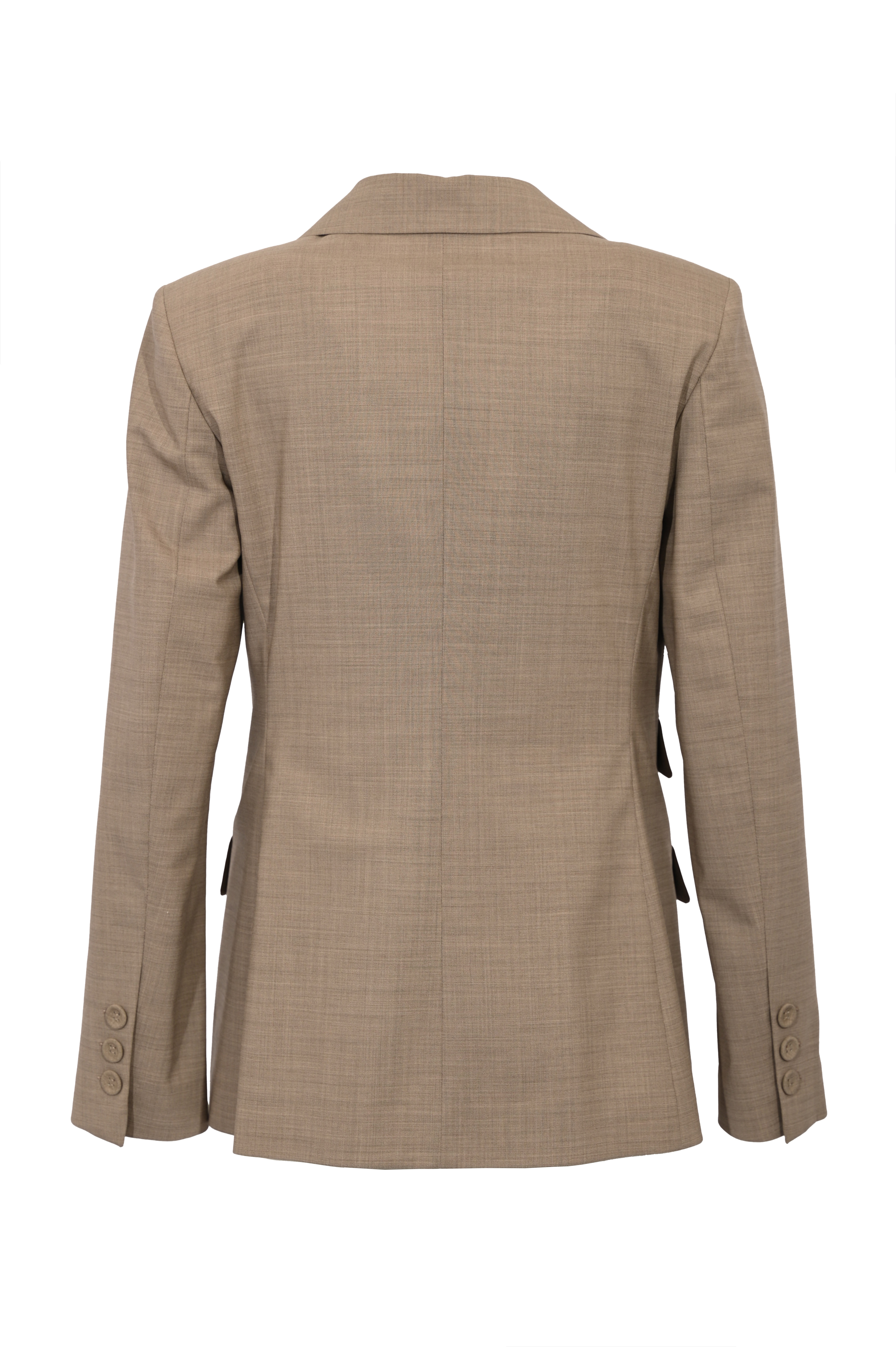 - Dettagli: costruzione sartoriale con cuciture strutturanti, linea leggermente sfiancata, spacco posteriore centrale, tessuto compatto e luminoso
