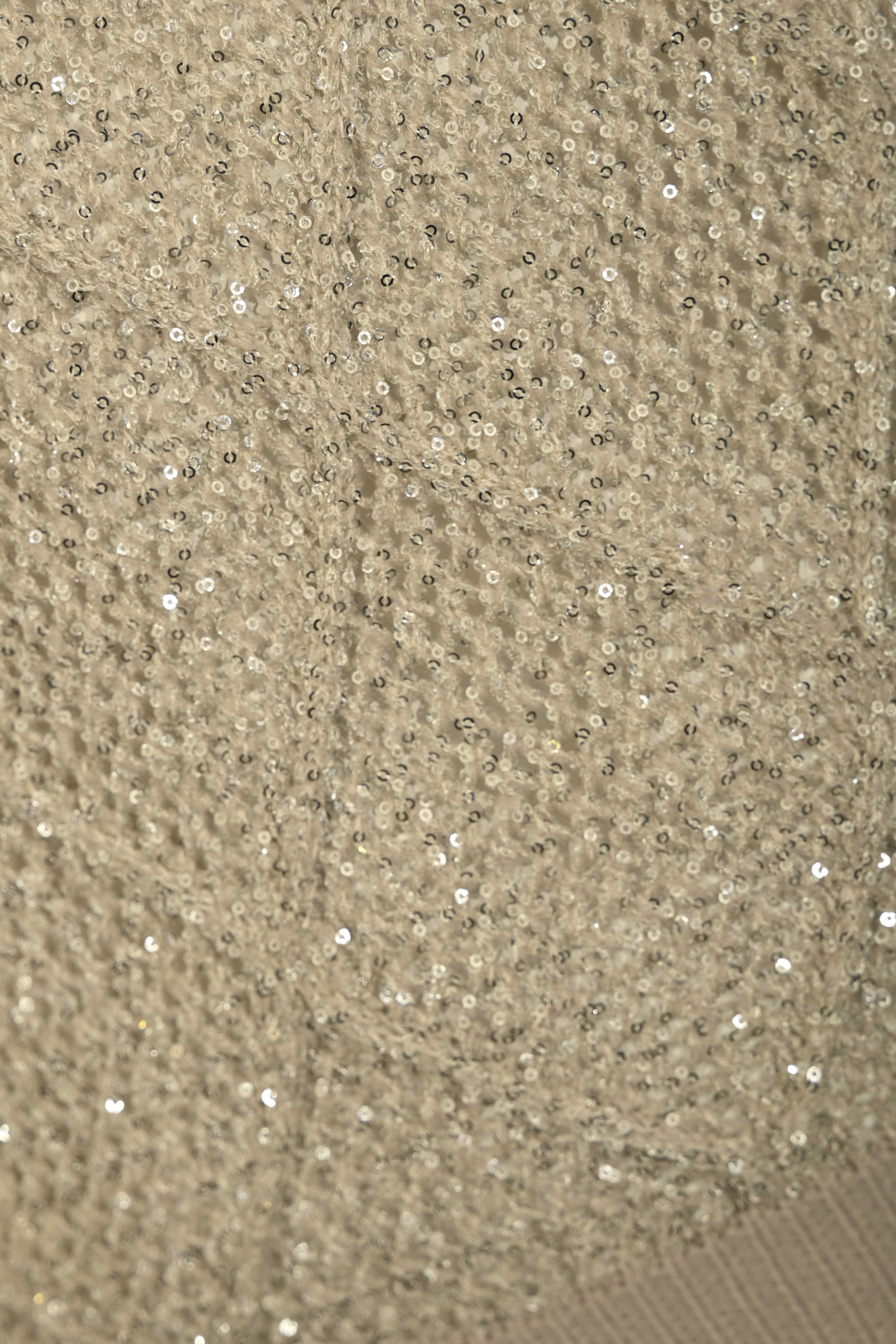 - Dettagli: Lavorazione traforata con paillettes tono su tono, bordi a costine su collo, maniche e fondo