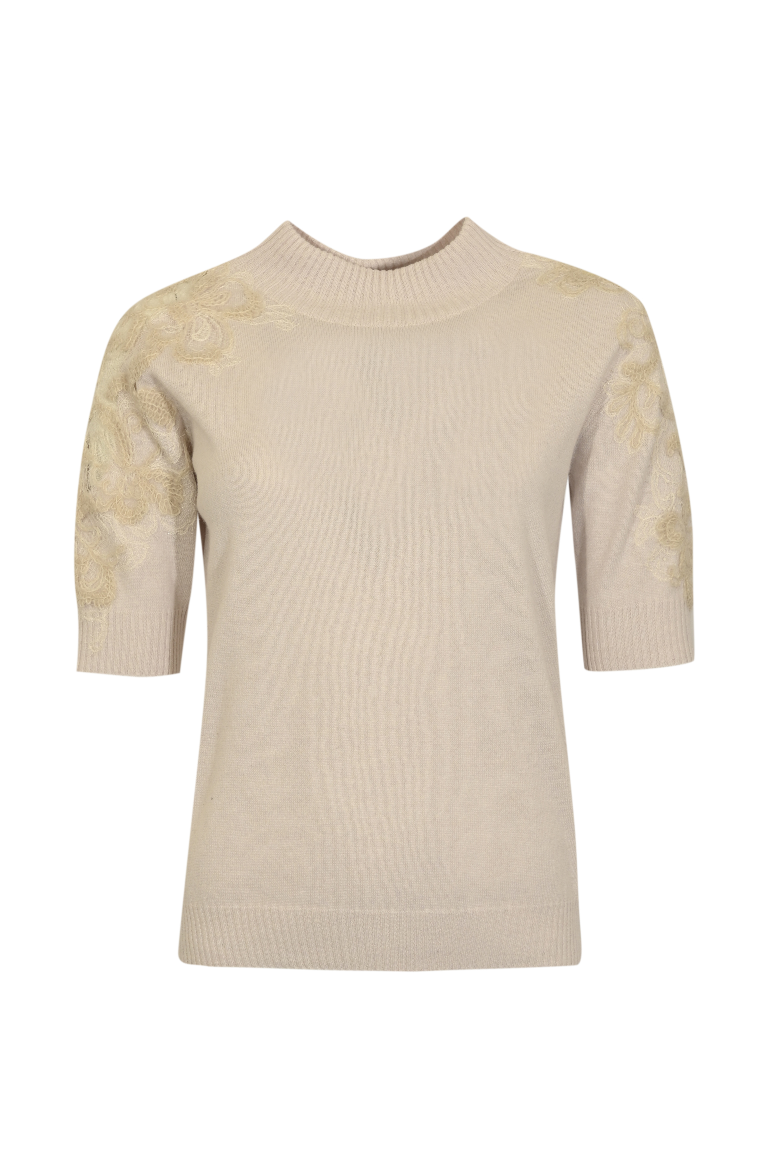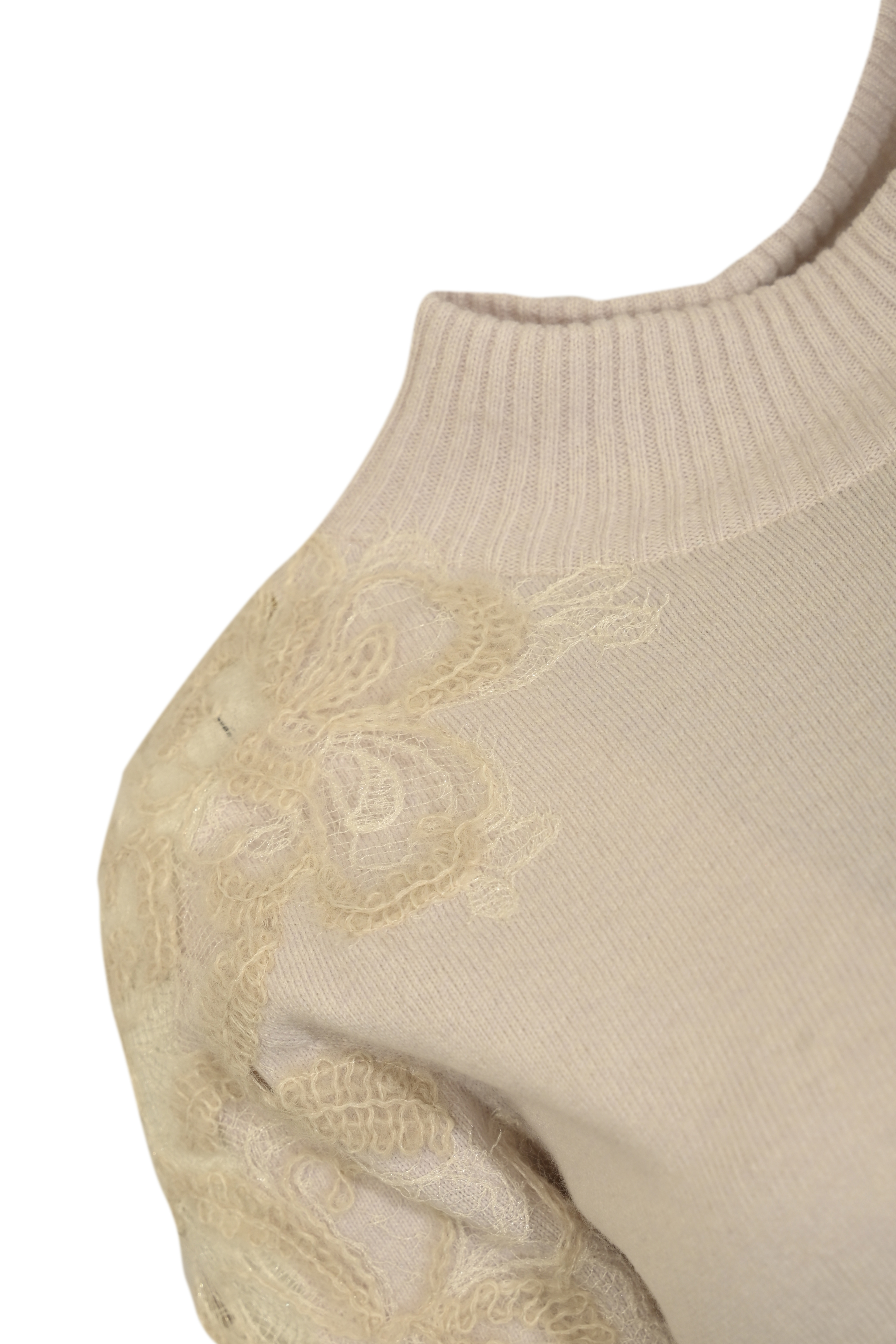 Maglia girocollo in misto cashmere con pizzo Ghiaccio