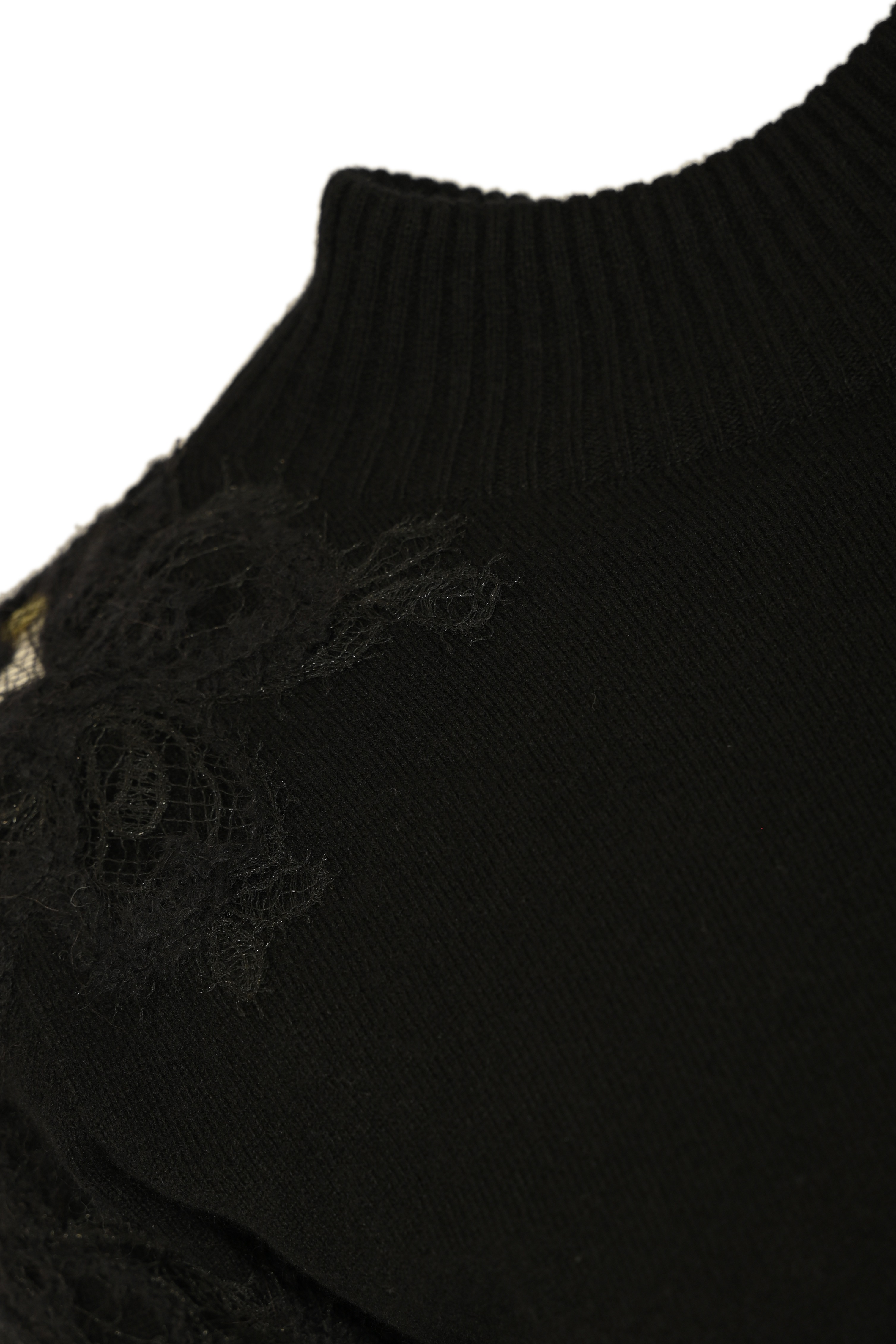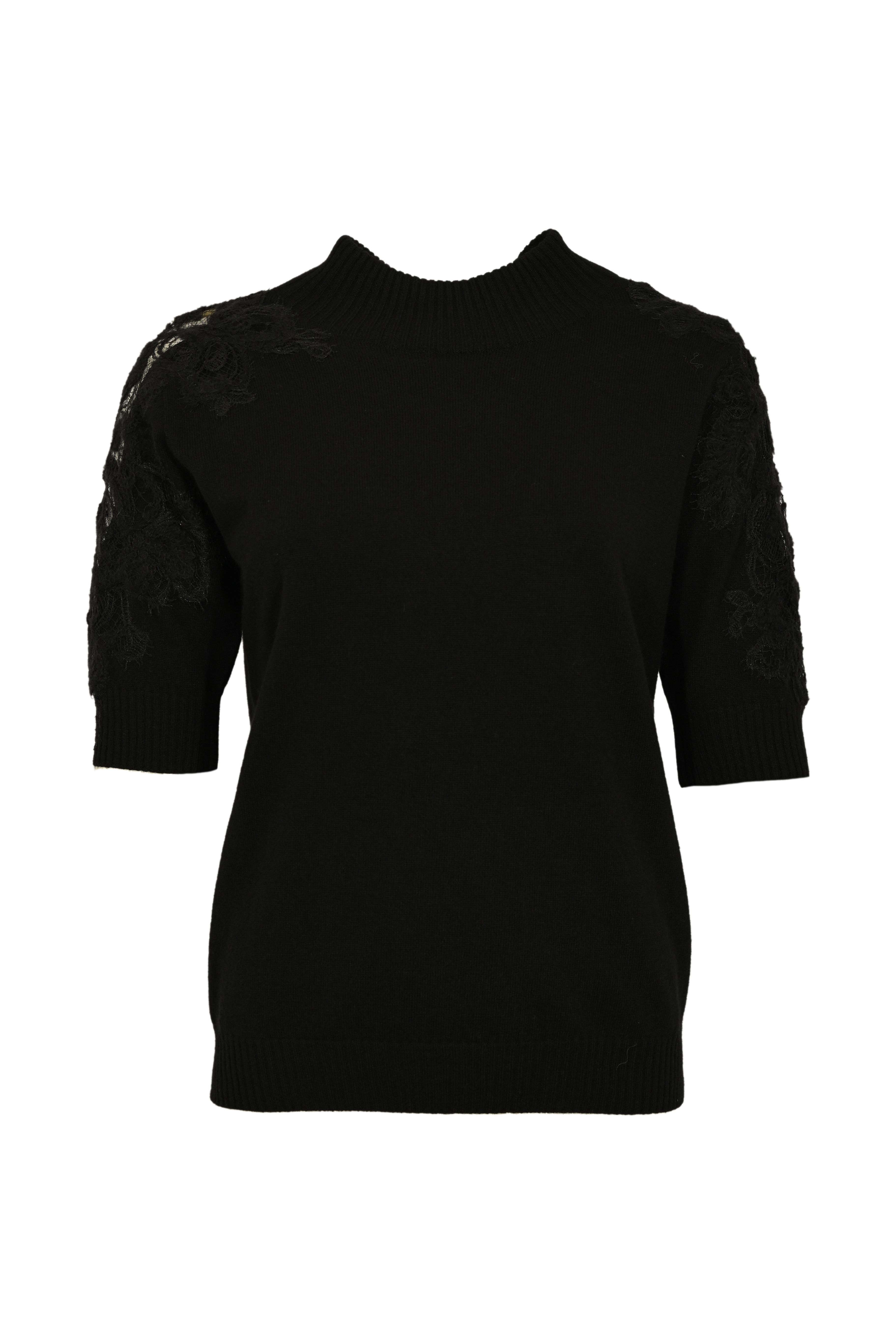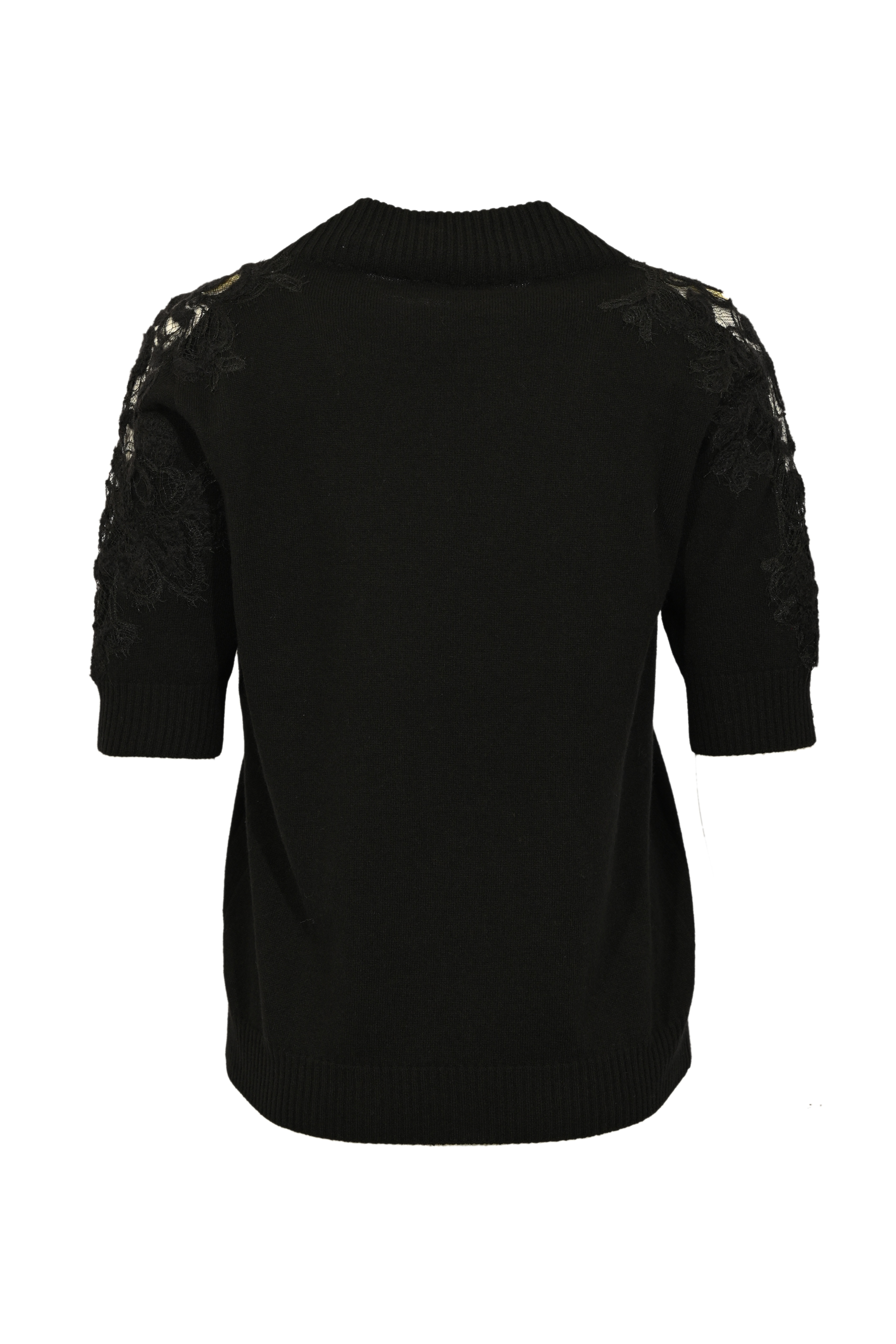 Maglia girocollo in misto cashmere con pizzo Nero