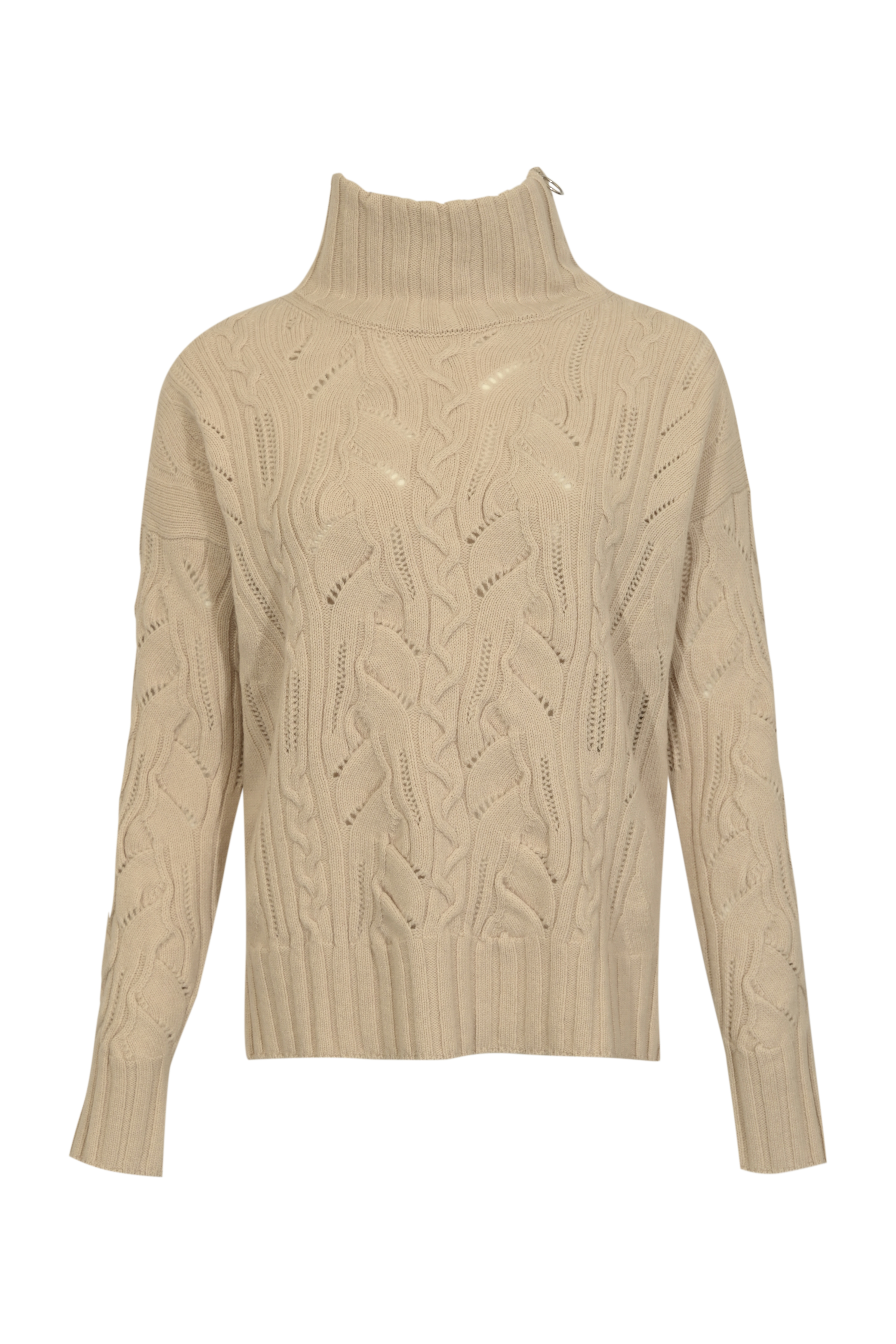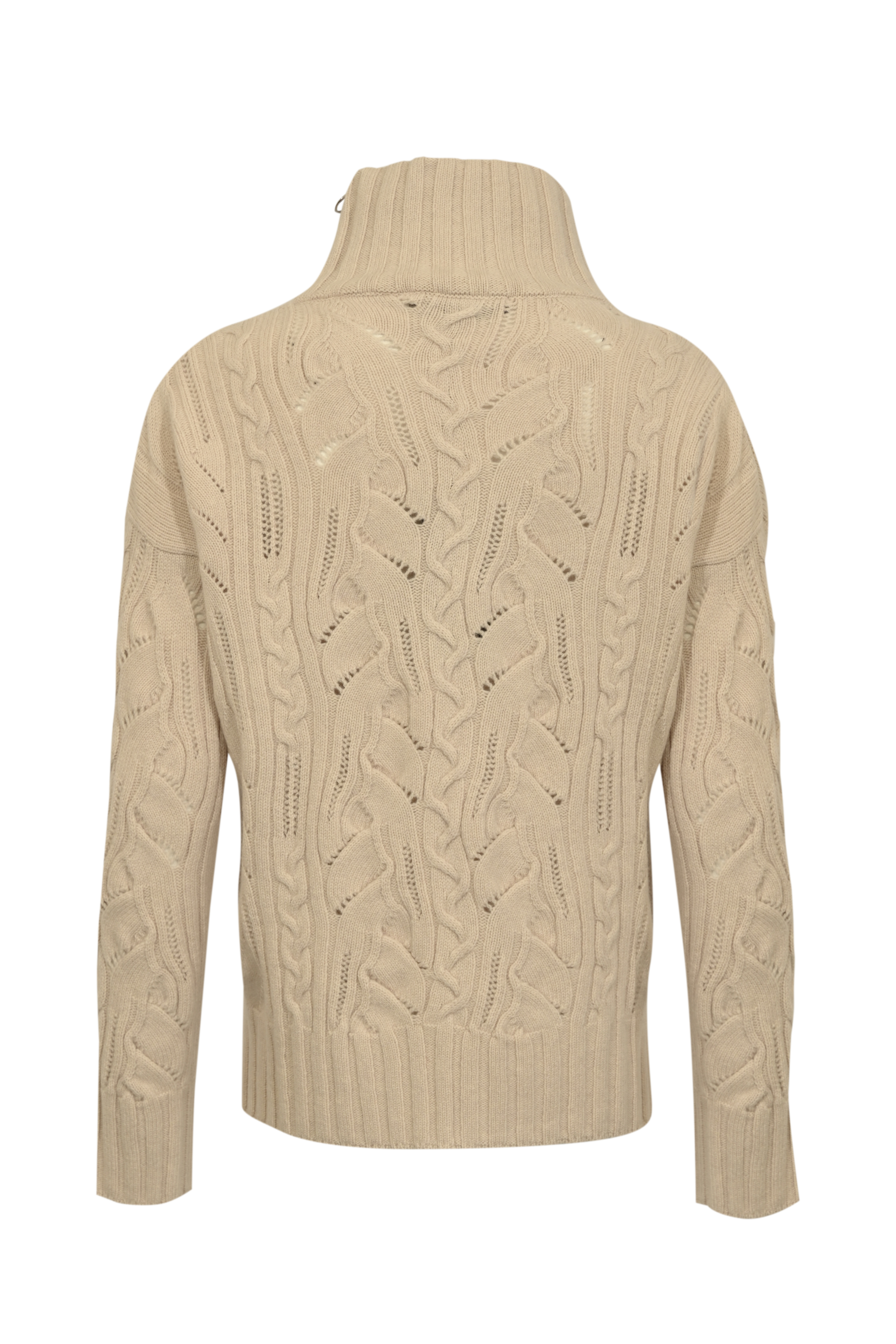- Dettagli: Lavorazione a trecce con effetto traforato, collo alto con zip decorativa, bordi a costine