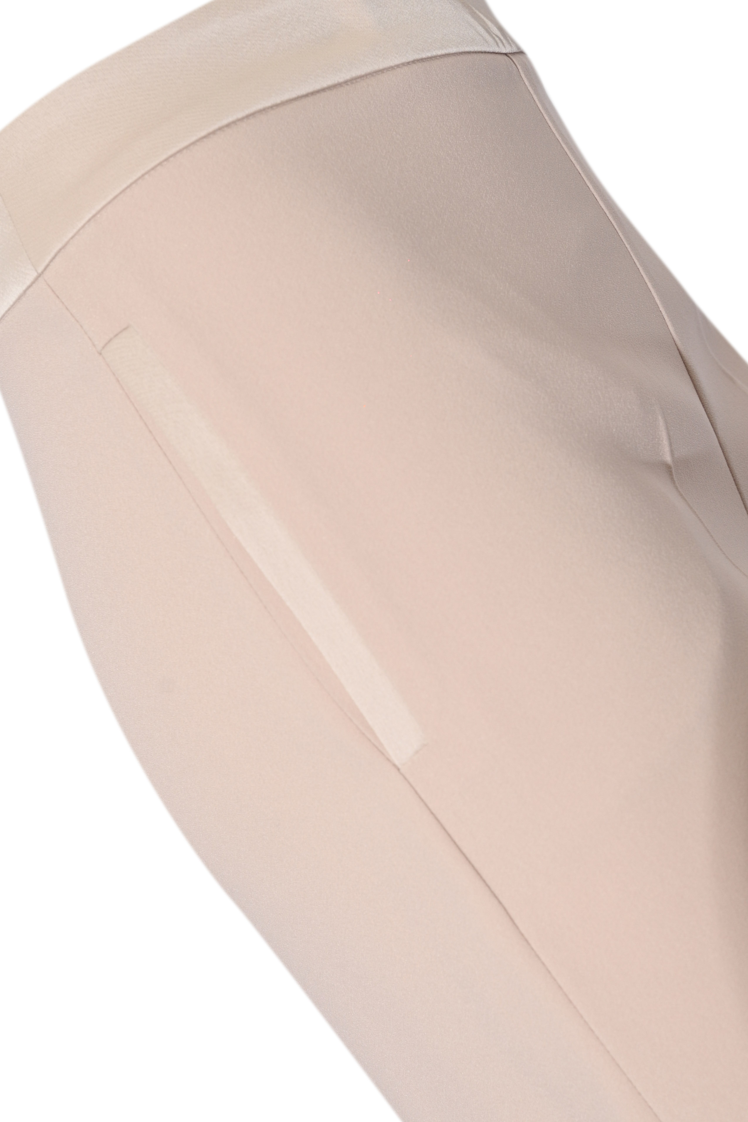 - Dettagli: piega centrale, profili in raso in vita e tasche