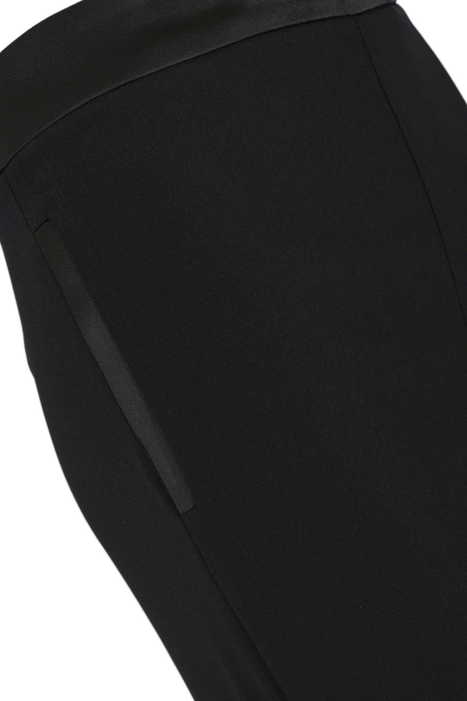 - Dettagli: piega centrale, profili in raso in vita e tasche