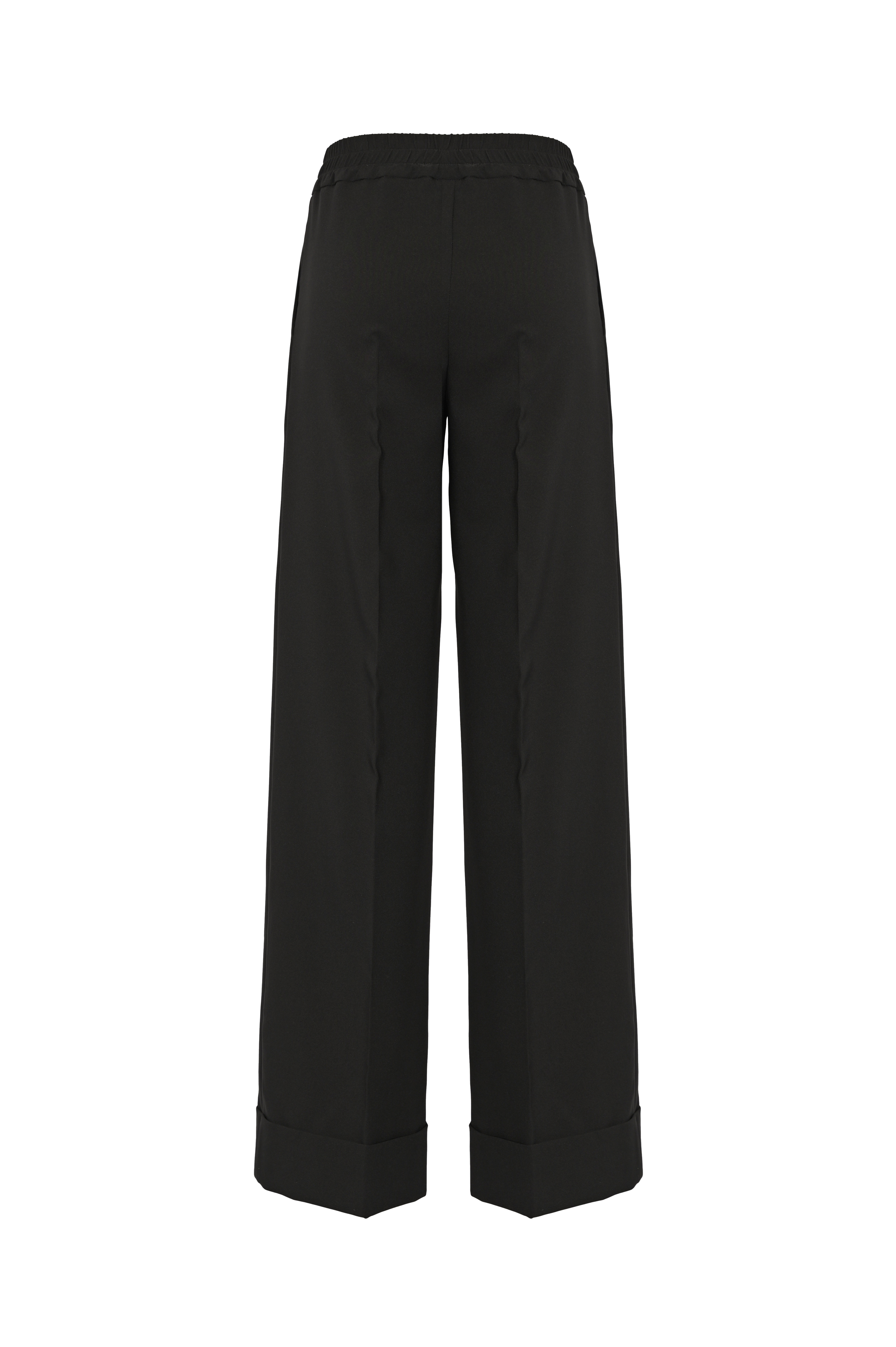 - Dettagli: piega stirata frontale, linea ampia e morbida, costruzione pulita e raffinata, risvolto strutturato per una caduta fluida