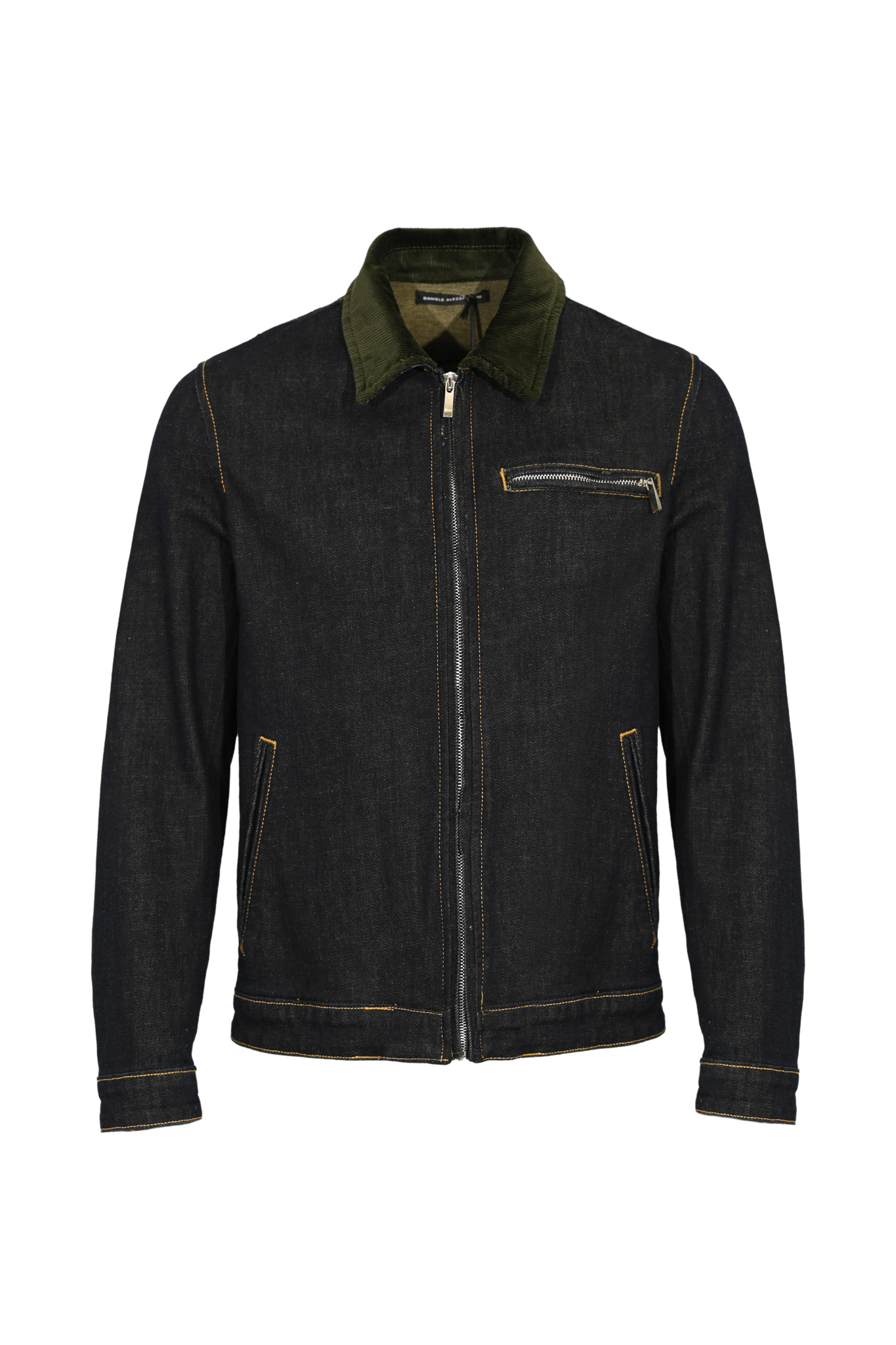 - Fantasia: Tinta unita blu denim scuro con cuciture a contrasto