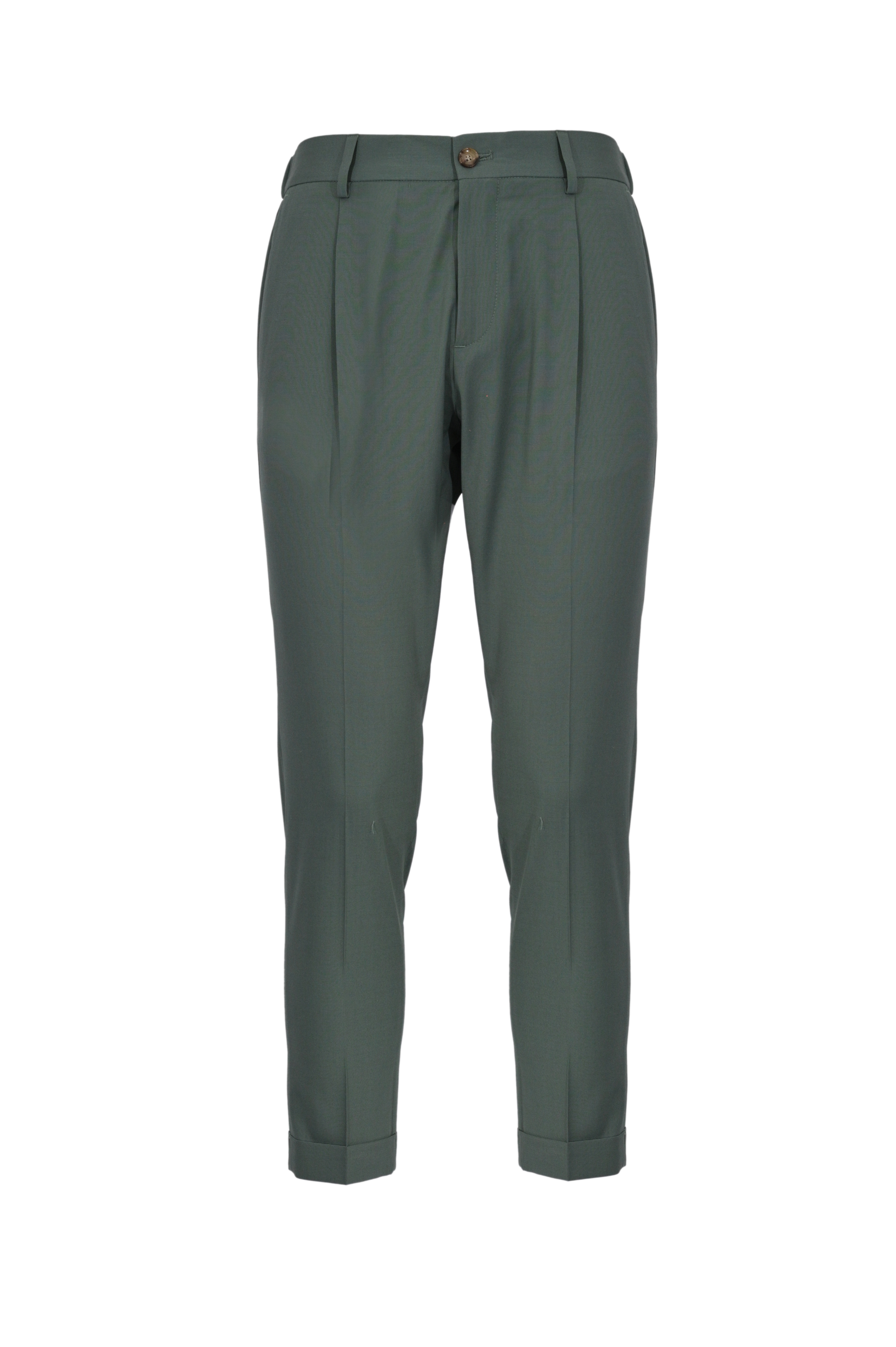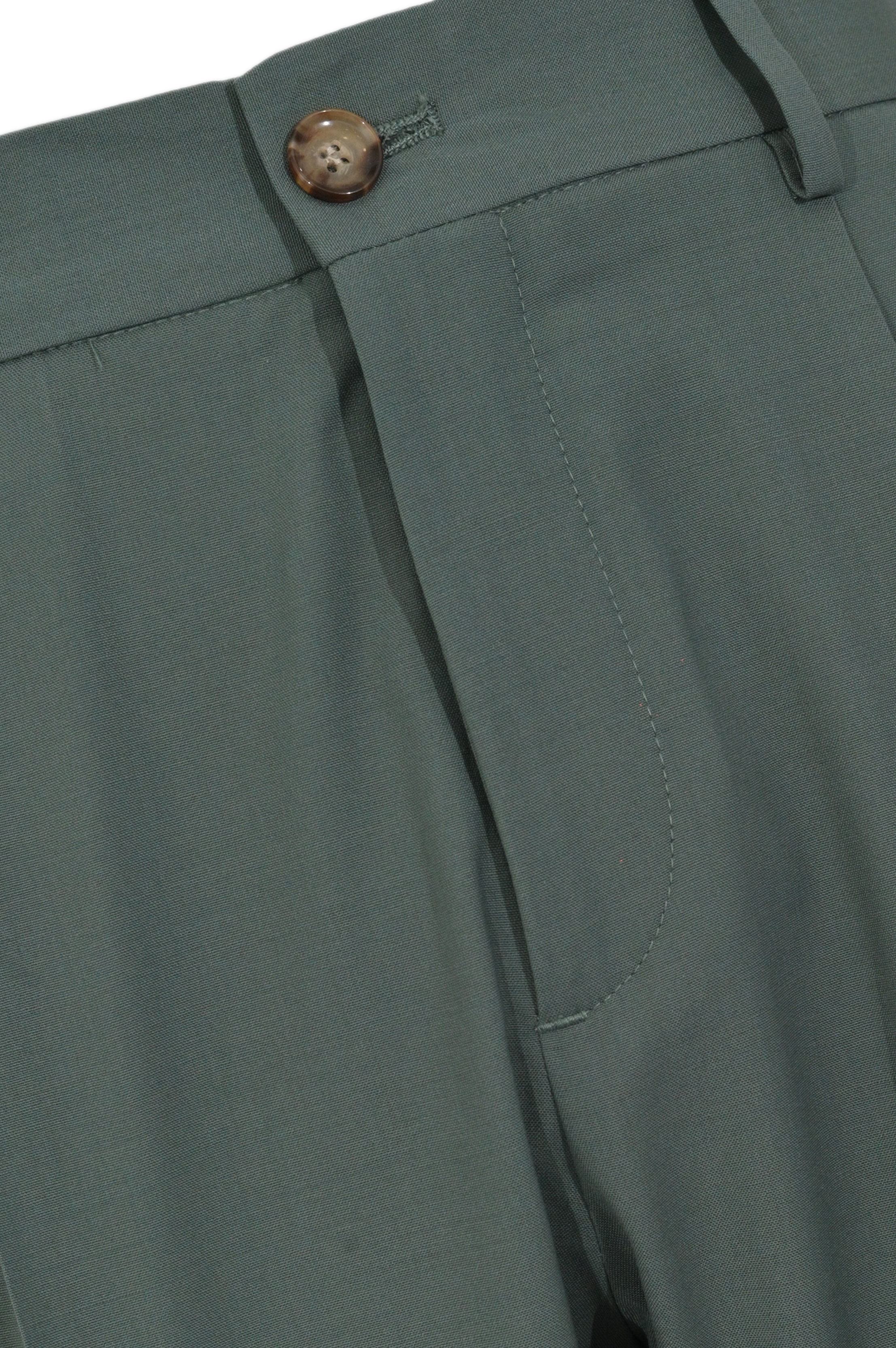 - Dettagli: doppie pinces anteriori, piega stirata centrale, risvolto sul fondo