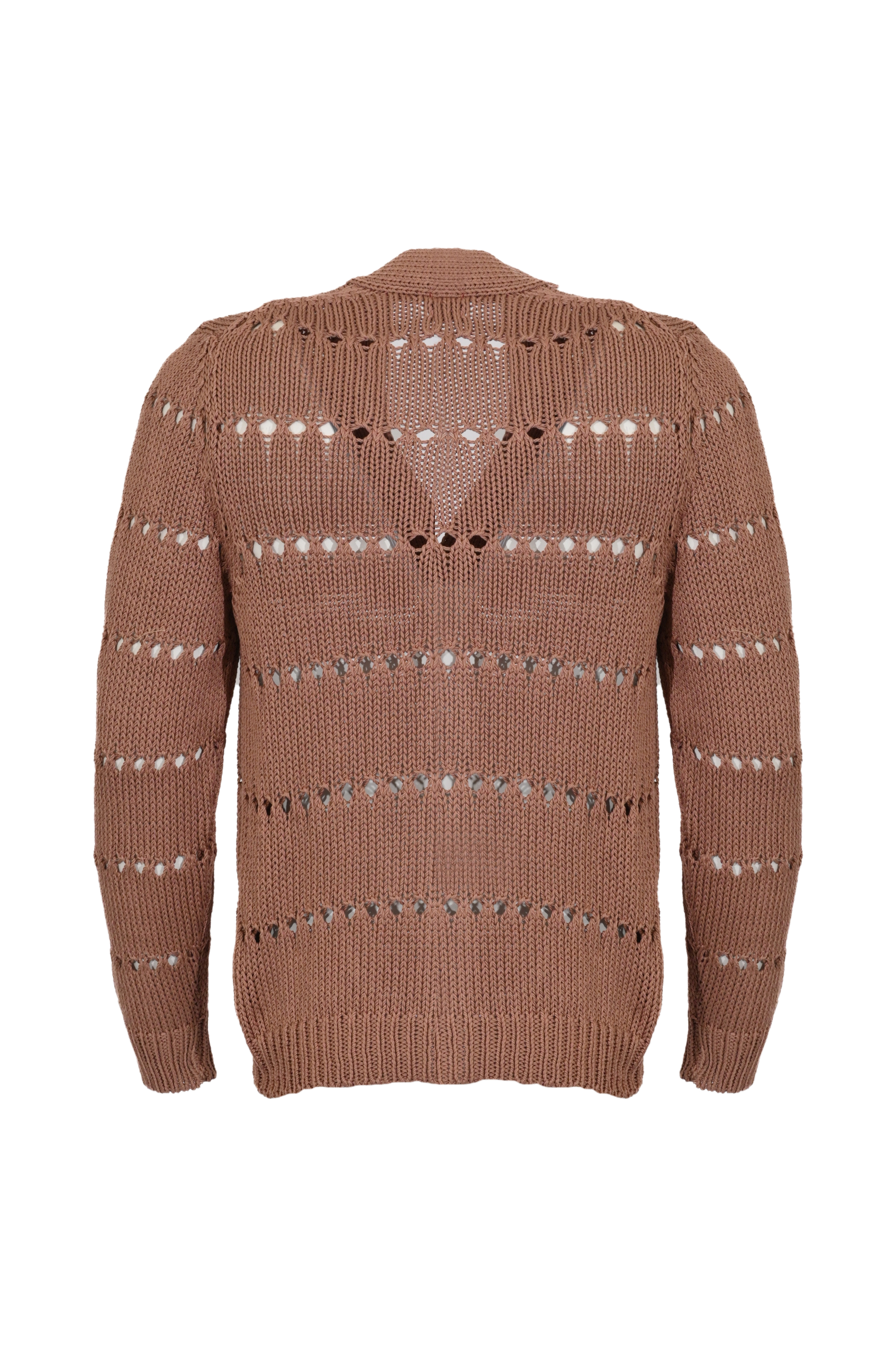 - Dettagli: lavorazione openwork traforata su tutta la superficie, bordi a coste su fondo e polsini, effetto leggero e traspirante, look artigianale e ricercato