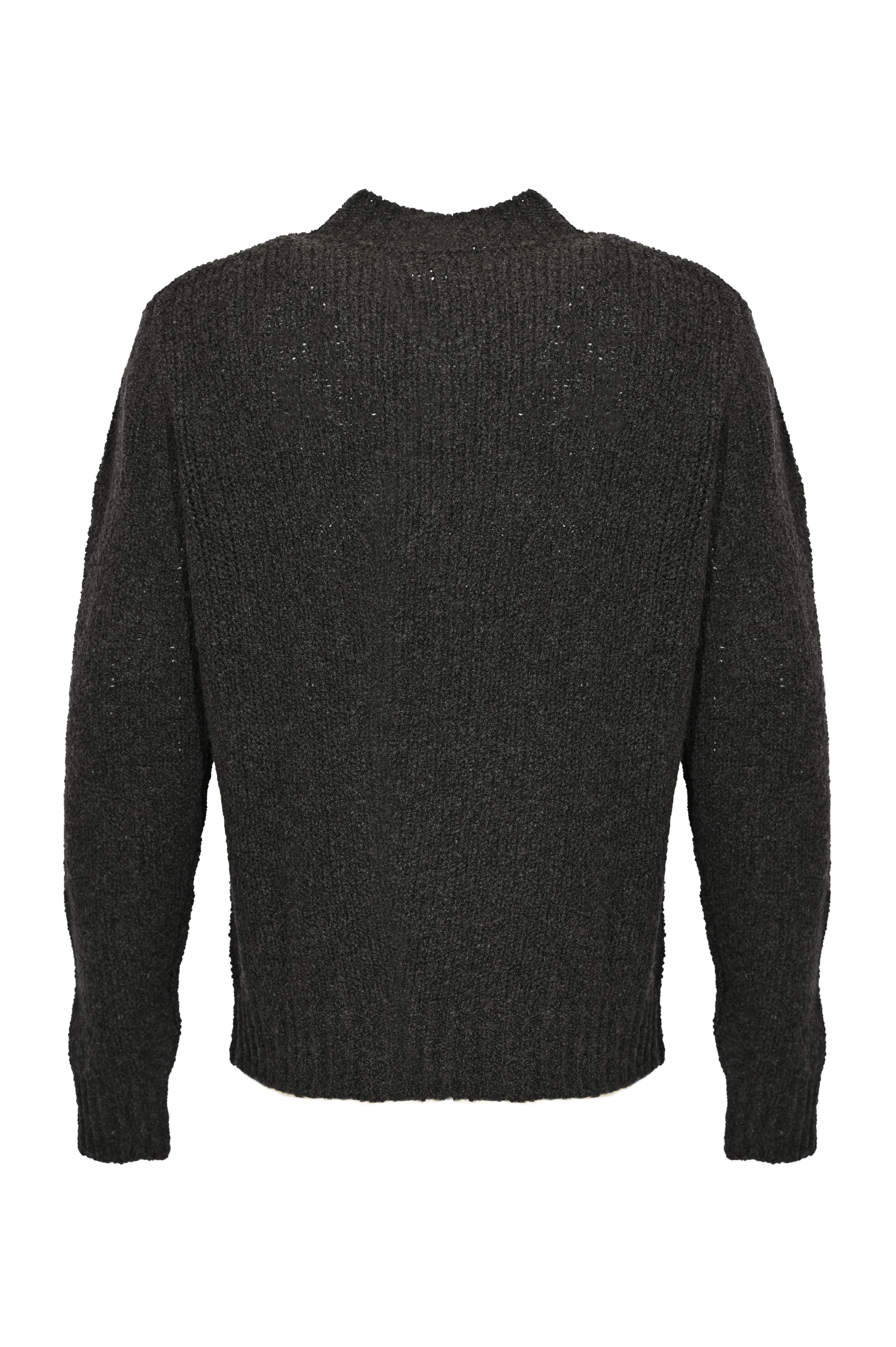 - Dettagli: lavorazione a maglia grossa, finiture a costine su collo, fondo e polsini, texture morbida e calda