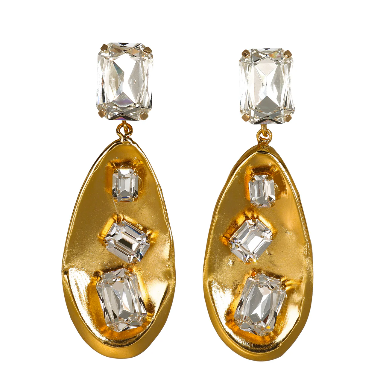 - Tipologia articolo: Orecchini pendenti in metallo dorato con cristalli