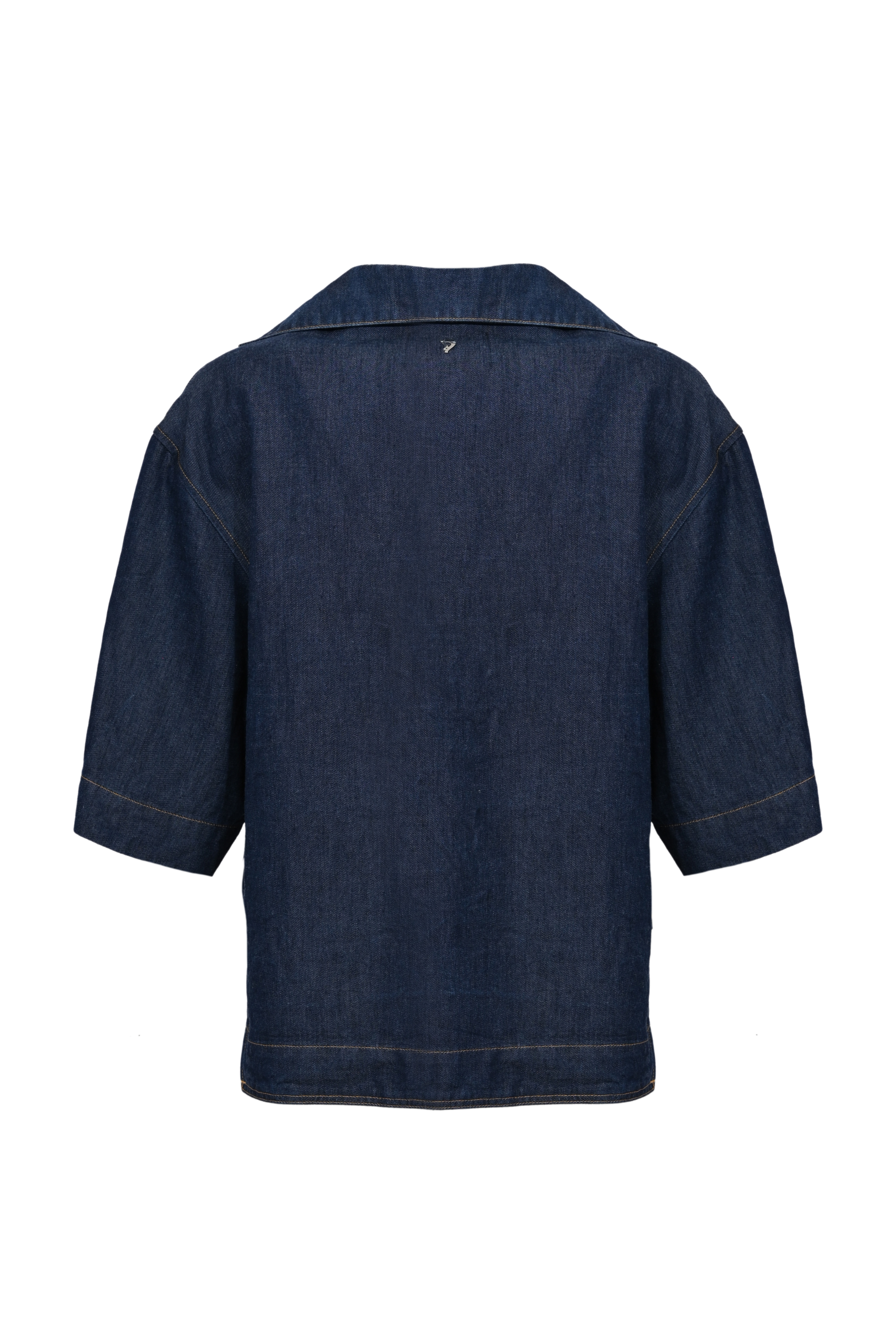 - Dettagli: impunture a contrasto, taglio boxy, fondo dritto