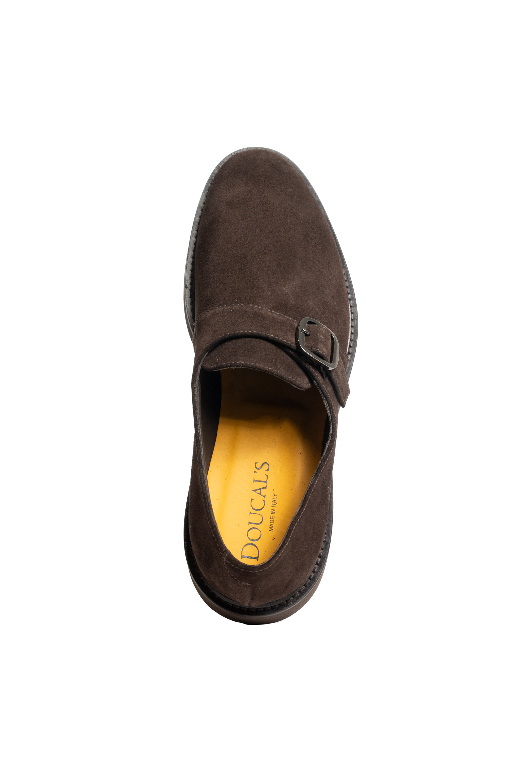 Mocassino mono fibbia in suede marrone "terre" Testa di moro