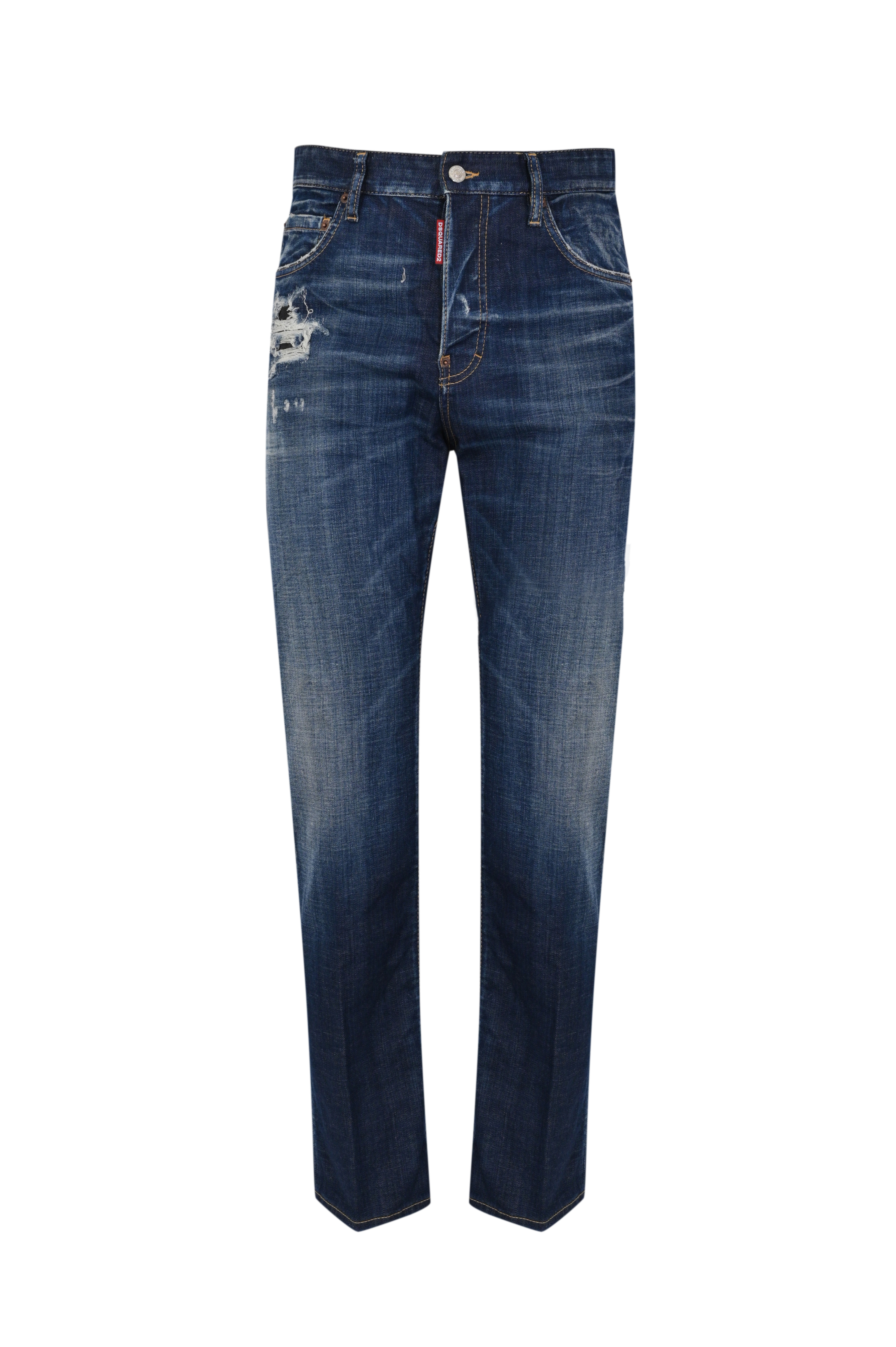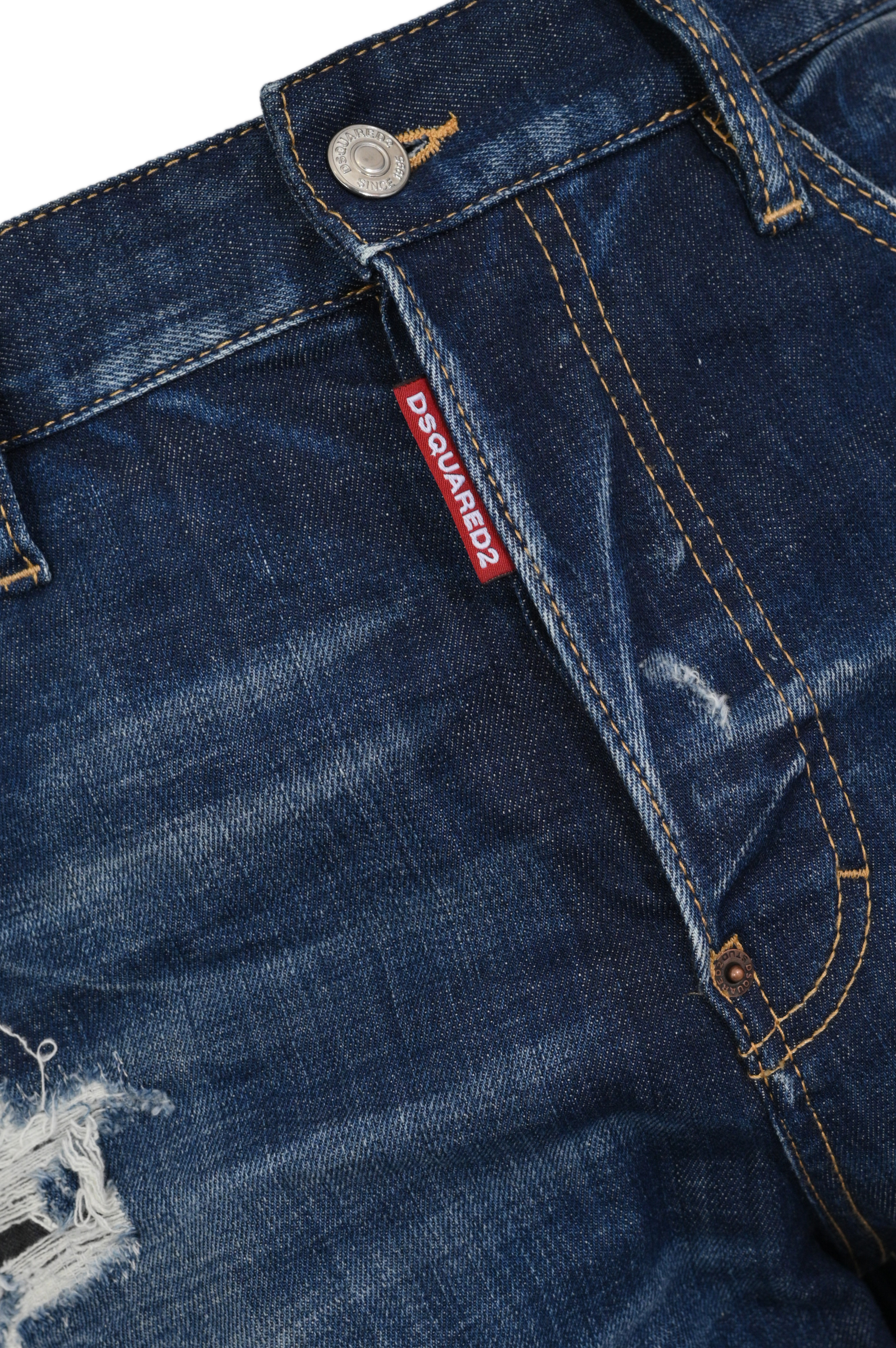 - Dettagli: etichetta logo rossa sulla patta della zip, patch posteriore in pelle con logo Dsquared2, cuciture in contrasto