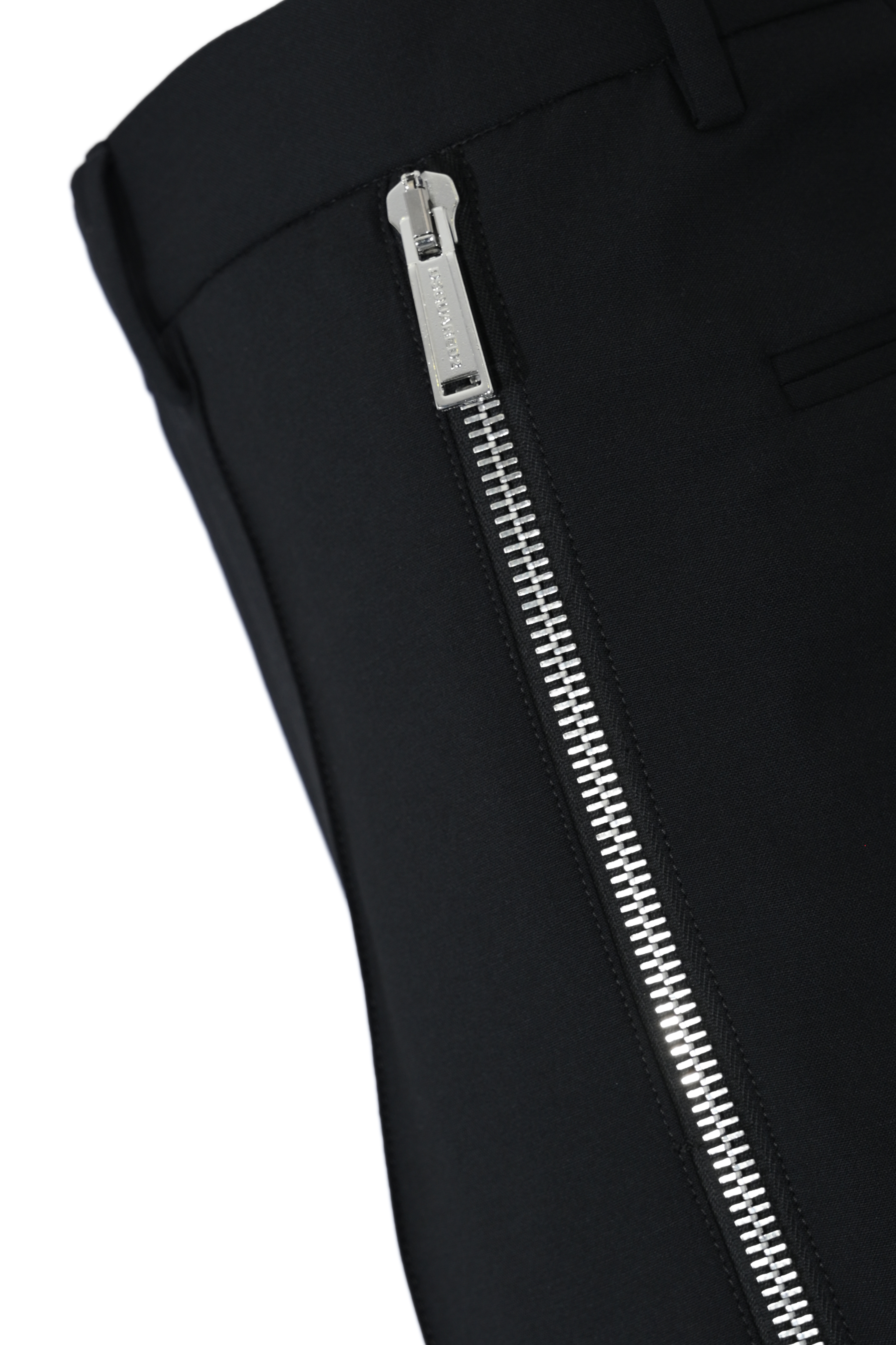 - Dettagli: zip metalliche a vista sui fianchi, piega stirata frontale, linea elegante con gamba dritta