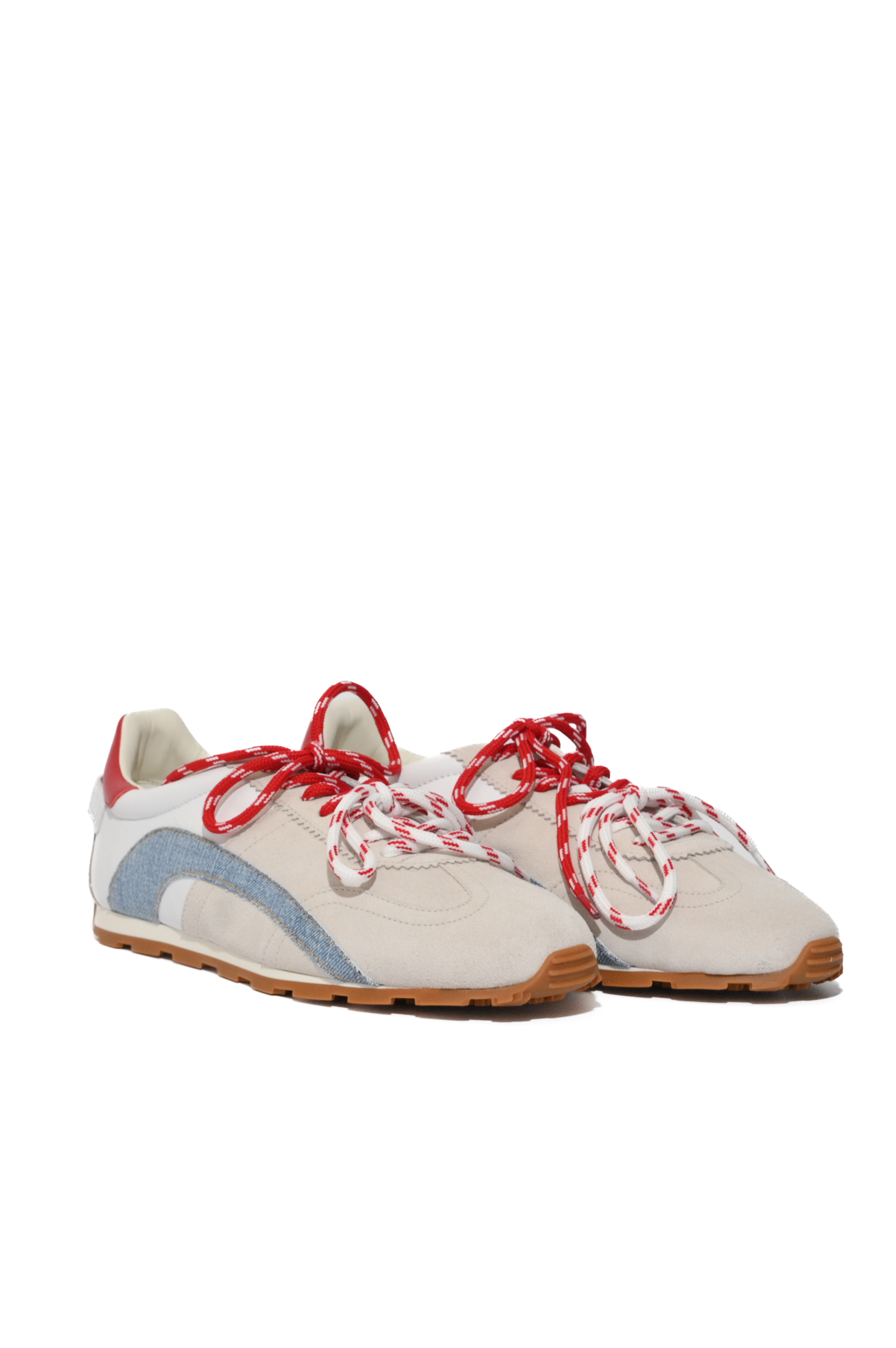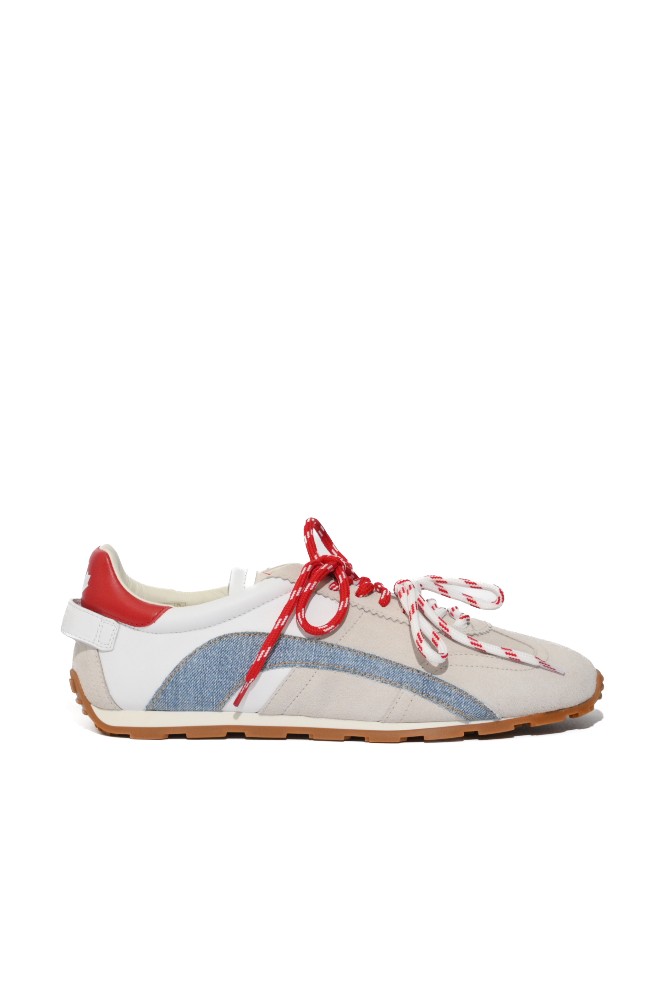 - Tomaia: suede con inserti in denim e pelle liscia a contrasto