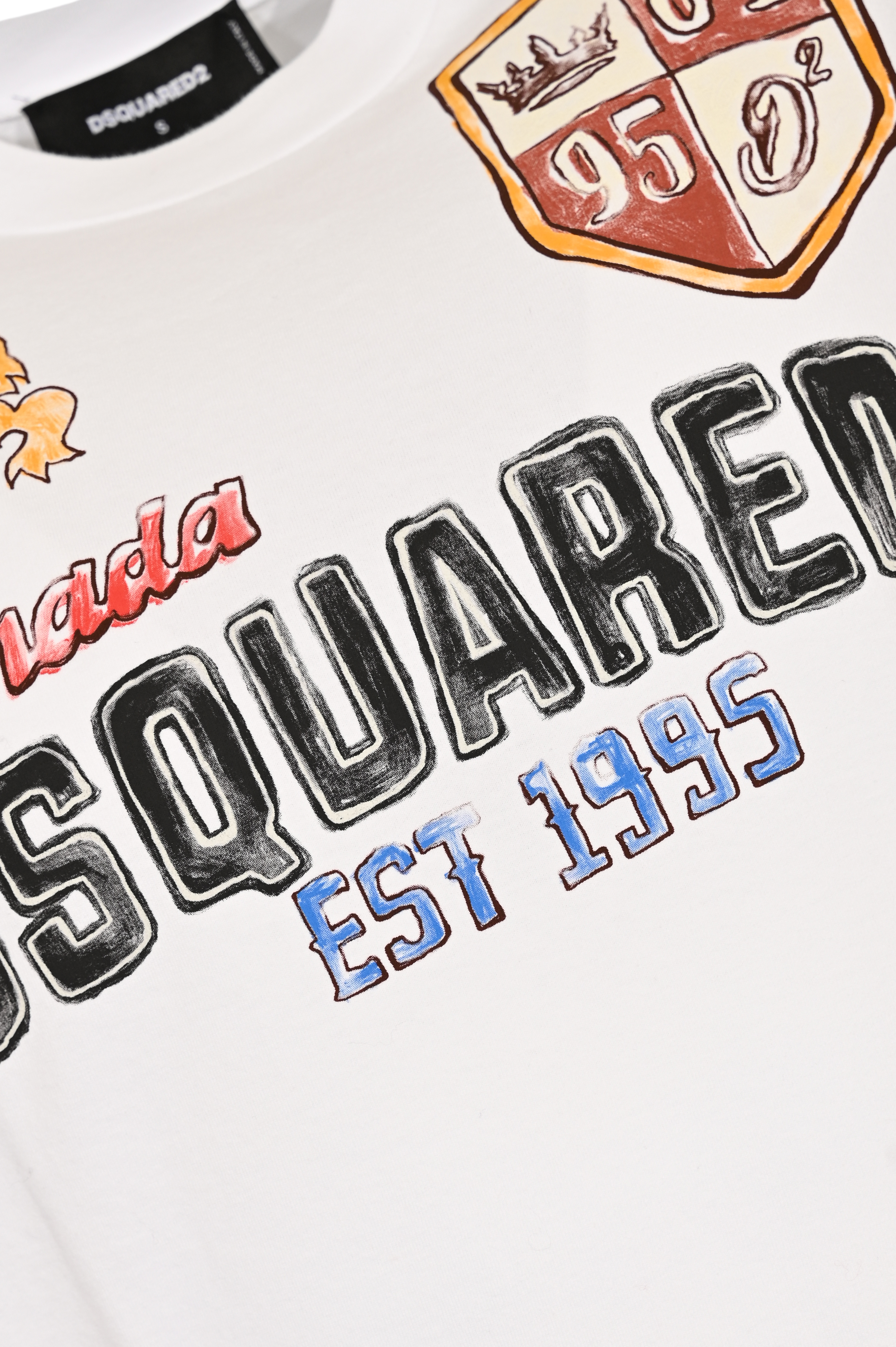 - Dettagli: stampa Canada Dsquared2 Est. 1995, stemma a scudo sul petto e foglie dacero sul fondo, orlo dritto, vestibilità ampia