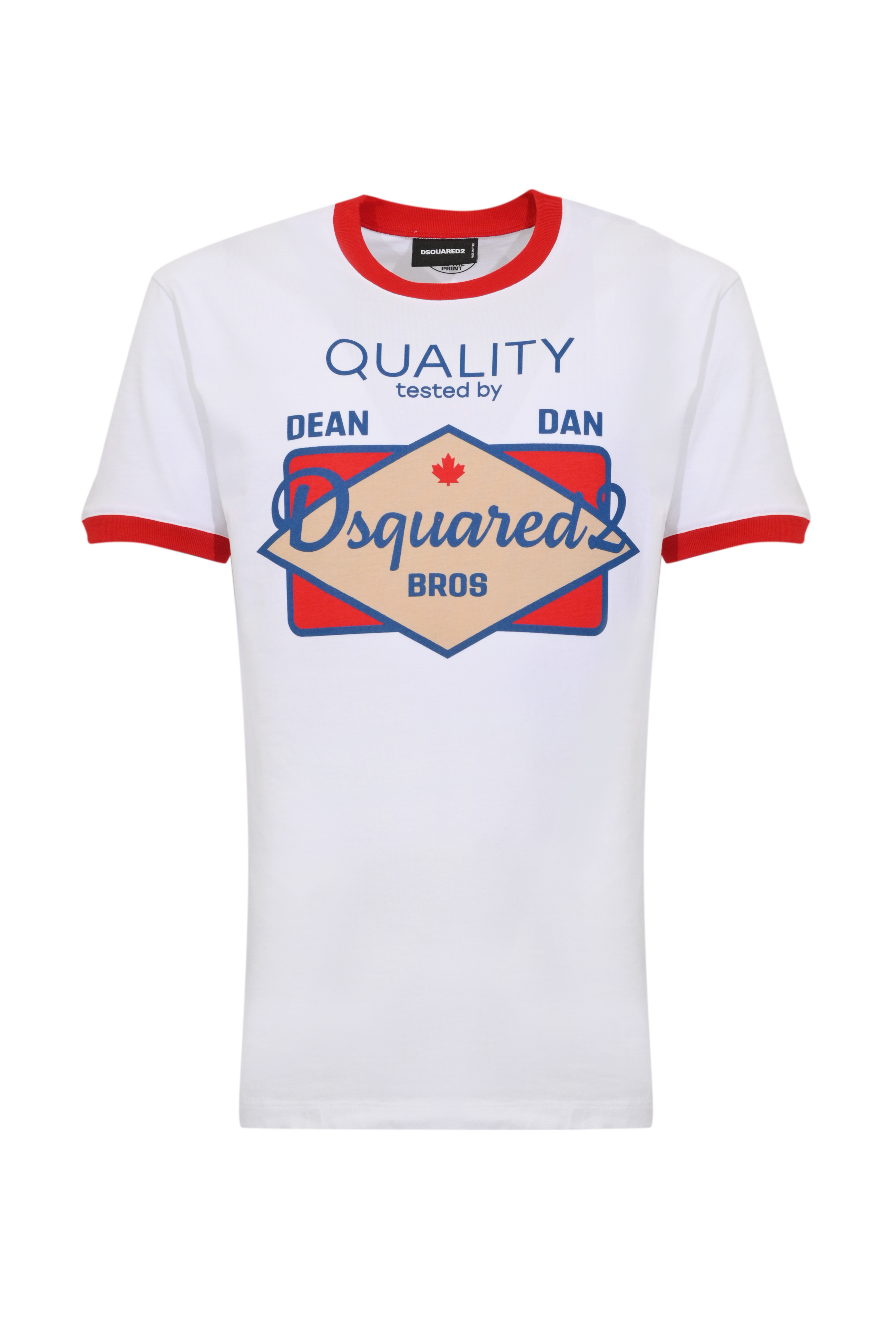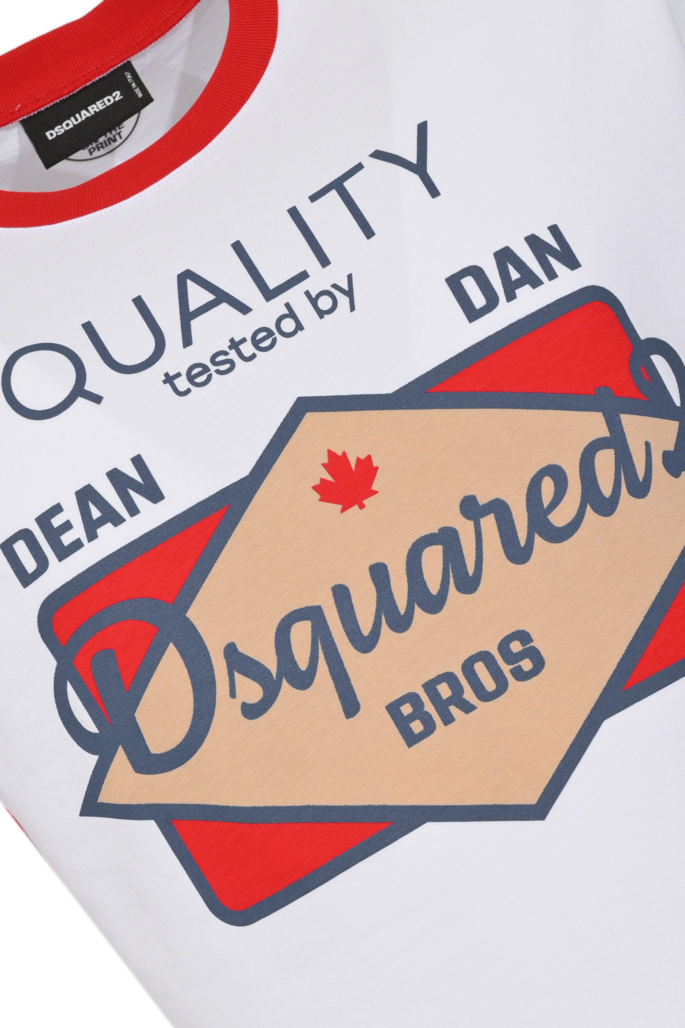 - Fantasia: stampa grafica frontale con logo Dsquared2 e lettering Quality tested by Dean and Dan