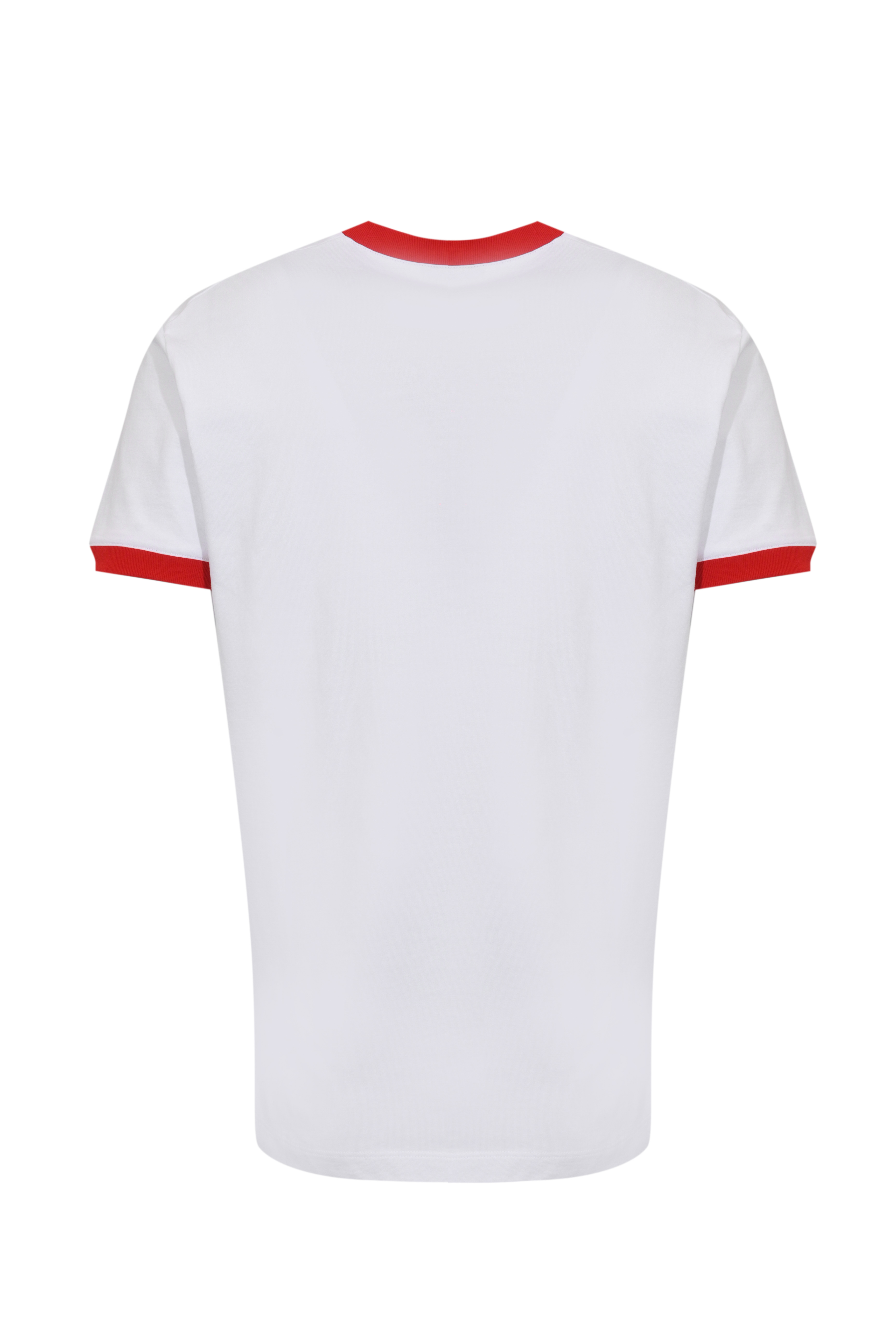 - Dettagli: stampa D2 Daywear sul davanti, finiture a contrasto rosse su collo e maniche, grafica logo centrale multicolore