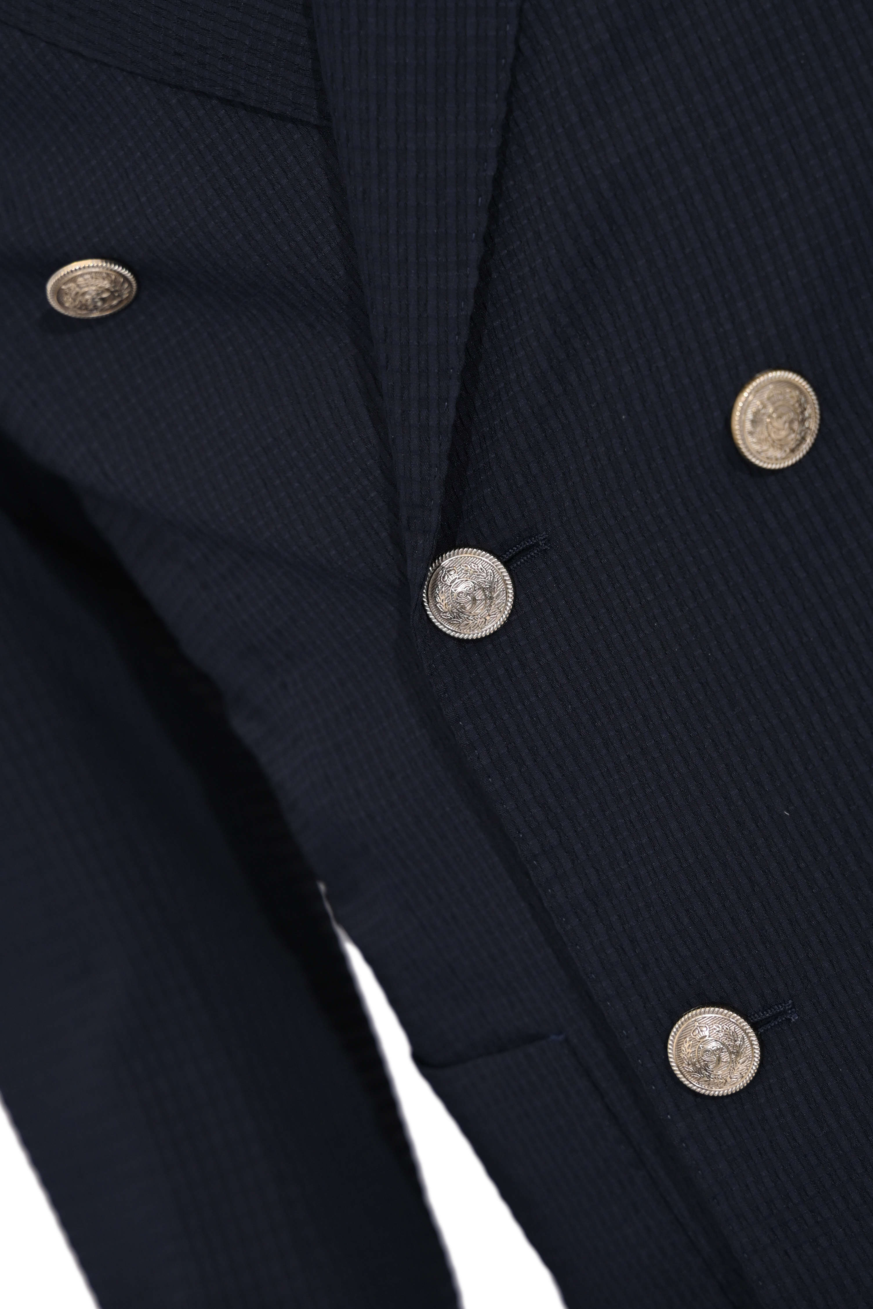 - Dettagli: bottoni decorativi con incisione, costruzione sartoriale