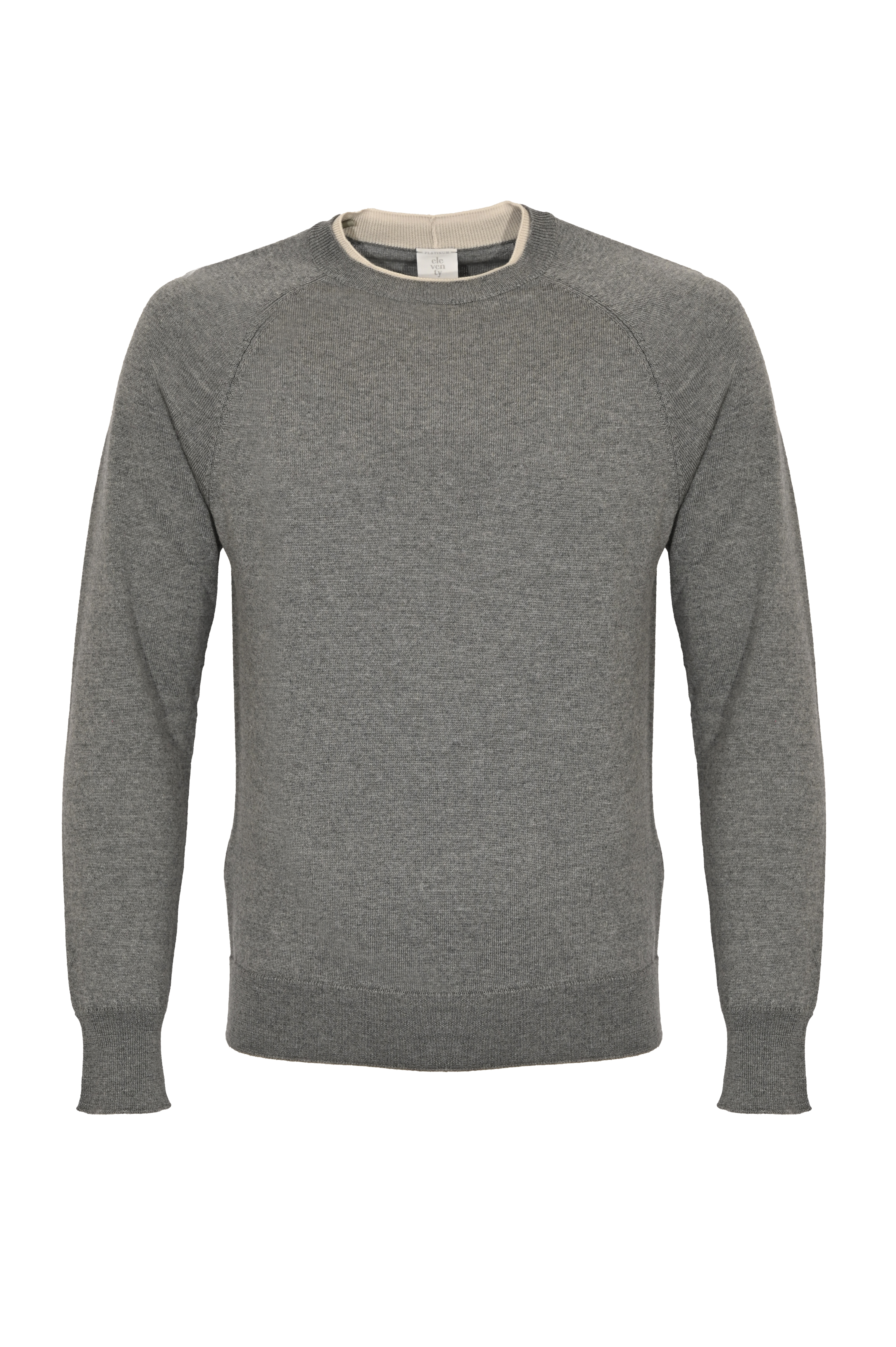 Maglia da uomo in lana vergine, Eleventy, modello girocollo con bordi a contrasto