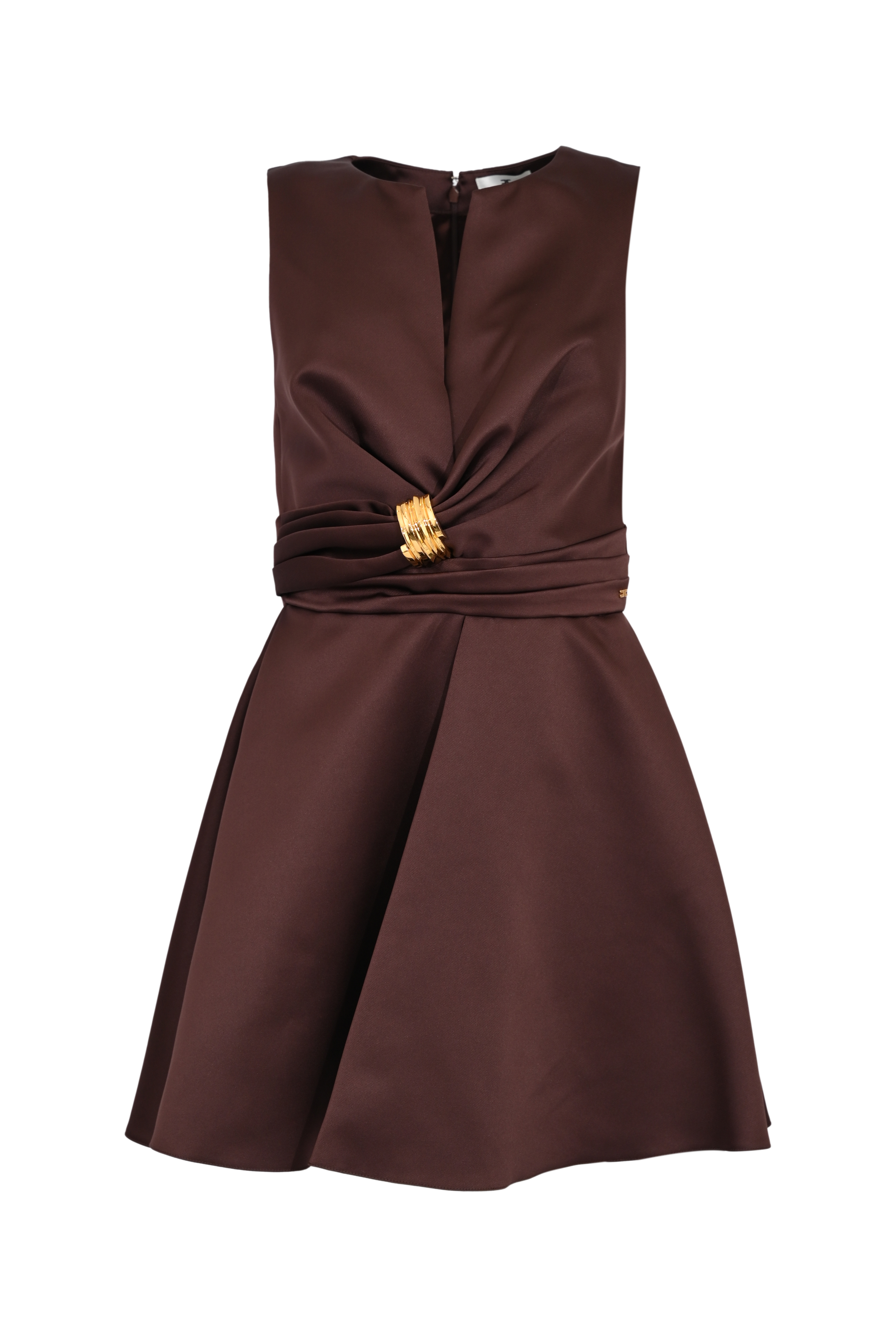Abito da donna in duchesse, Elisabetta Franchi, modello svasato con dettaglio gioiello