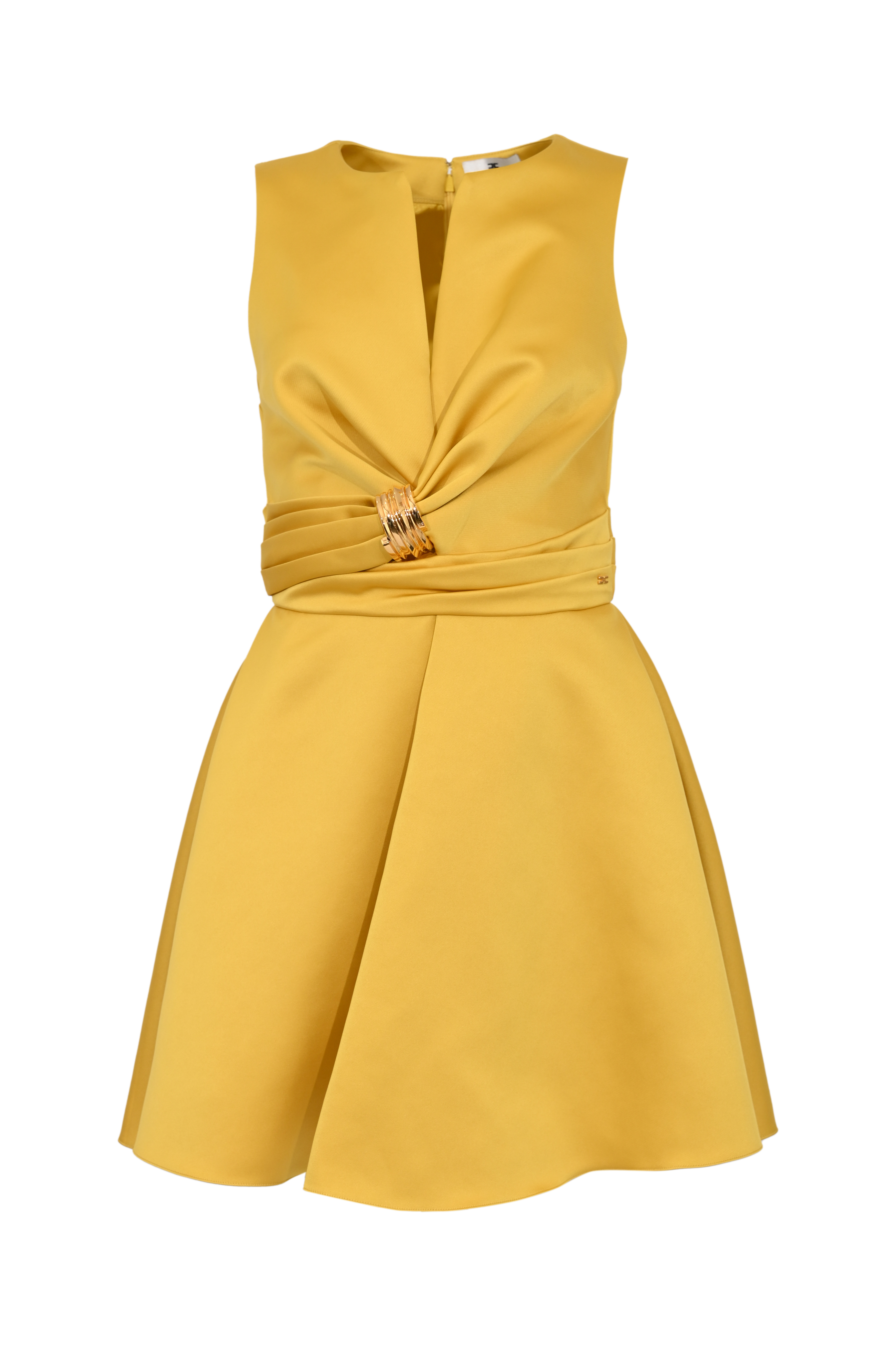 Abito da donna in duchesse, Elisabetta Franchi, modello svasato con dettaglio gioiello