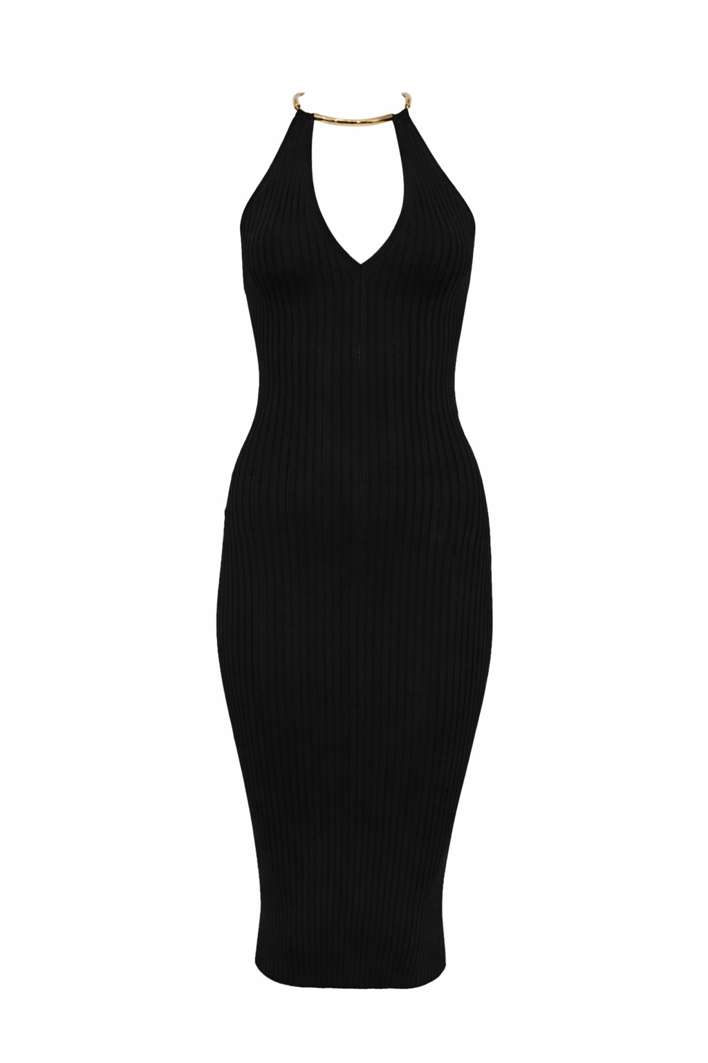 Abito in maglia di viscosa à jour con dettaglio gioiello Nero