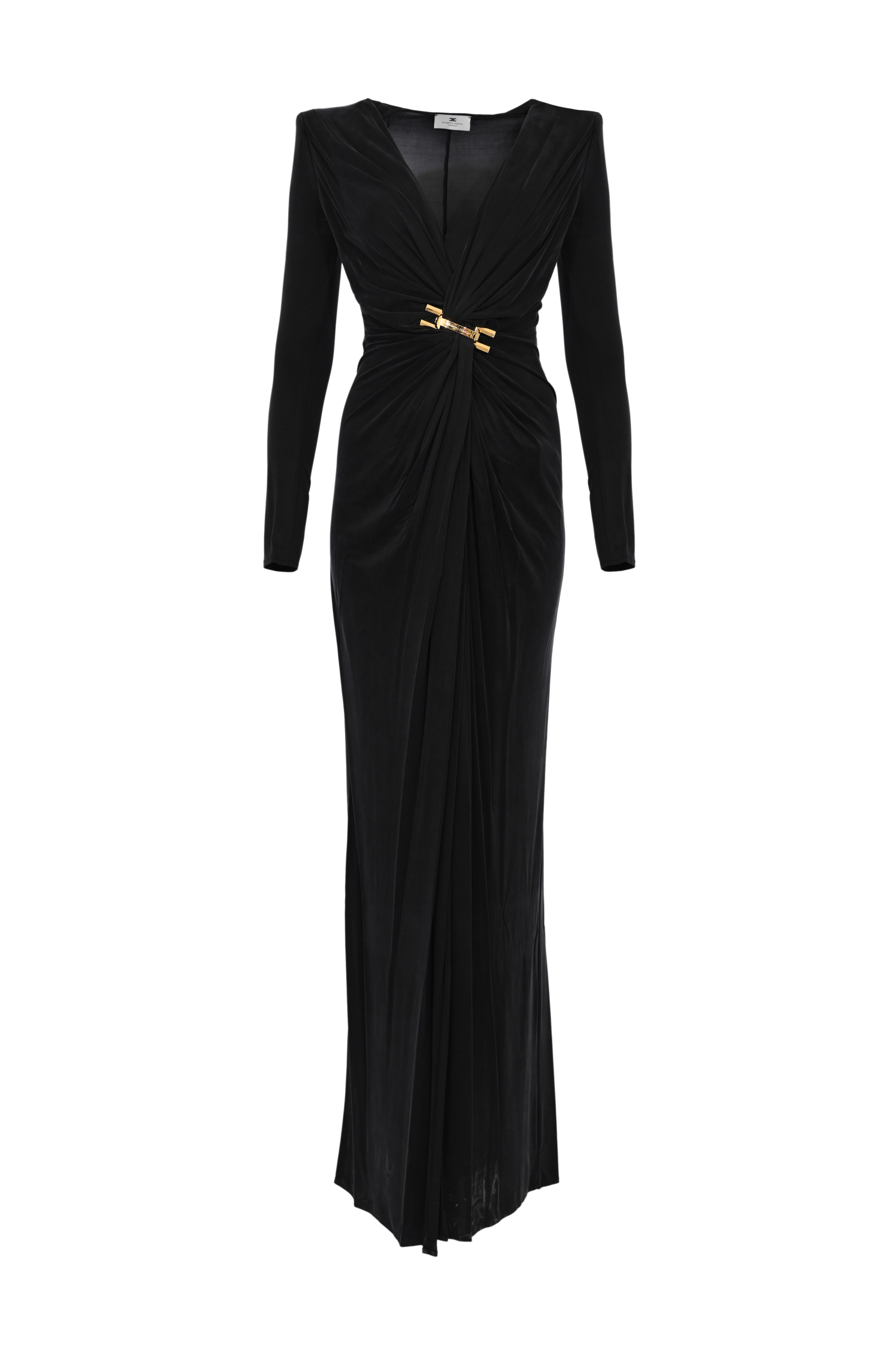 Abito Red Carpet in jersey cupro con logo gioiello Nero