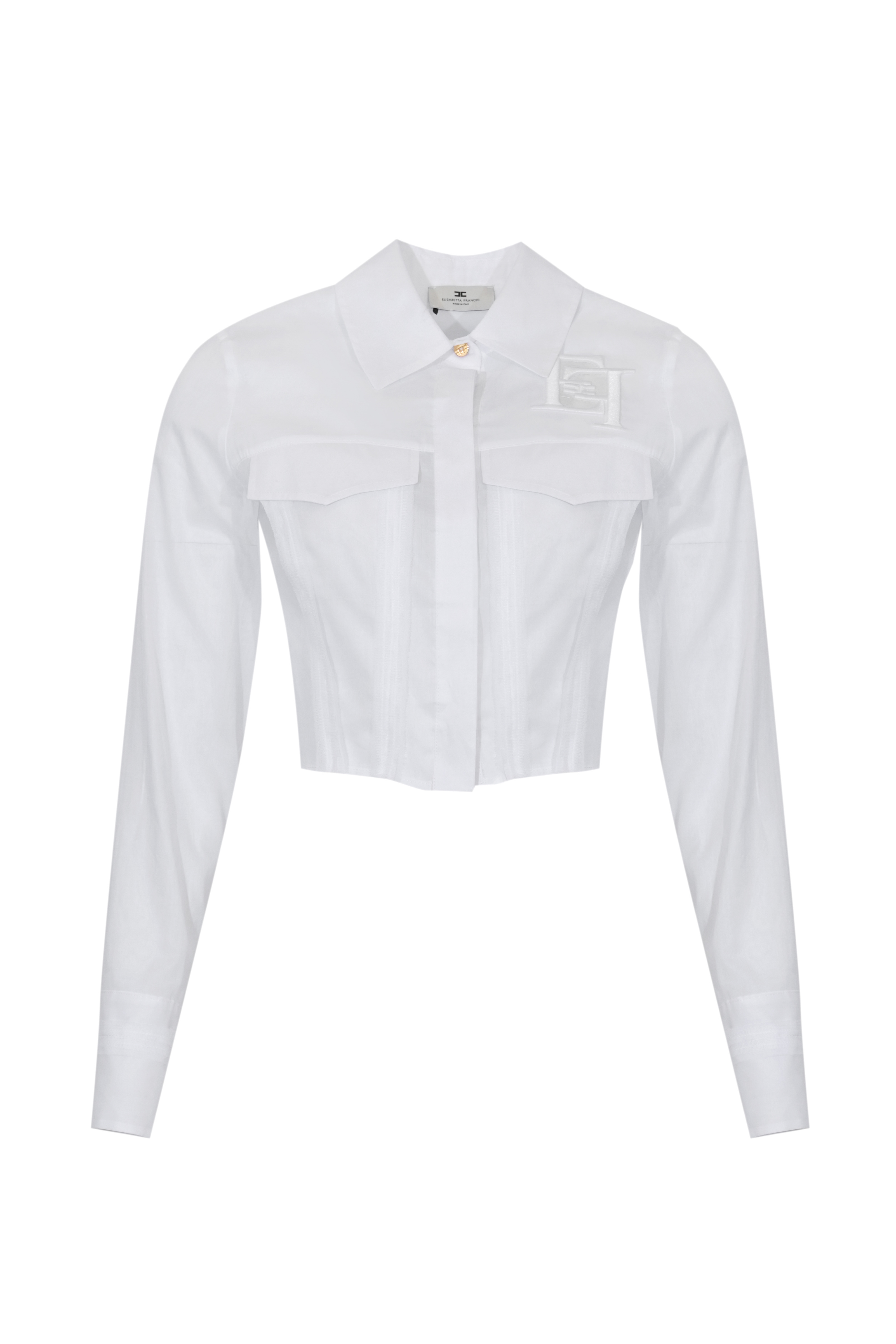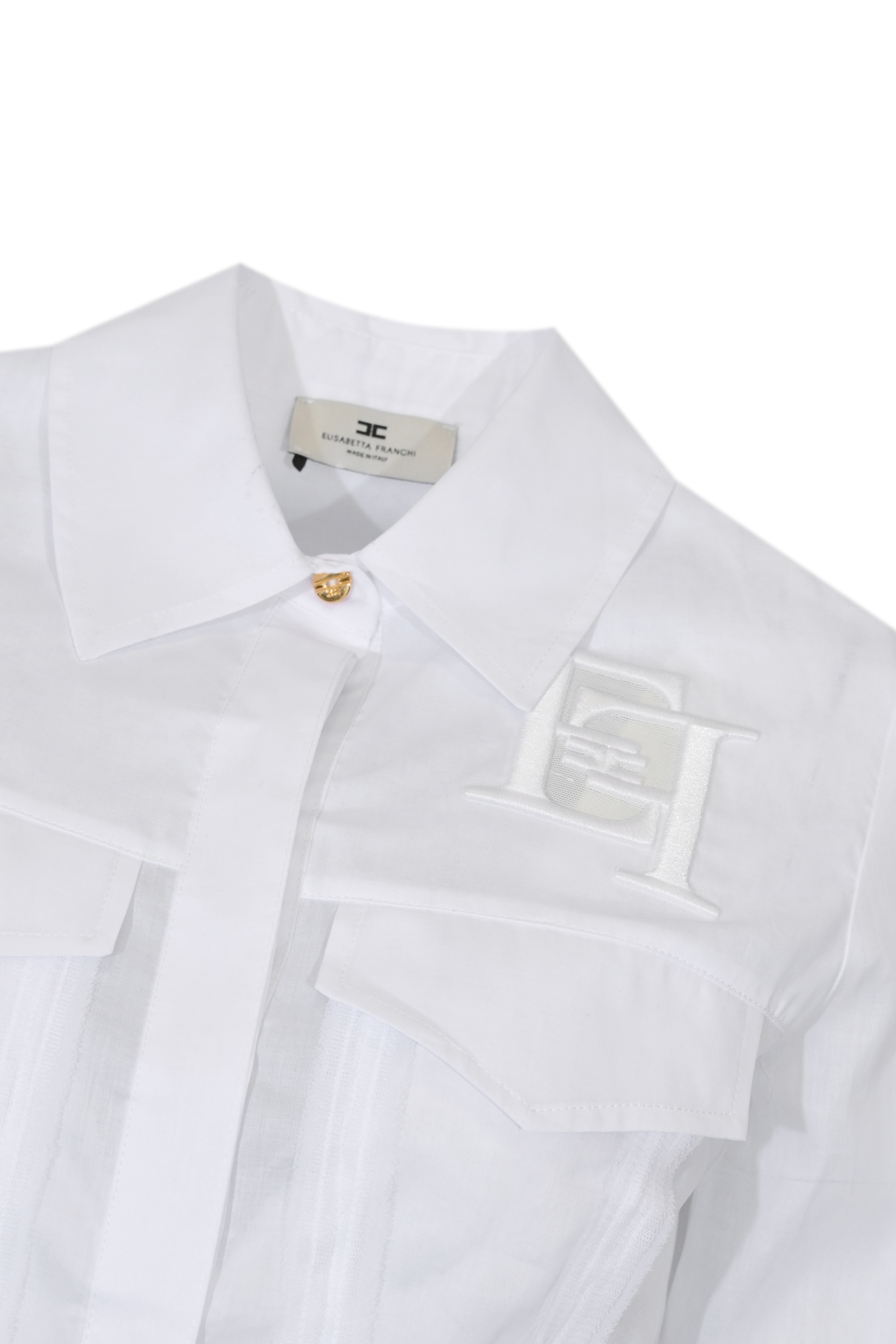 Camicia cropped da donna in cotone, Elisabetta Franchi, modello con patte e ricami