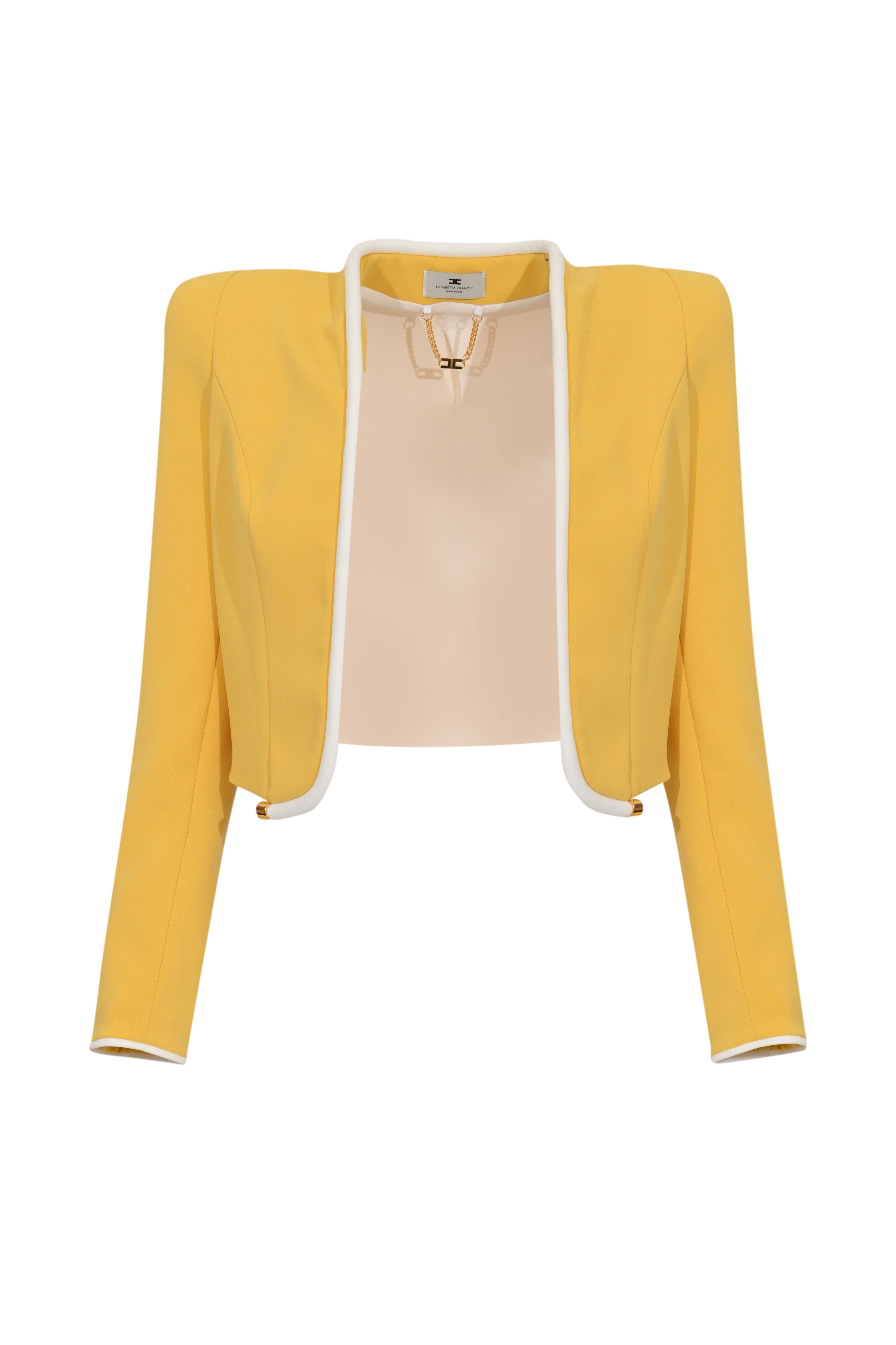 Giacca da donna in crêpe leggero, Elisabetta Franchi, modello cropped con piping 3D