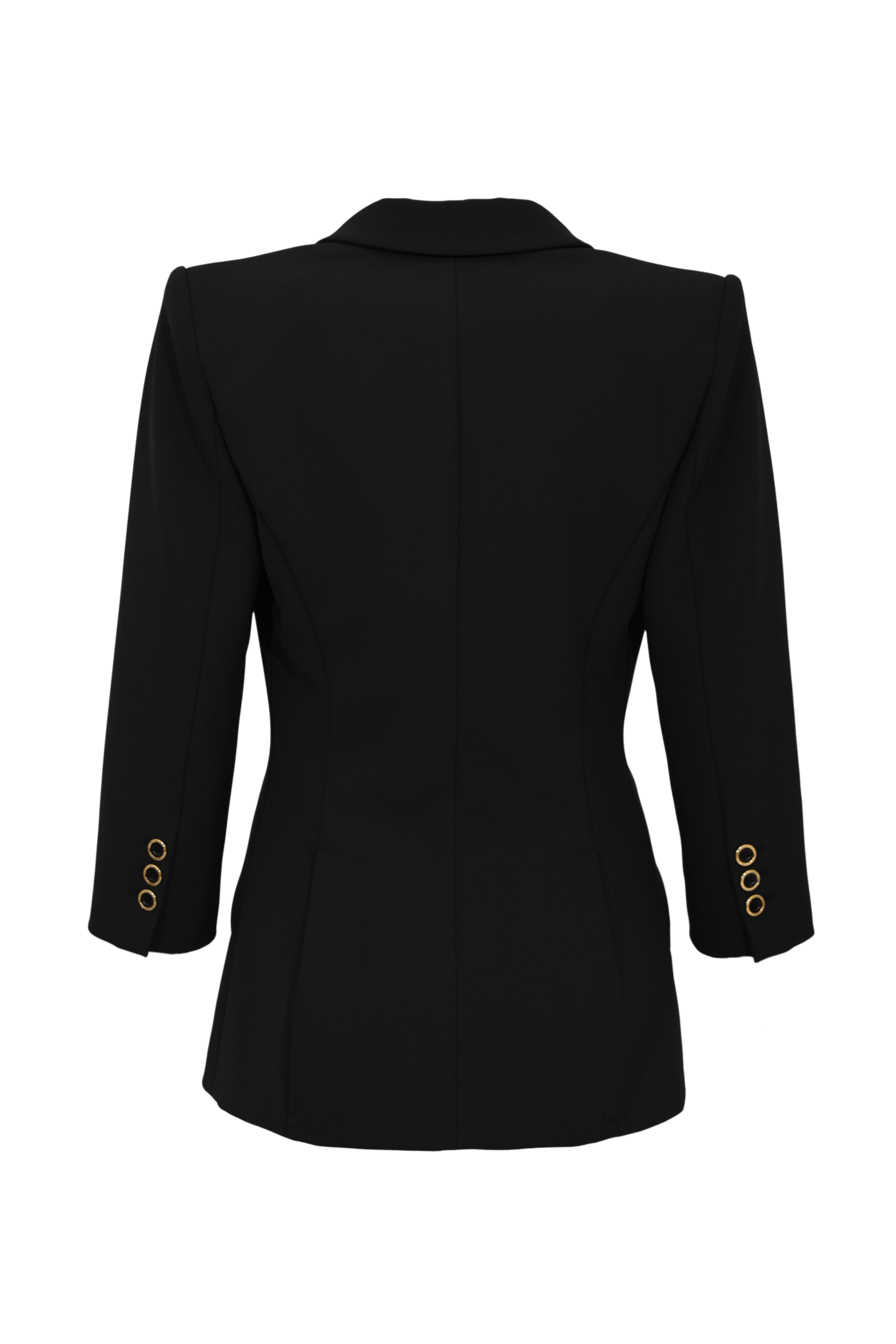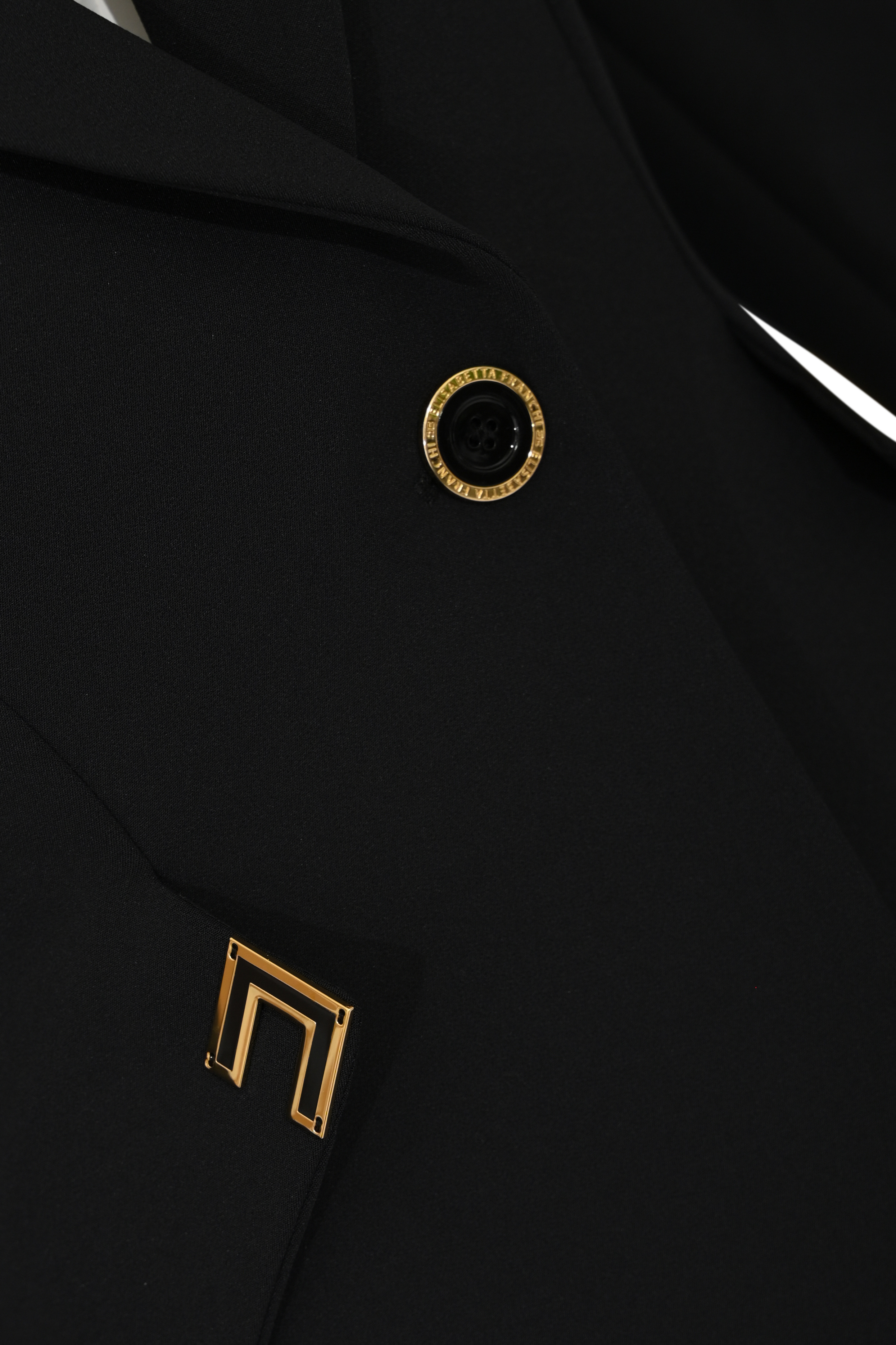 - Dettagli: profili sartoriali, applicazioni logo gioiello dorate, bottoni decorativi sui polsi