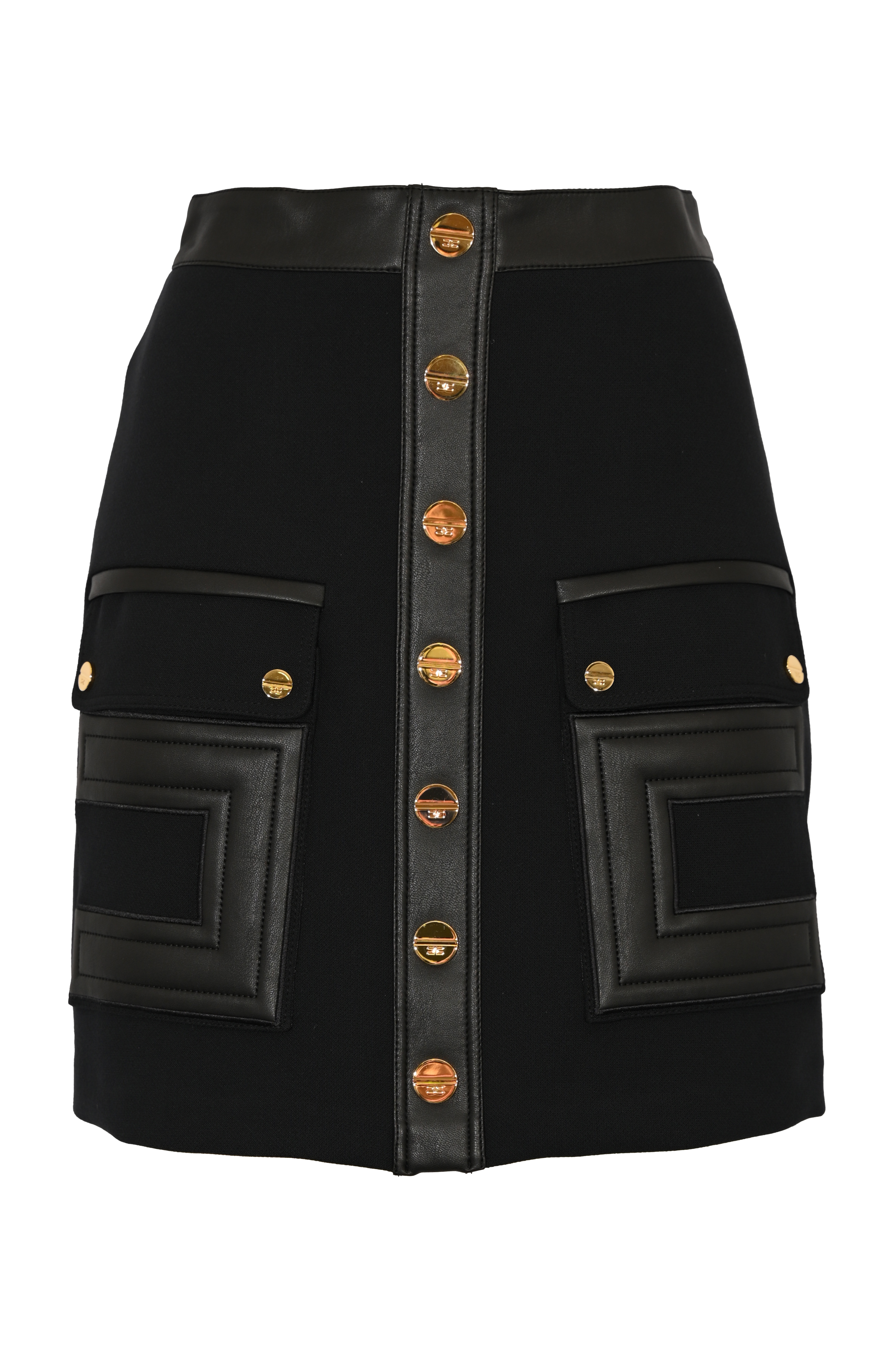 Mini gonna da donna in doppio crêpe Elisabetta Franchi, modello con dettagli logo