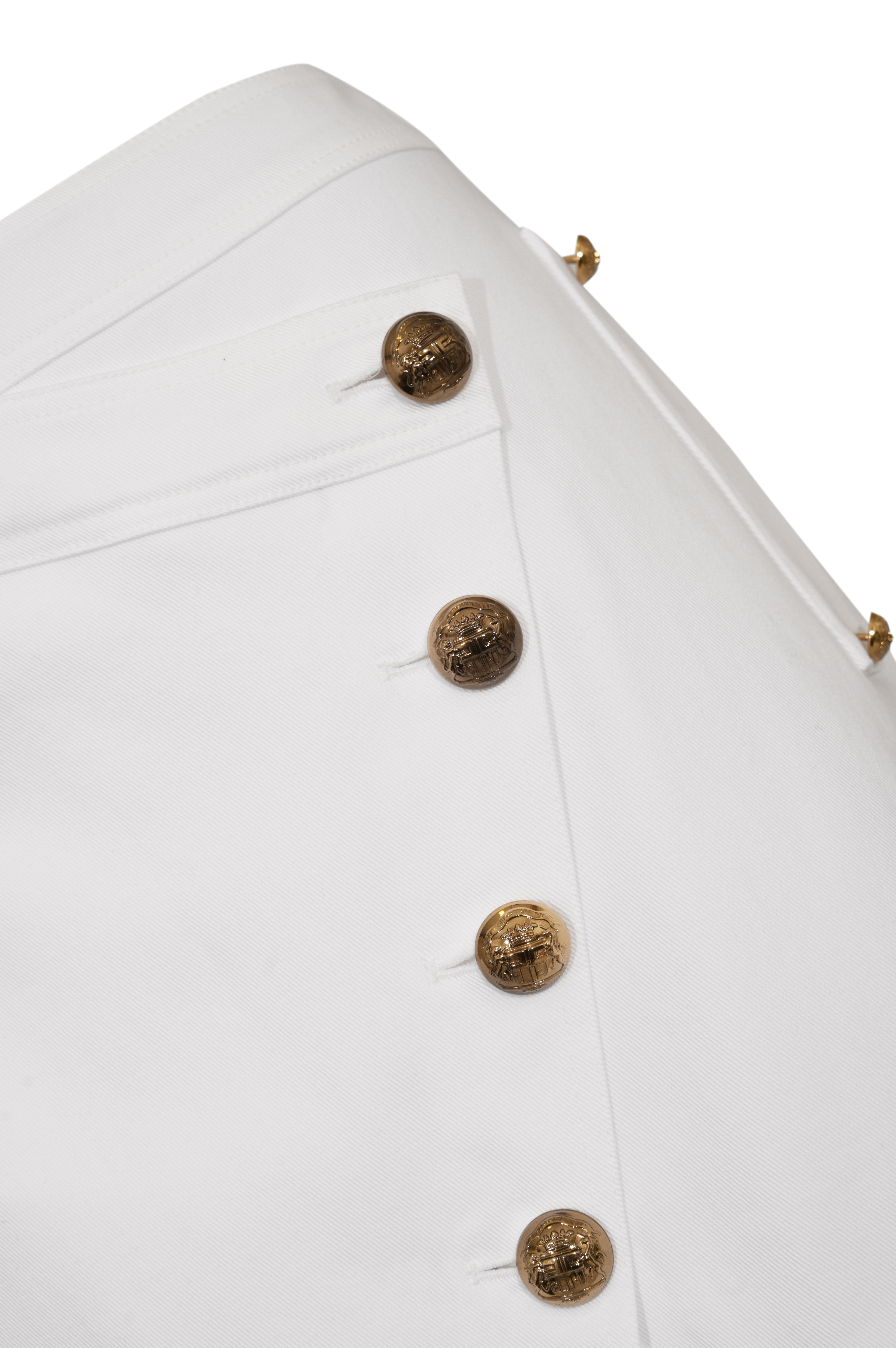Minigonna in gabardina di cotone con bottoni gioiello Avorio