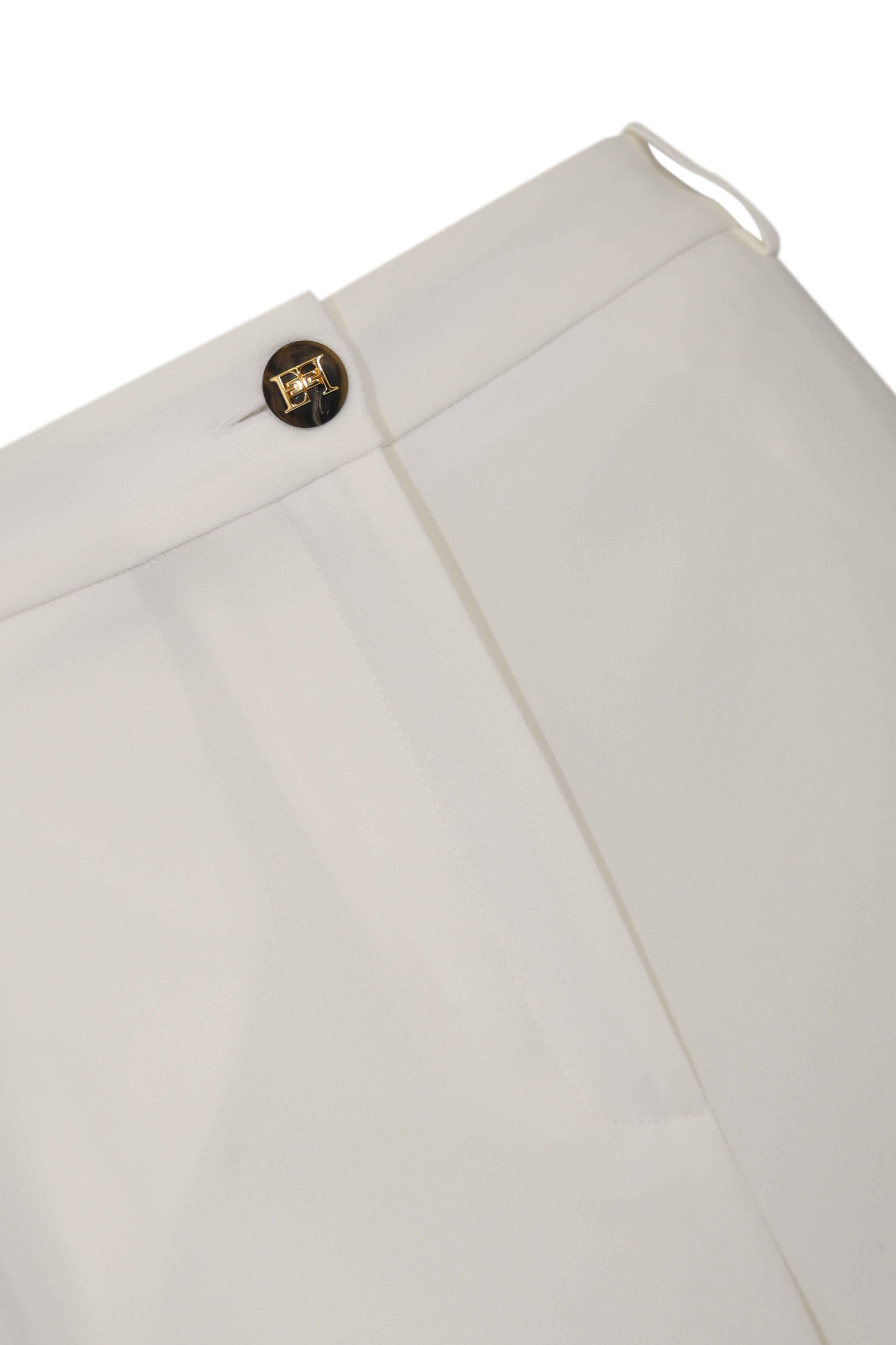 - Dettagli: piega frontale stirata e bottone gioiello con logo