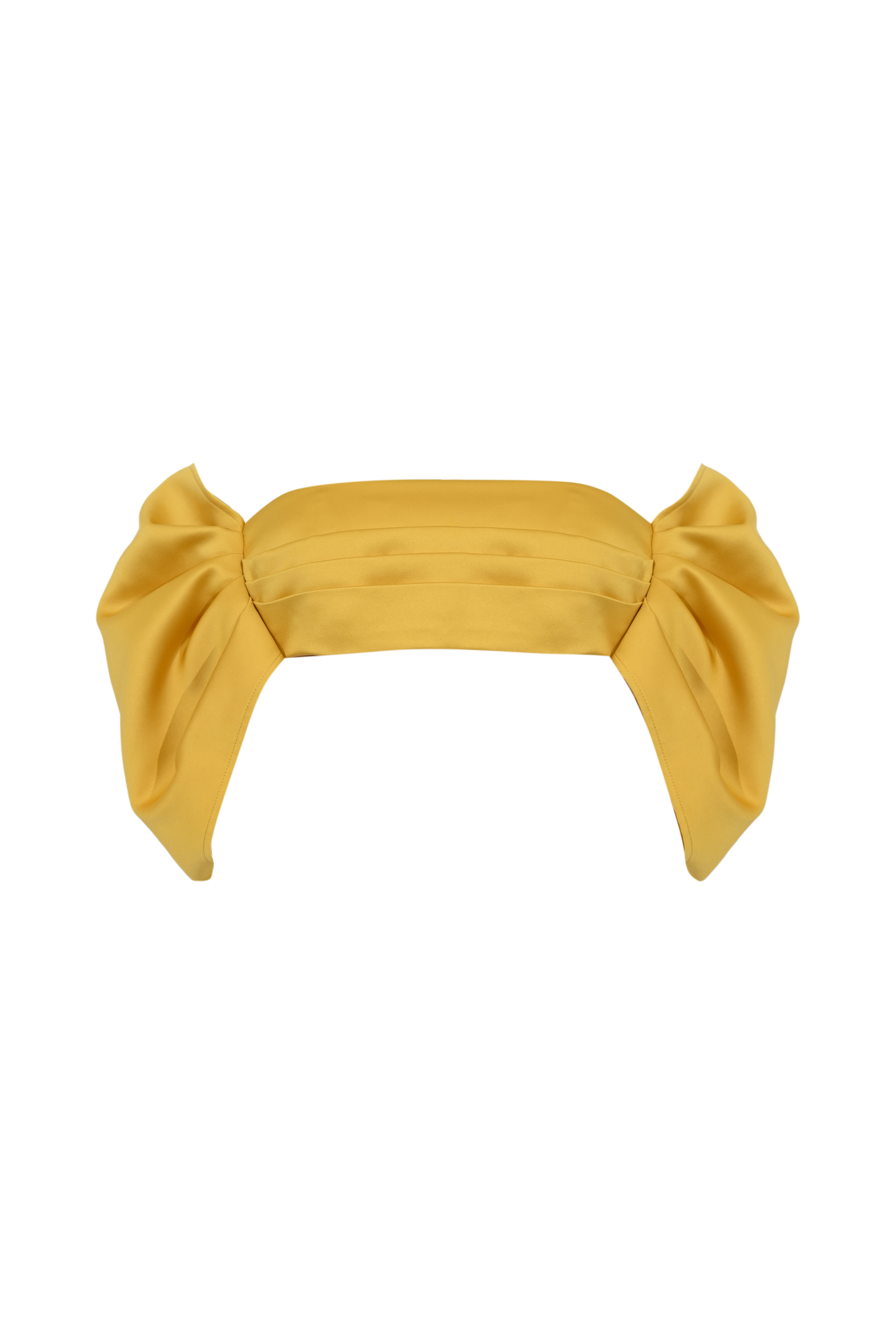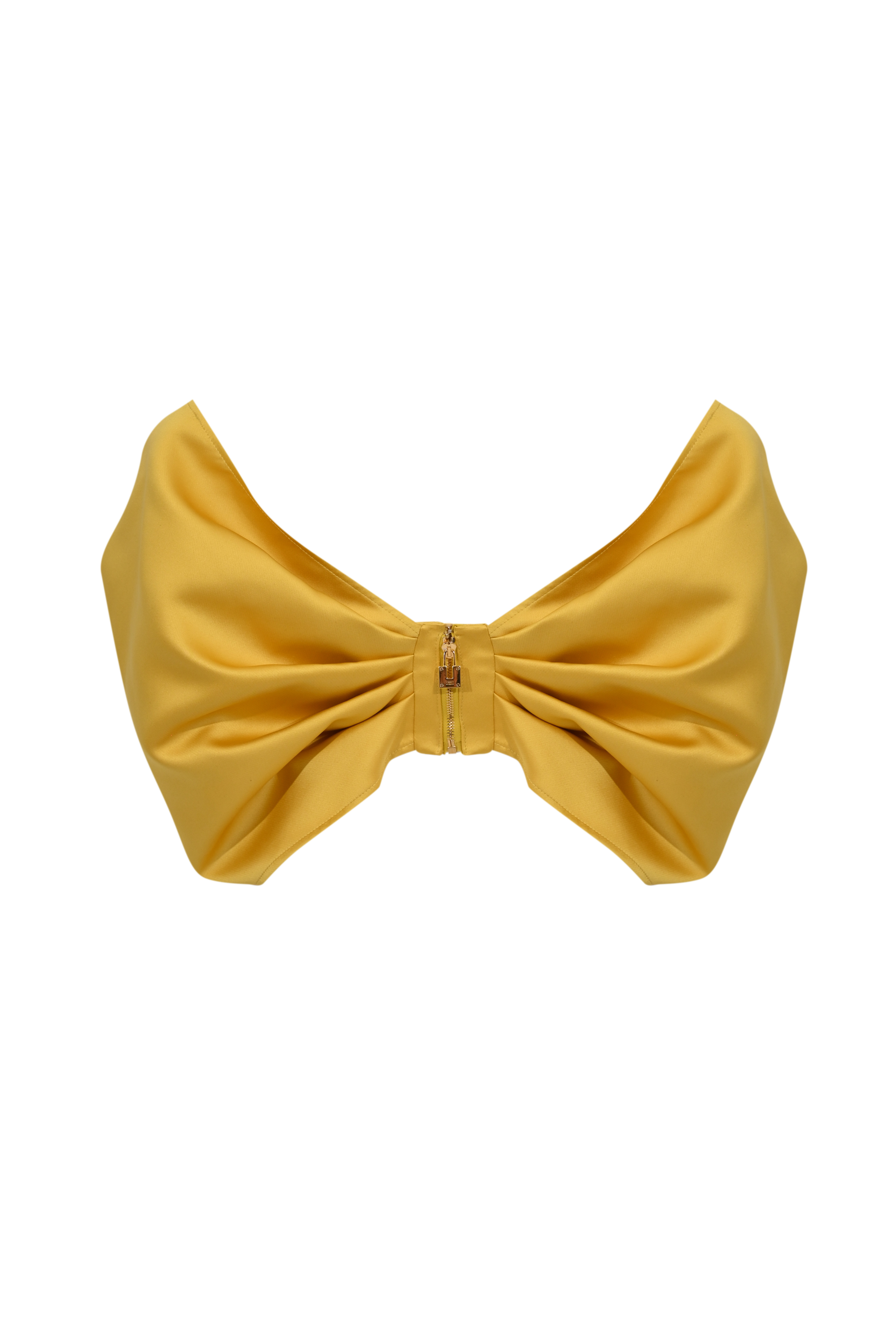- Dettagli: maxi fiocco frontale con drappeggi strutturati, pieghe cucite sul davanti, linea cropped