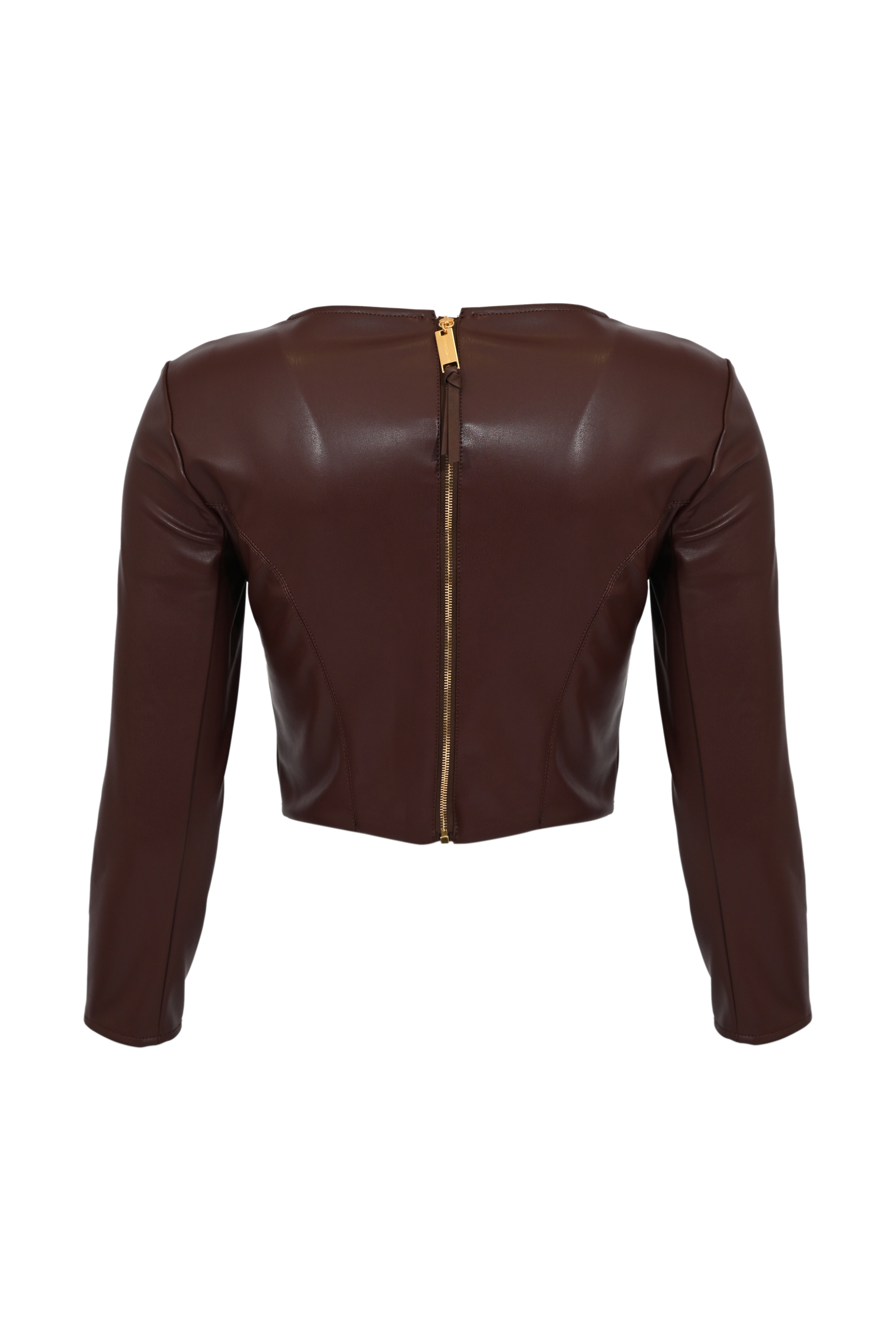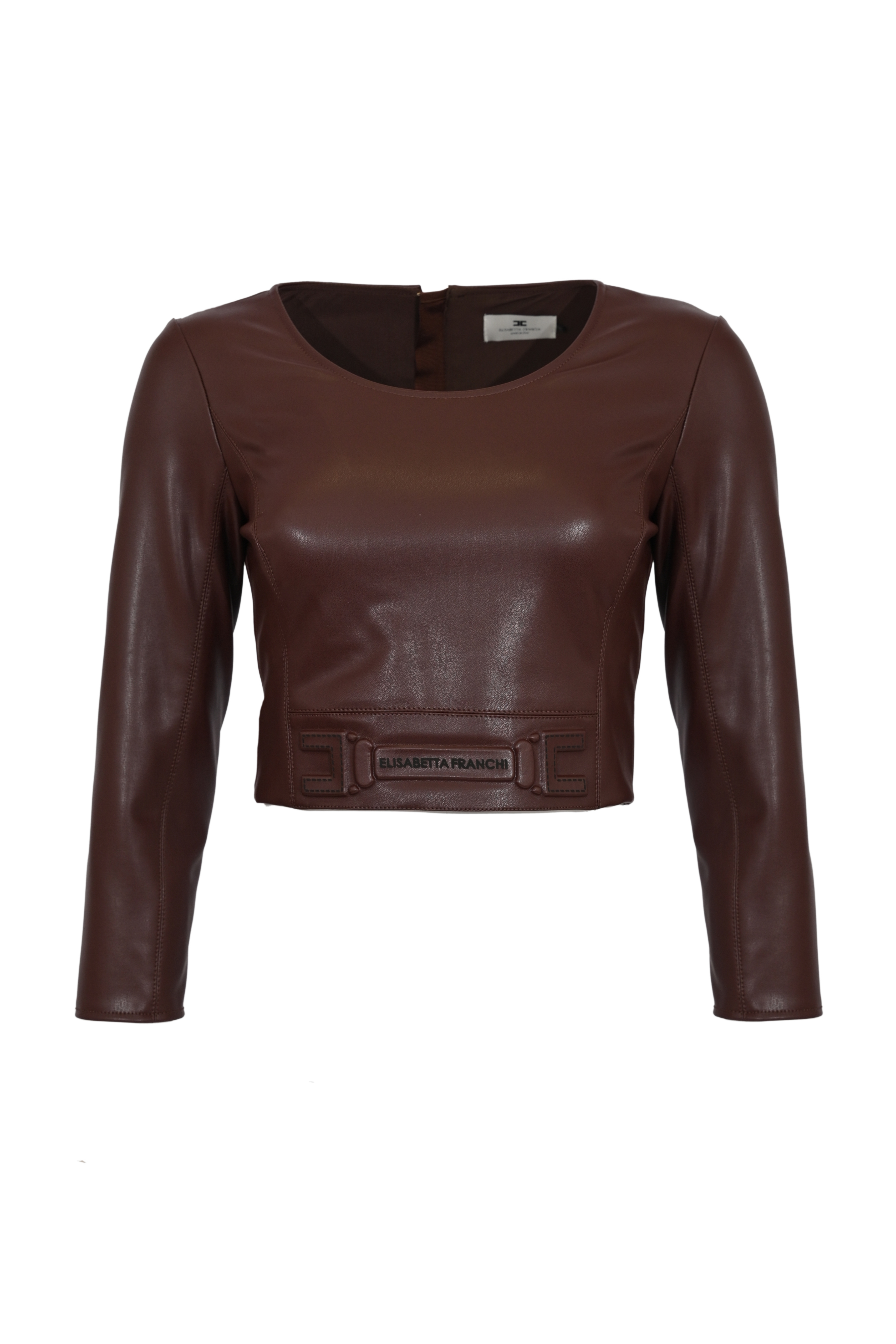 Top da donna in materiale effetto nappa, Elisabetta Franchi, modello crop con logo embossed