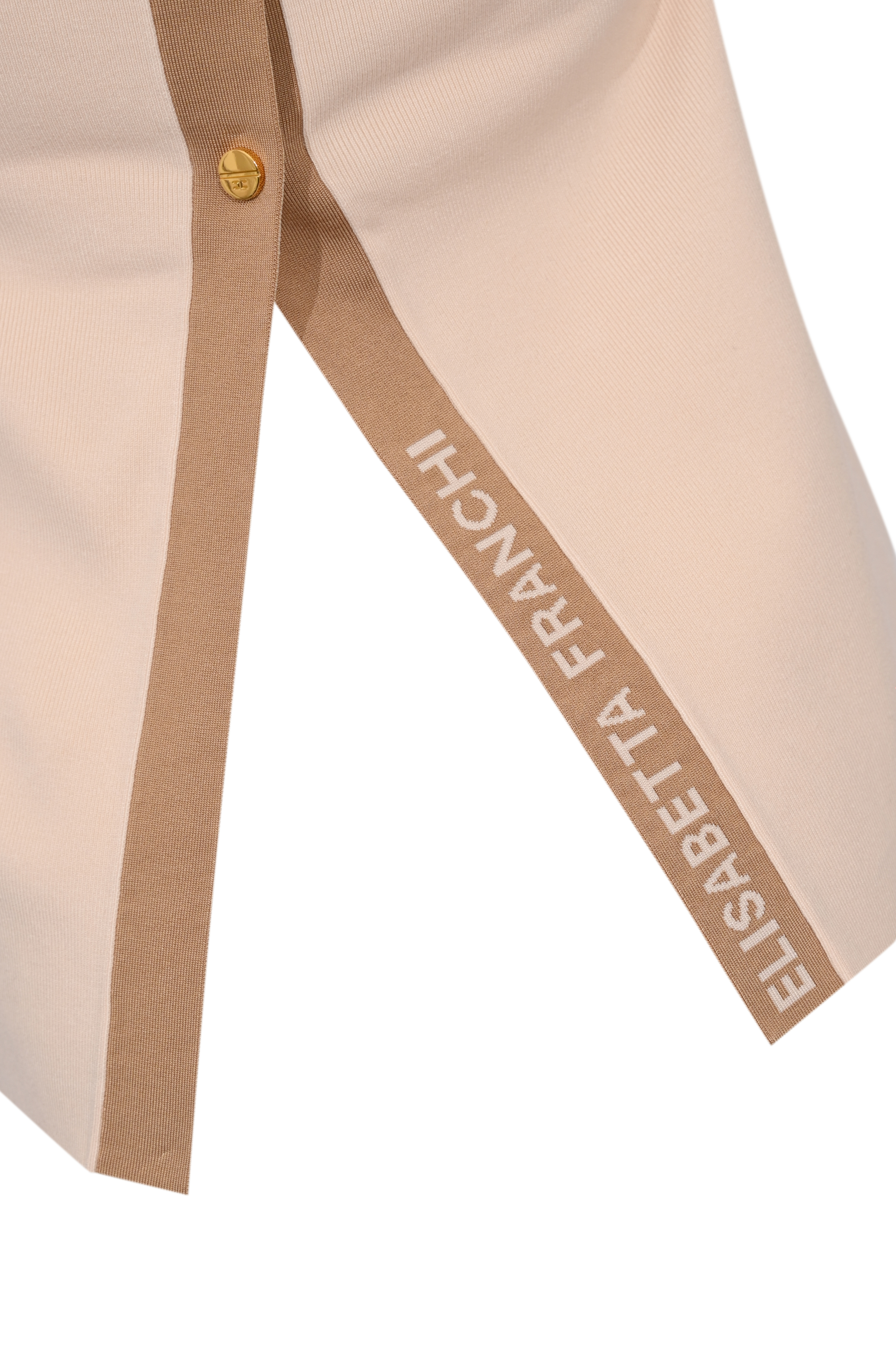 - Dettagli: bande a contrasto in viscosa lucida, bottoni gioiello, logo Elisabetta Franchi sul retro