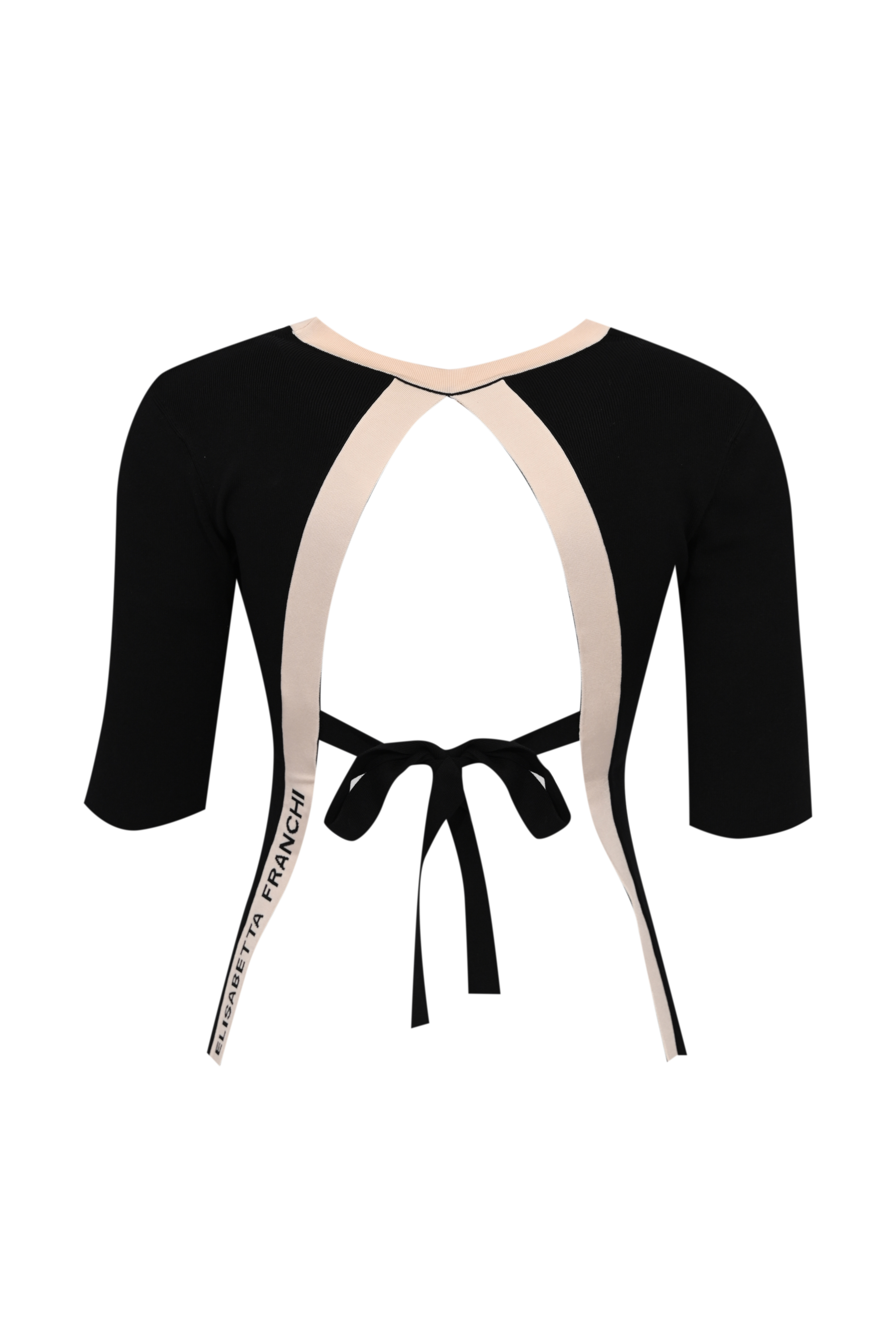 - Dettagli: bande in viscosa lucida a contrasto, scollo sul retro, logo Elisabetta Franchi