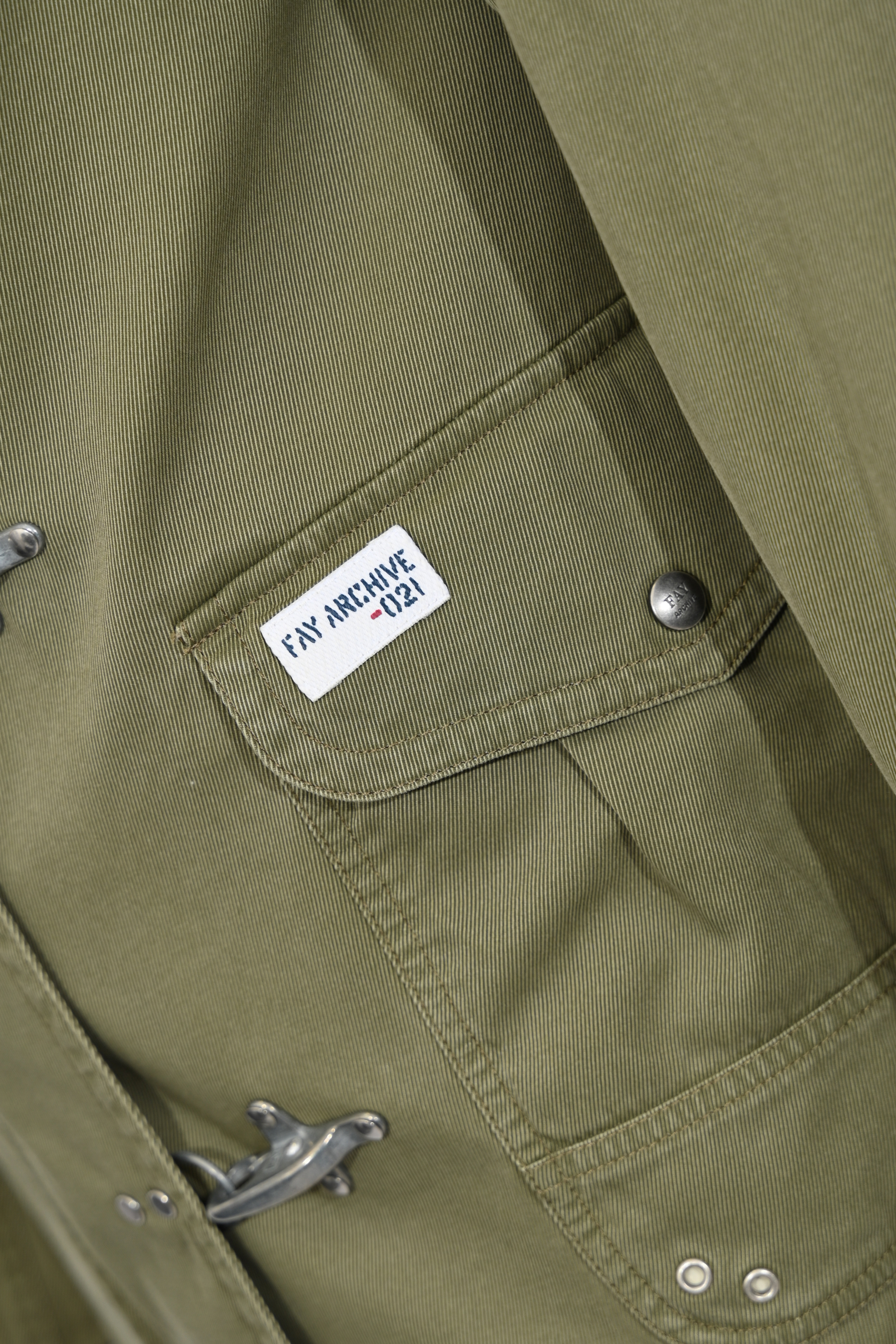 - Dettagli: patch logo Fay Archive applicata, rivetti metallici, impunture a vista