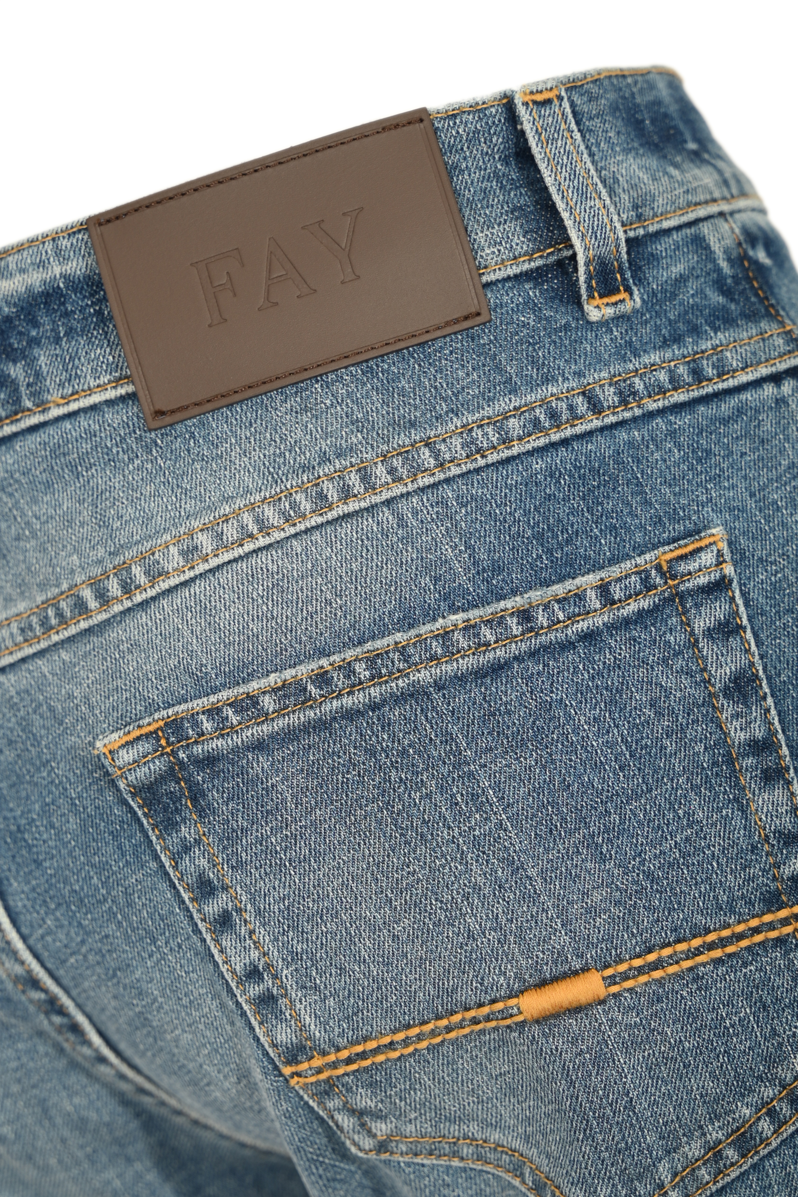 - Dettagli: Patch logo Fay in pelle sul retro, impunture a contrasto, effetto leggermente vissuto sulle gambe, cuciture tono su tono