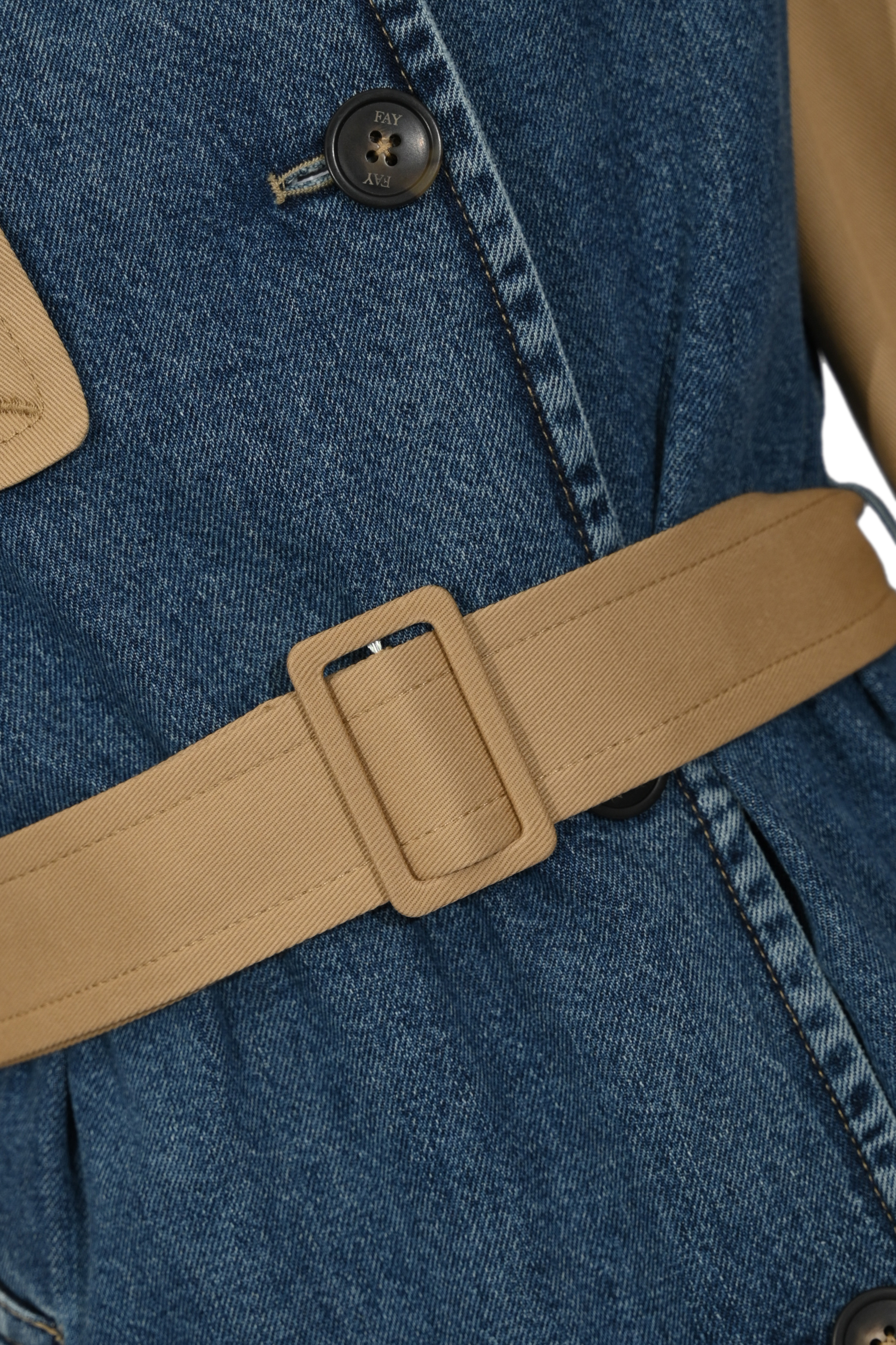 - Dettagli: cintura abbinata in vita con fibbia, spalline con bottone, mantellina posteriore, impunture a vista